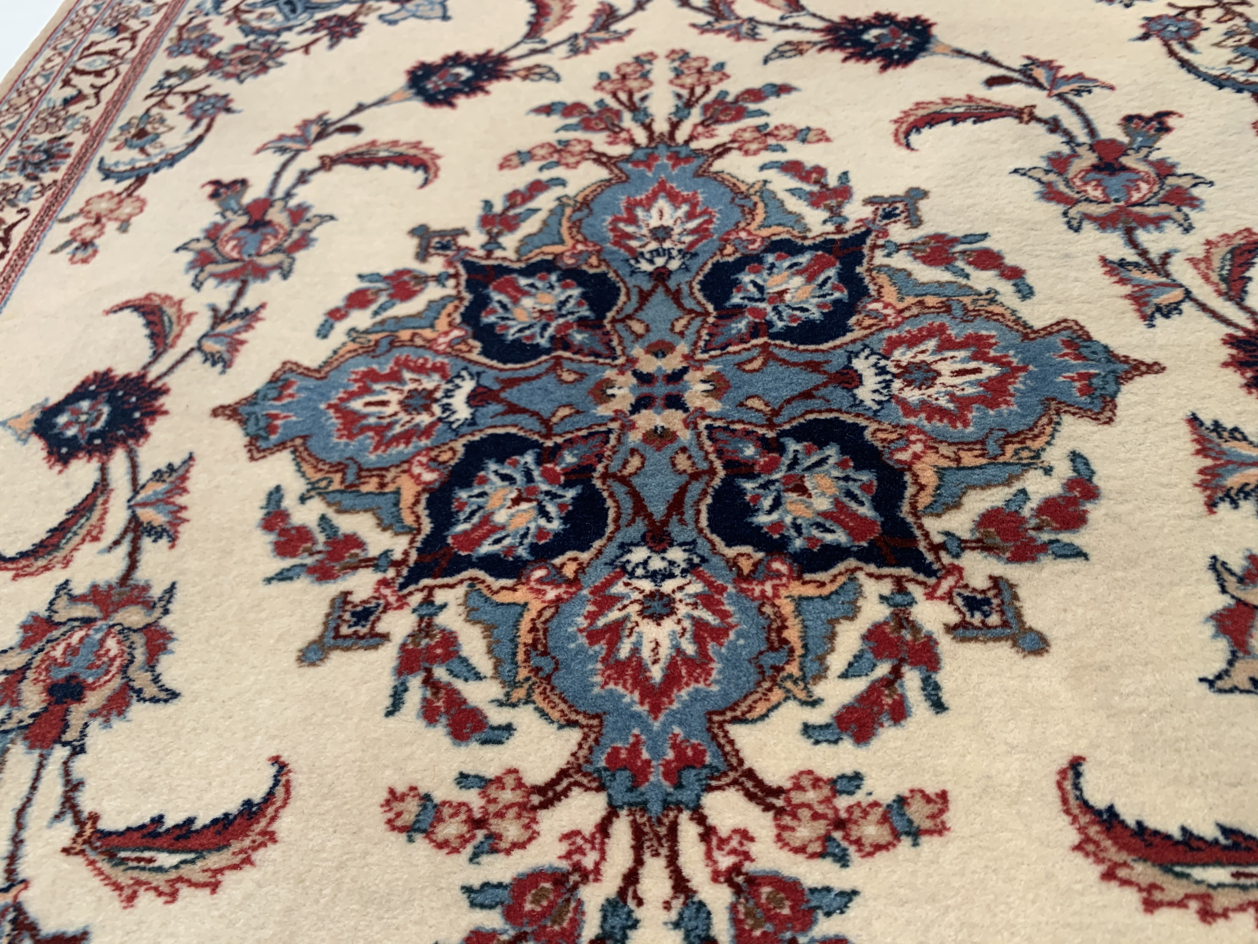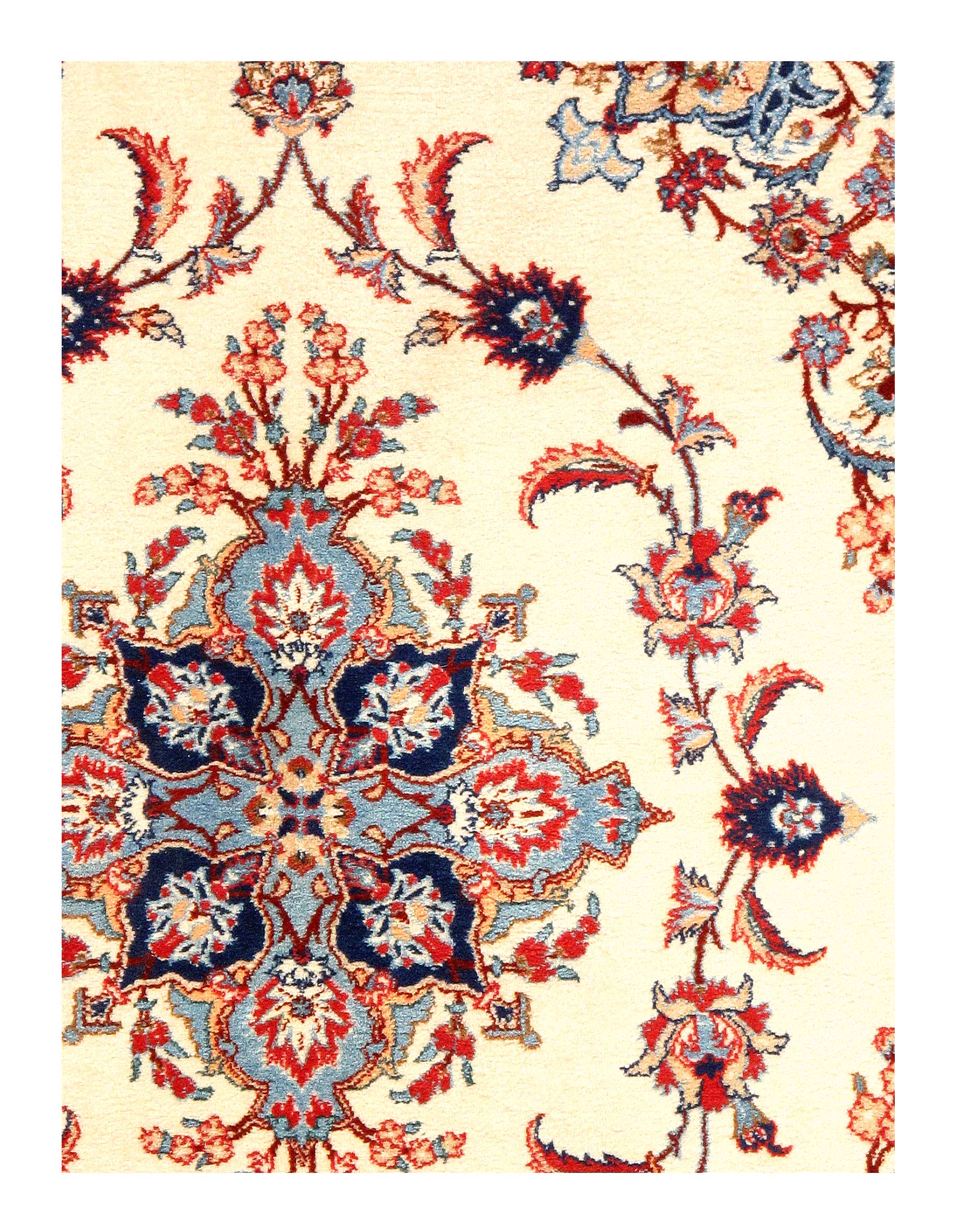 The Isfahan rugs are made with exceptionally good quality of wool & silk. They use traditional motifs inspired by architectural tiles that once decorated the historical buildings from which these rugs originated in. When it comes to high class designs the composition, patterns, and materials of Isfahan meets those expectations. The motifs usually consist of medallions with palmetts and also figural motifs. Isfahan rugs have an extremely high knot density and are woven with silk and golden threads, which give them their luxurious look.signed By serafian