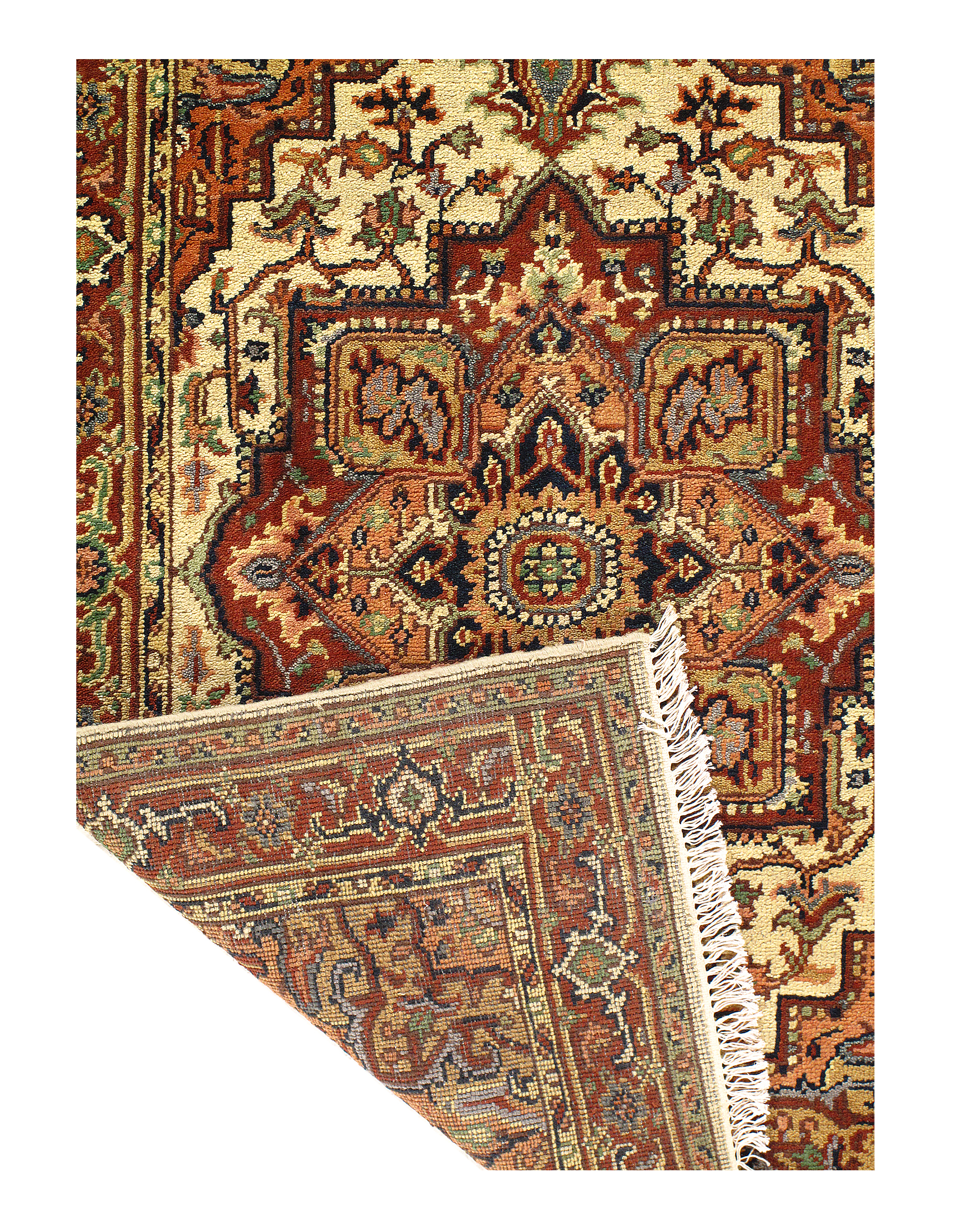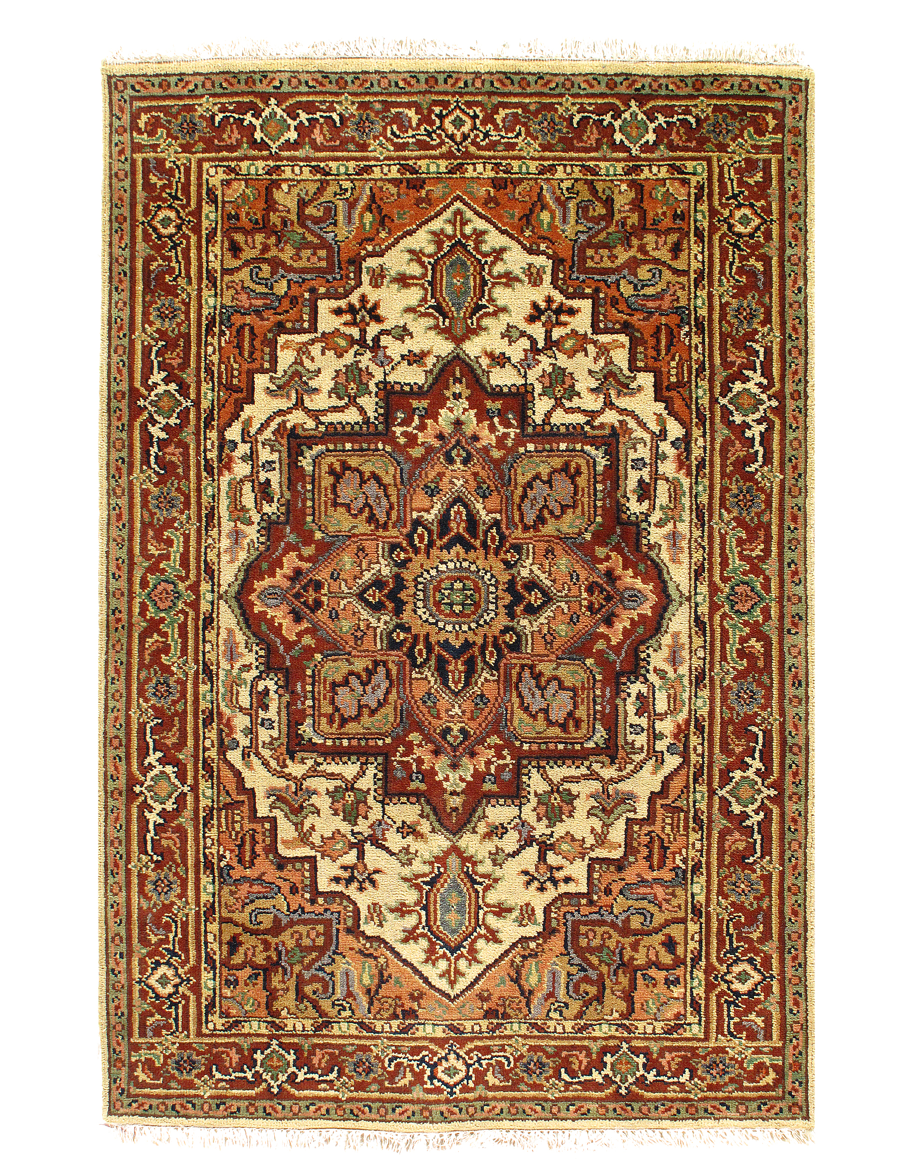 Serapi design rug. Handmade and hand-knotted in fine lambswool on a cotton foundation. Vegetable dyed hand-spun wool rug.