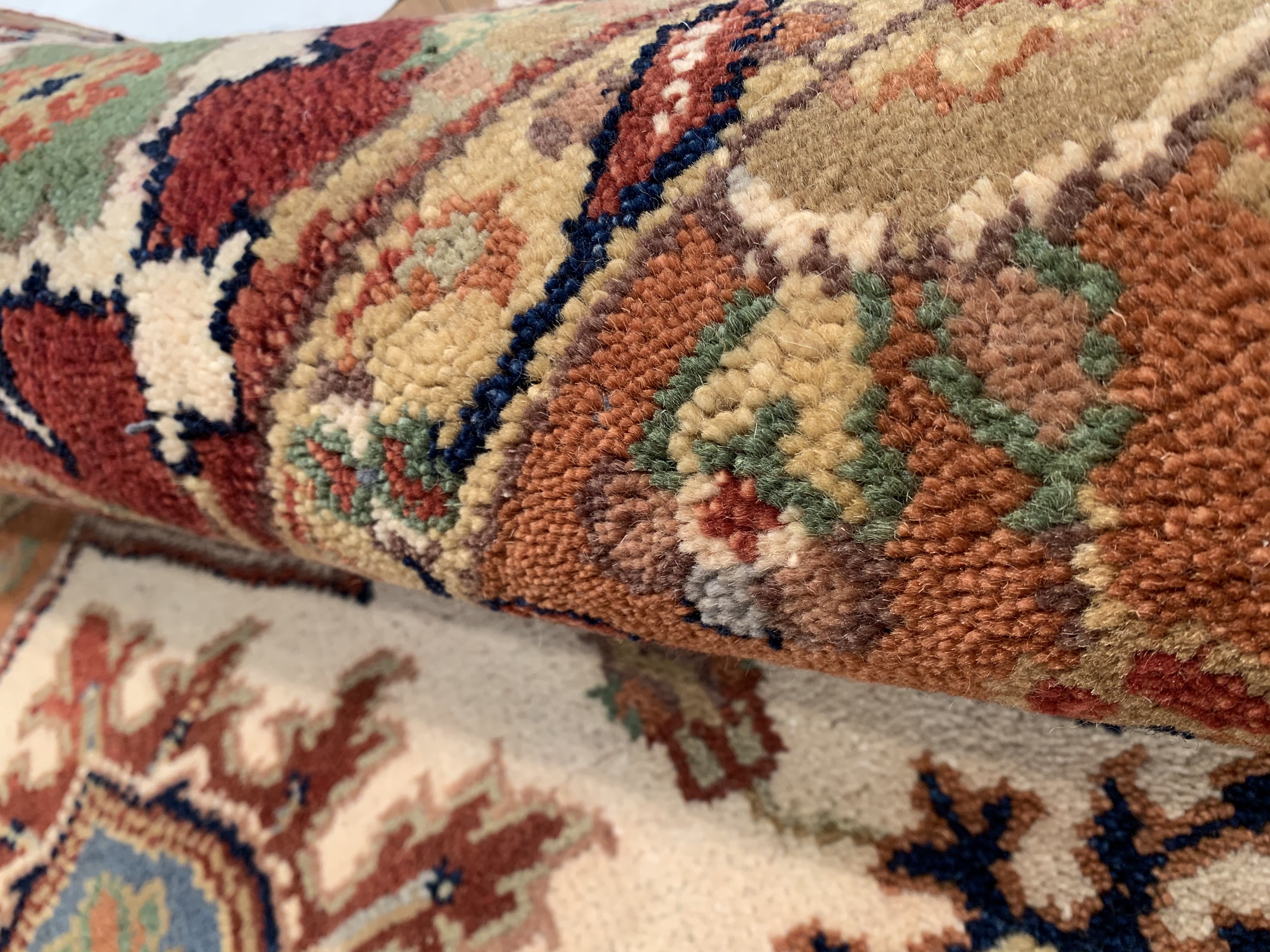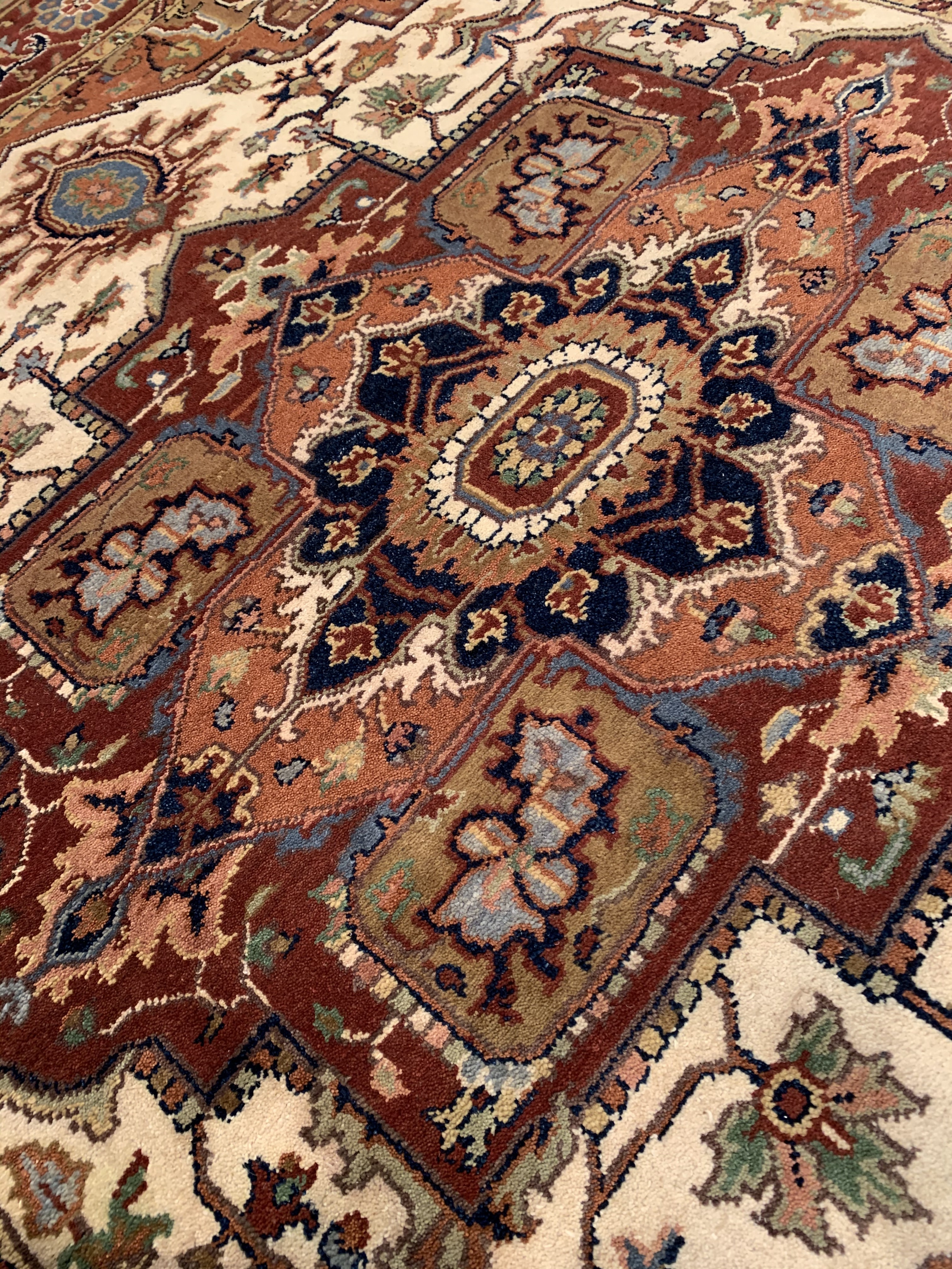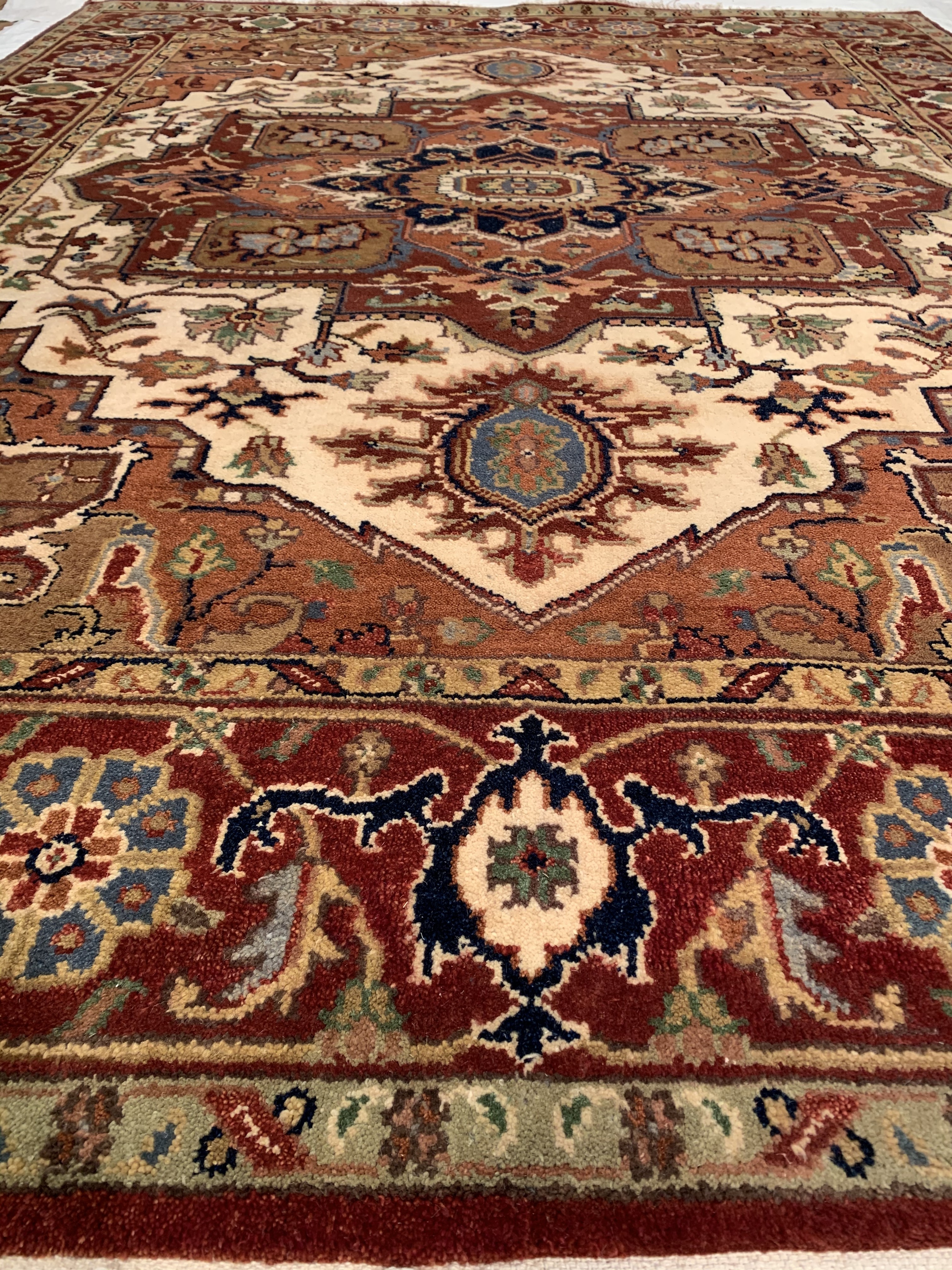 Serapi design rug. Handmade and hand-knotted in fine lambswool on a cotton foundation. Vegetable dyed hand-spun wool rug.