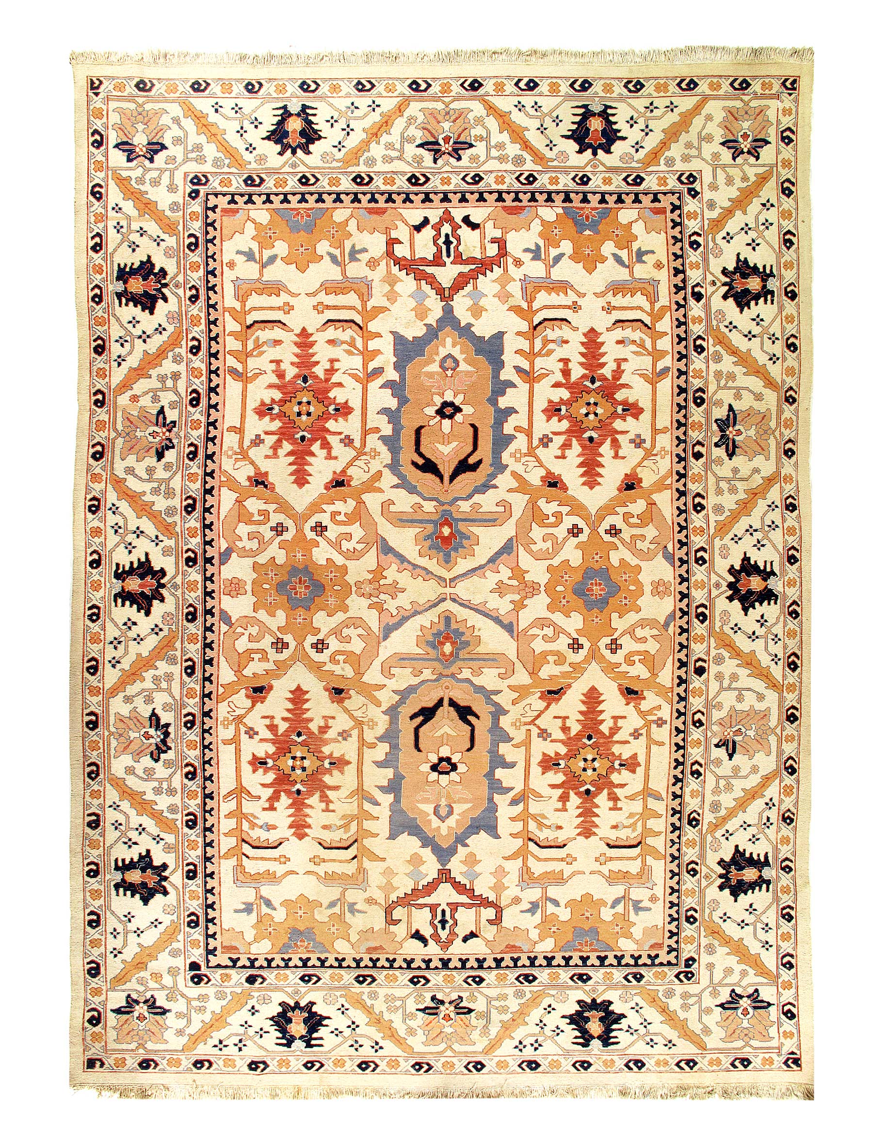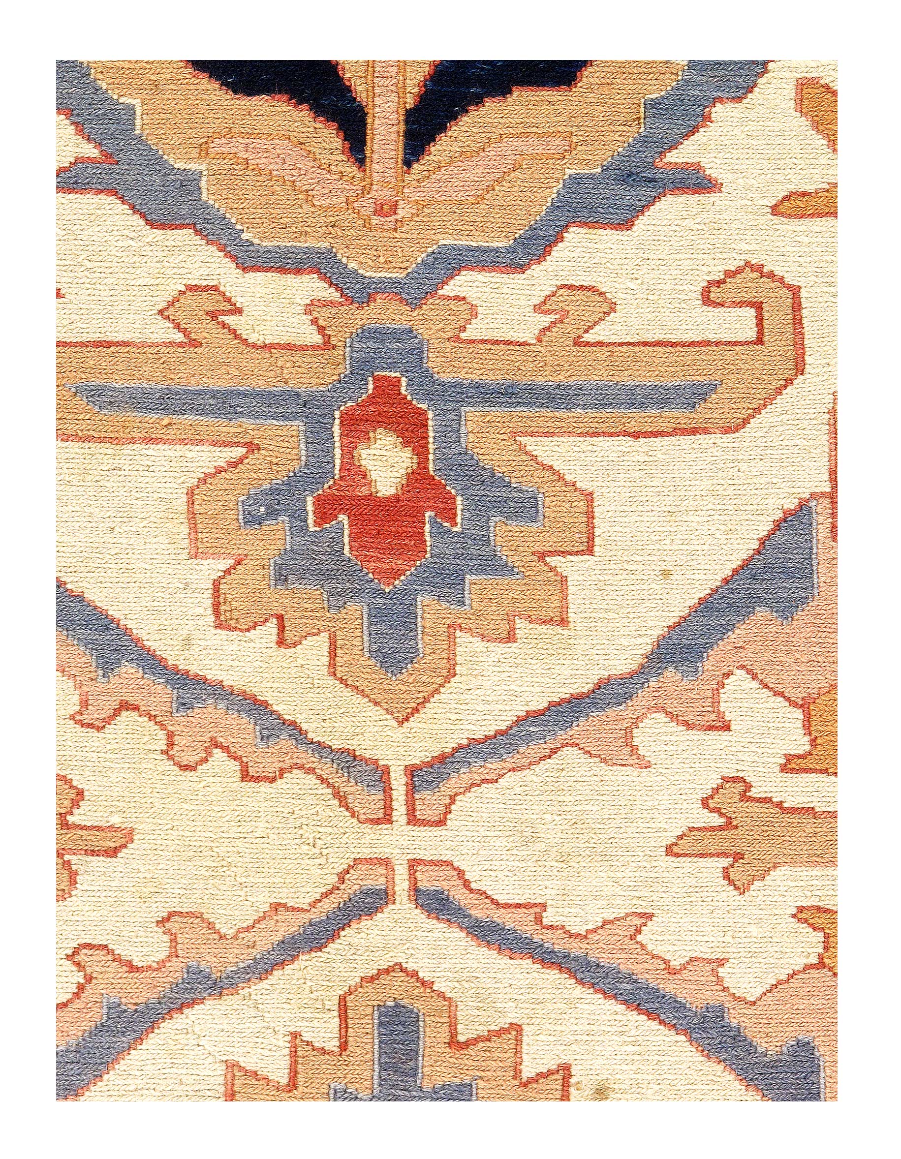 In response to the enthusiastic reception given these rugs, we present four wonderful new designs and colorways. These soumak-weave Suzanis (are woven in India using New Zealand wool. Soumaks are a type of flat weave that is study and quite thick, but less expensive than the handknotted rugs. These rugs have a nice variation in the colors that adds character and dimensionality.