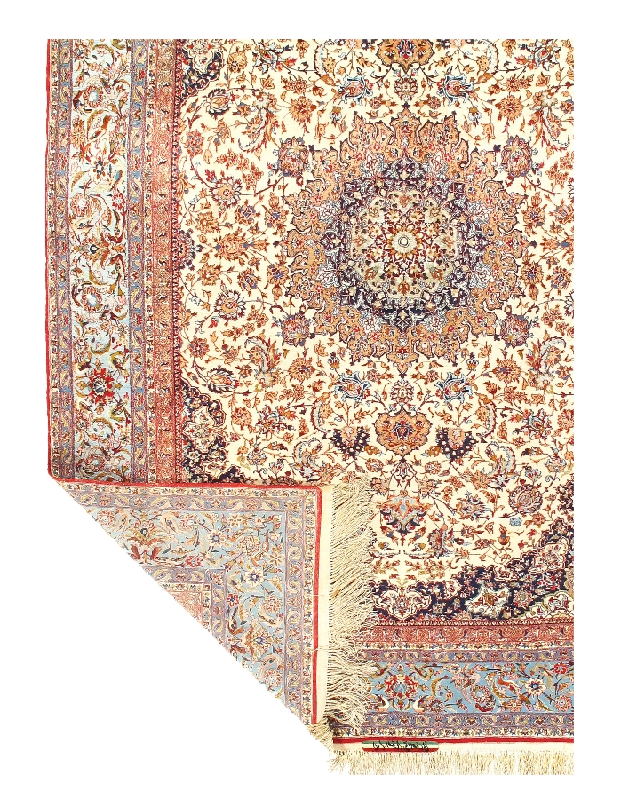 The Isfahan rugs are made with exceptionally good quality of wool & silk. They use traditional motifs inspired by architectural tiles that once decorated the historical buildings from which these rugs originated in. When it comes to high class designs the composition, patterns, and materials of Isfahan meets those expectations. The motifs usually consist of medallions with palmetts and also figural motifs. Isfahan rugs have an extremely high knot density and are woven with silk and golden threads, which give them their luxurious look