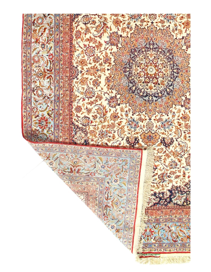 The Isfahan rugs are made with exceptionally good quality of wool & silk. They use traditional motifs inspired by architectural tiles that once decorated the historical buildings from which these rugs originated in. When it comes to high class designs the composition, patterns, and materials of Isfahan meets those expectations. The motifs usually consist of medallions with palmetts and also figural motifs. Isfahan rugs have an extremely high knot density and are woven with silk and golden threads, which give them their luxurious look