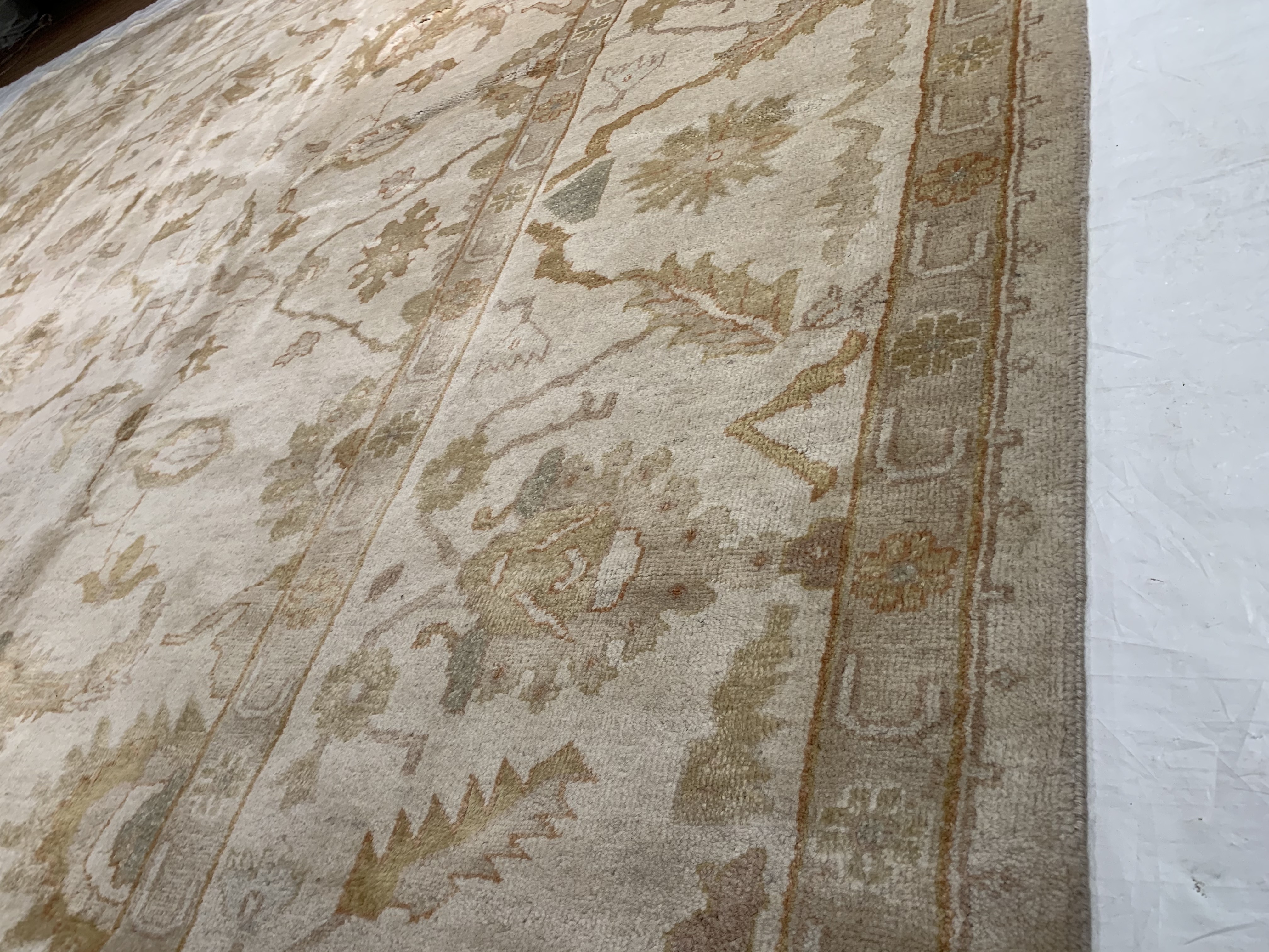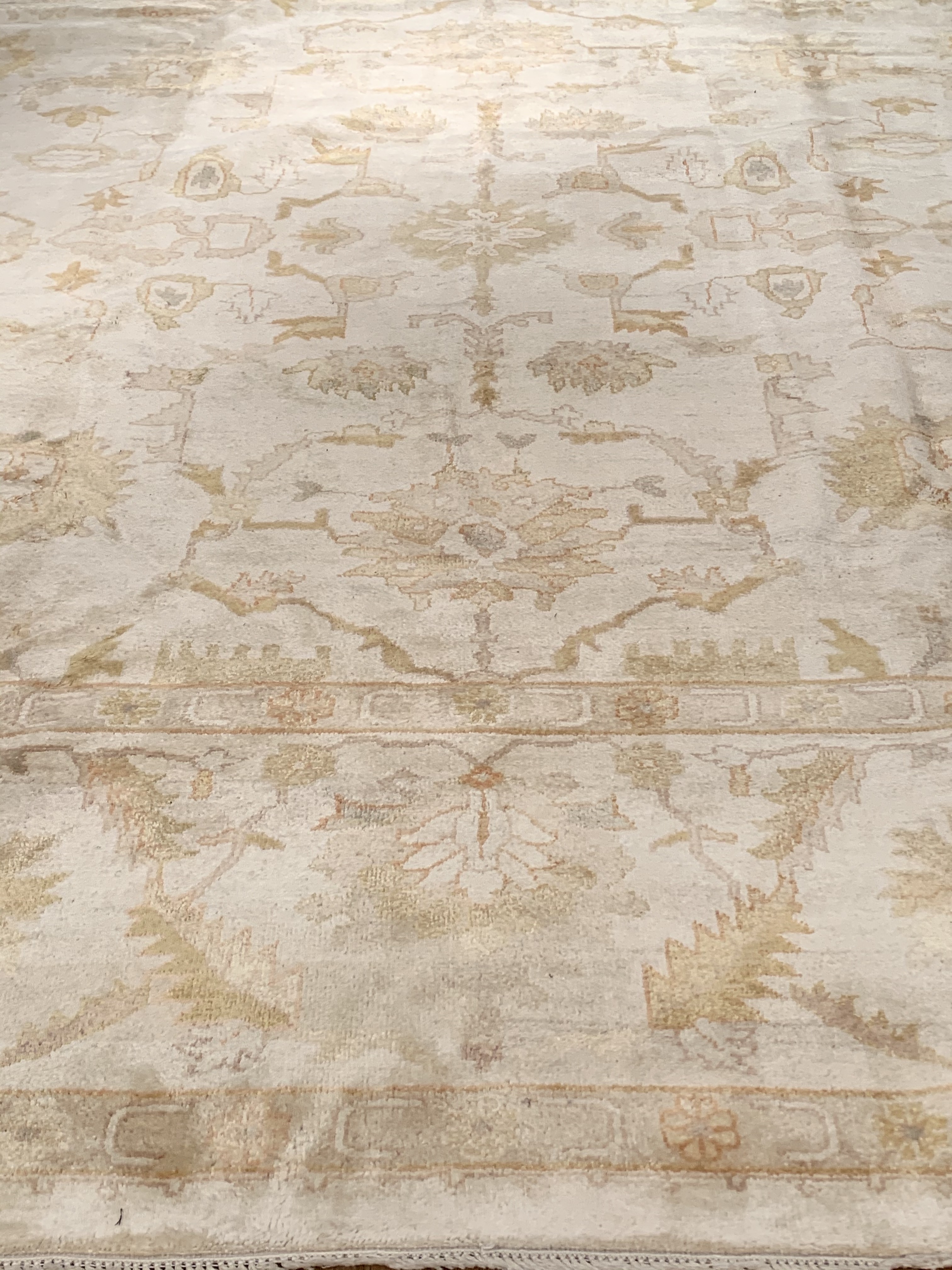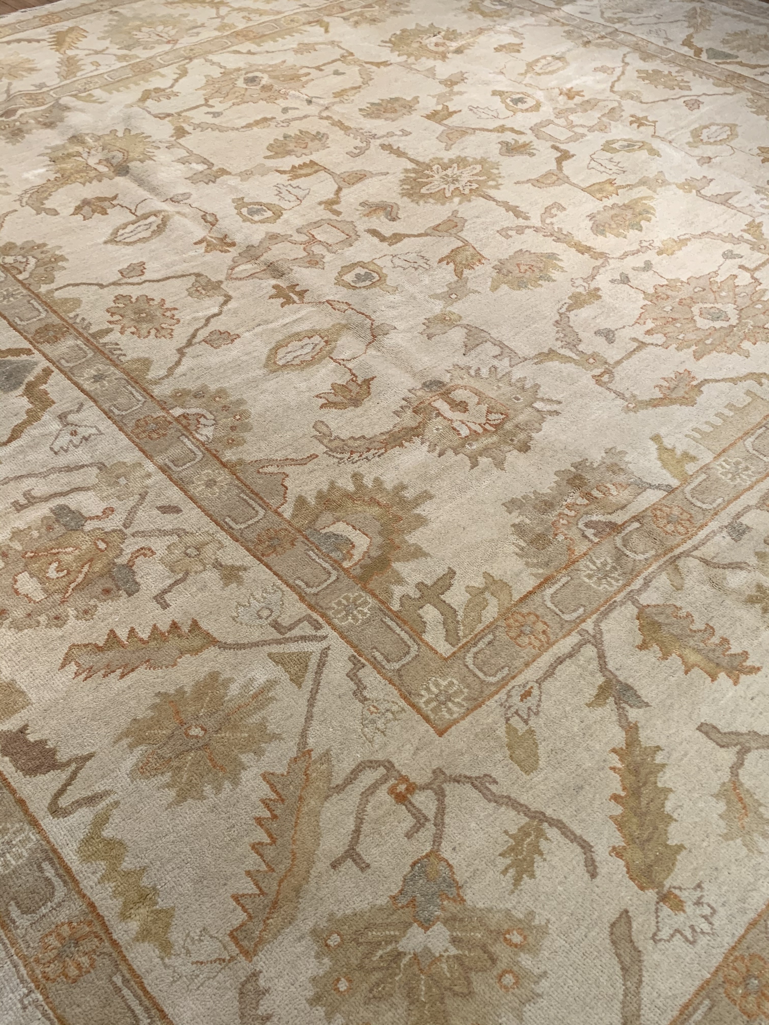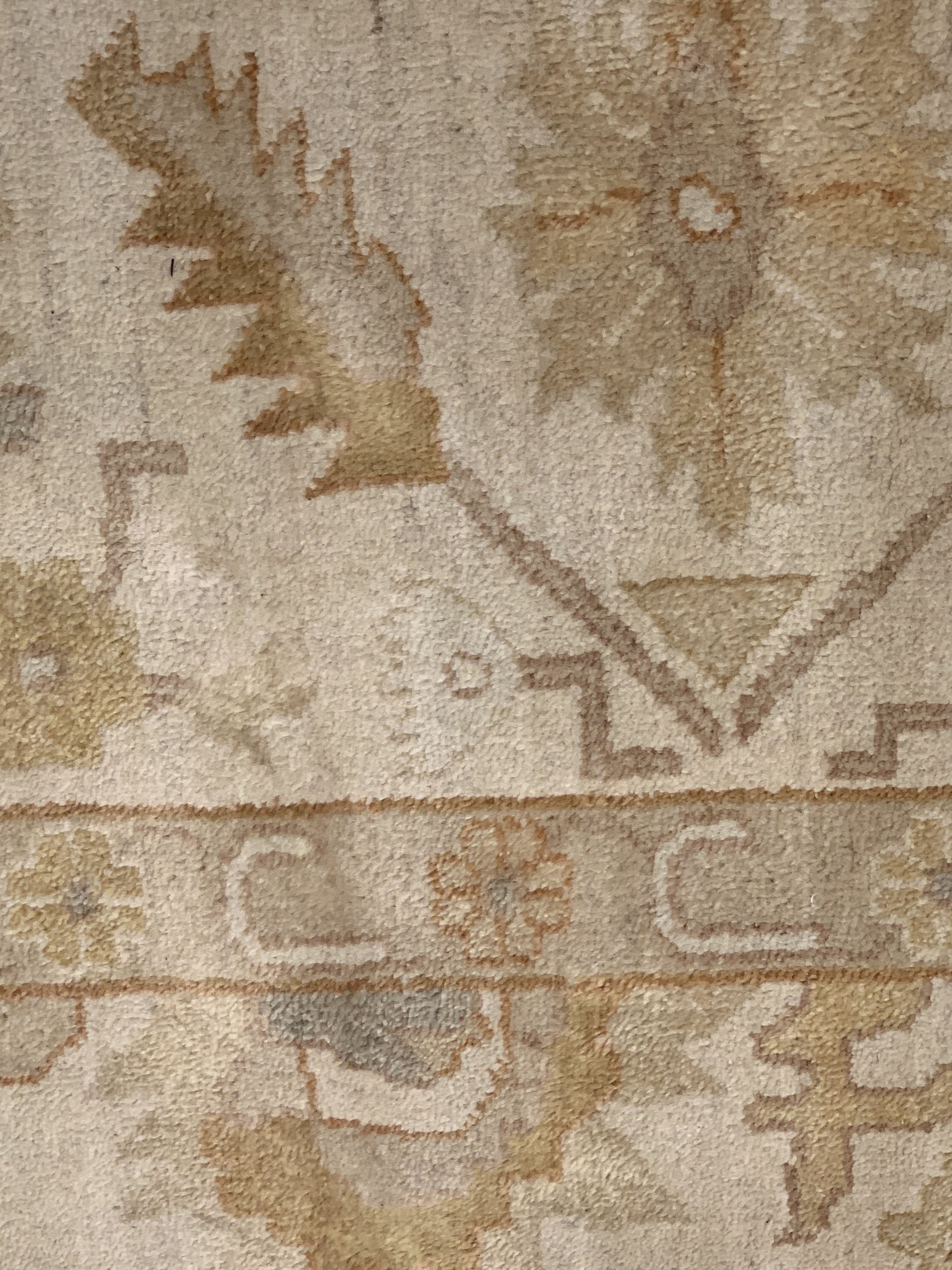 These Fine Indian Oushak carpets are extremely desirable because of their colors – which are usually much lighter and “happier” in feel than rugs from other regions. So if you are looking for an antique or vintage rug with a soft colors, theses should top your list. Fine Indian Oushak Carpets reflects the values of the time period in which they were woven. The weaving techniques, dyes used, and patterns incorporated all have their own time stamp attributed to them. These lighter colors will bring vibrancy and life to your home.