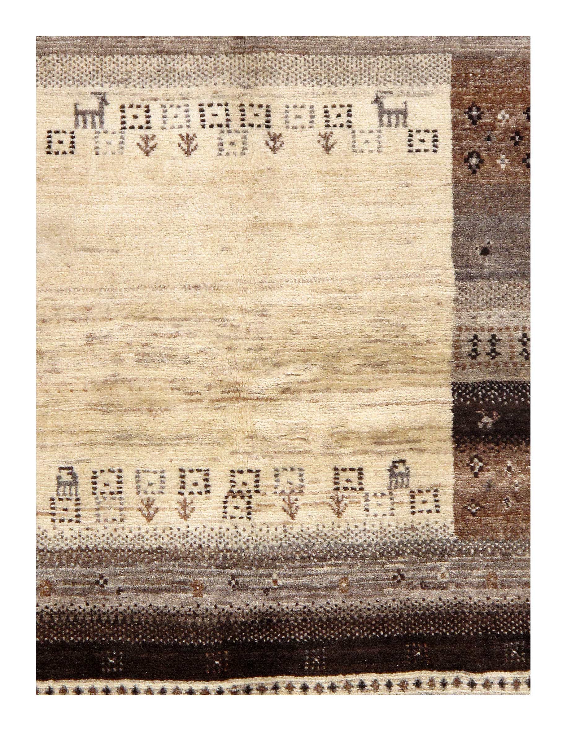 Gabbeh rugs are made by the nomadic Qashqai tribes of southern Iran. They are rough cut and long piled rugs of rich color and best quality wool. They are sometimes referred to by the heritage of the specific tribe by which they are woven, such as “a Lori rug,” or by the name of the city in which they are most often traded, such as “a Shiraz rug” or “a Shiraz Gabbeh.”