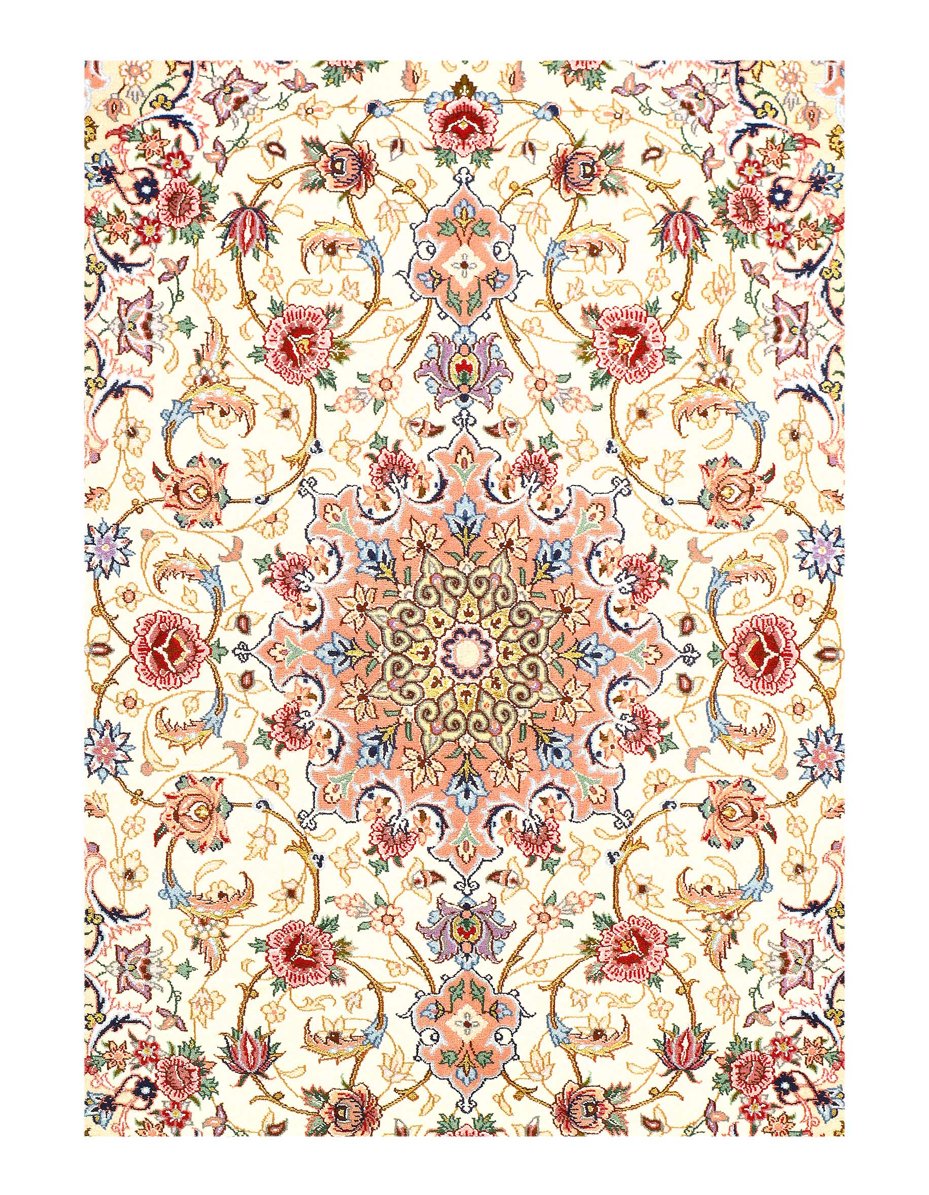 The Isfahan rugs are made with exceptionally good quality of wool & silk. They use traditional motifs inspired by architectural tiles that once decorated the historical buildings from which these rugs originated in. When it comes to high class designs the composition, patterns, and materials of Isfahan meets those expectations. The motifs usually consist of medallions with palmetts and also figural motifs. Isfahan rugs have an extremely high knot density and are woven with silk and golden threads, which give them their luxurious look.