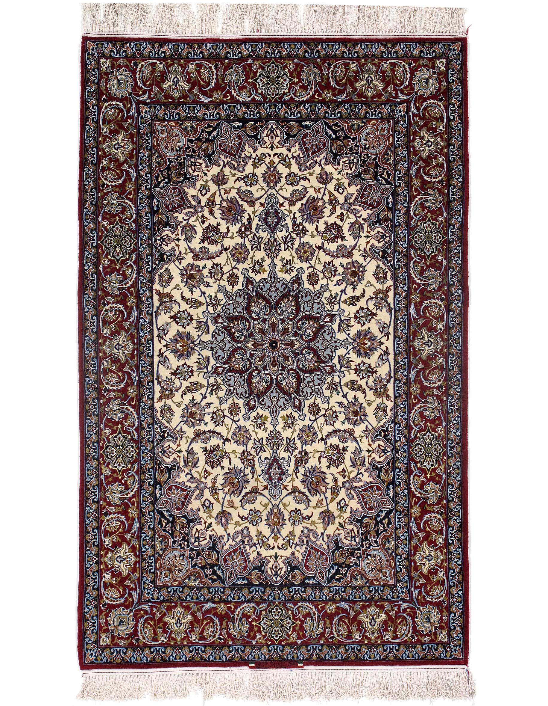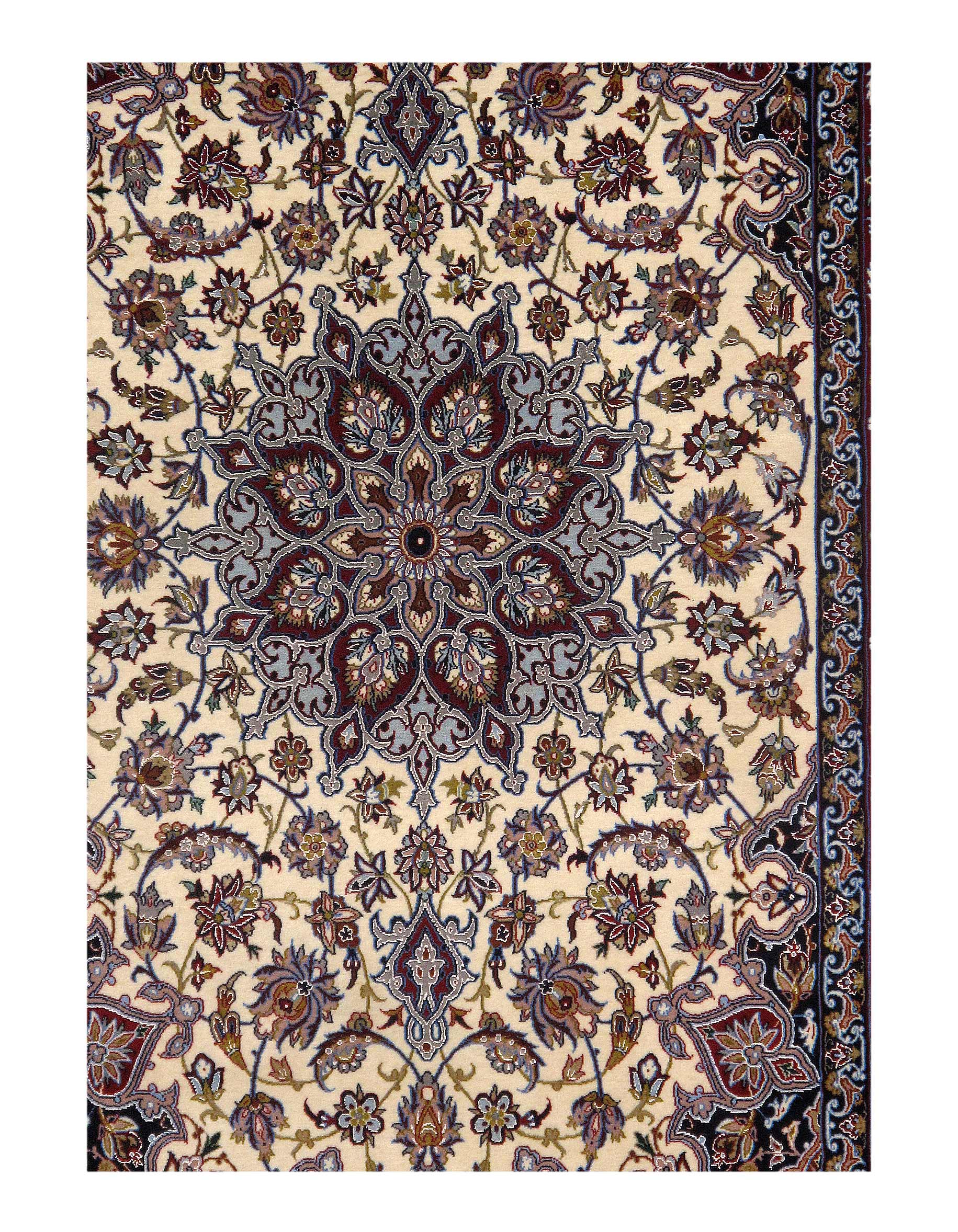 The Isfahan rugs are made with exceptionally good quality of wool & silk. They use traditional motifs inspired by architectural tiles that once decorated the historical buildings from which these rugs originated in. When it comes to high class designs the composition, patterns, and materials of Isfahan meets those expectations. The motifs usually consist of medallions with palmetts and also figural motifs. Isfahan rugs have an extremely high knot density and are woven with silk and golden threads, which give them their luxurious look.