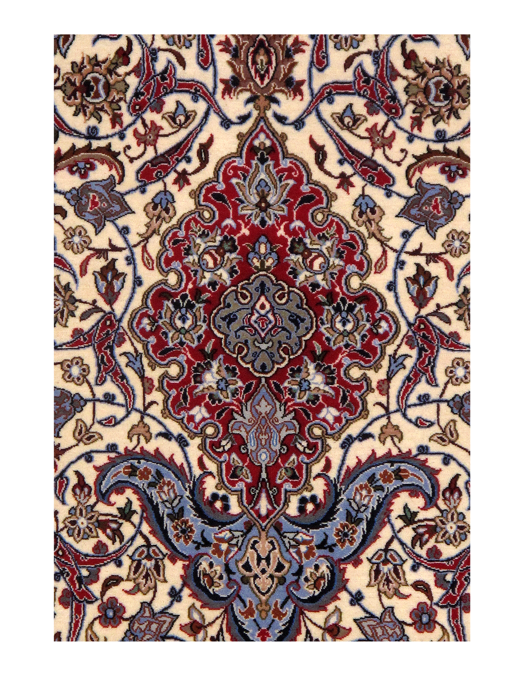 The Isfahan rugs are made with exceptionally good quality of wool & silk. They use traditional motifs inspired by architectural tiles that once decorated the historical buildings from which these rugs originated in. When it comes to high class designs the composition, patterns, and materials of Isfahan meets those expectations. The motifs usually consist of medallions with palmetts and also figural motifs. Isfahan rugs have an extremely high knot density and are woven with silk and golden threads, which give them their luxurious look.