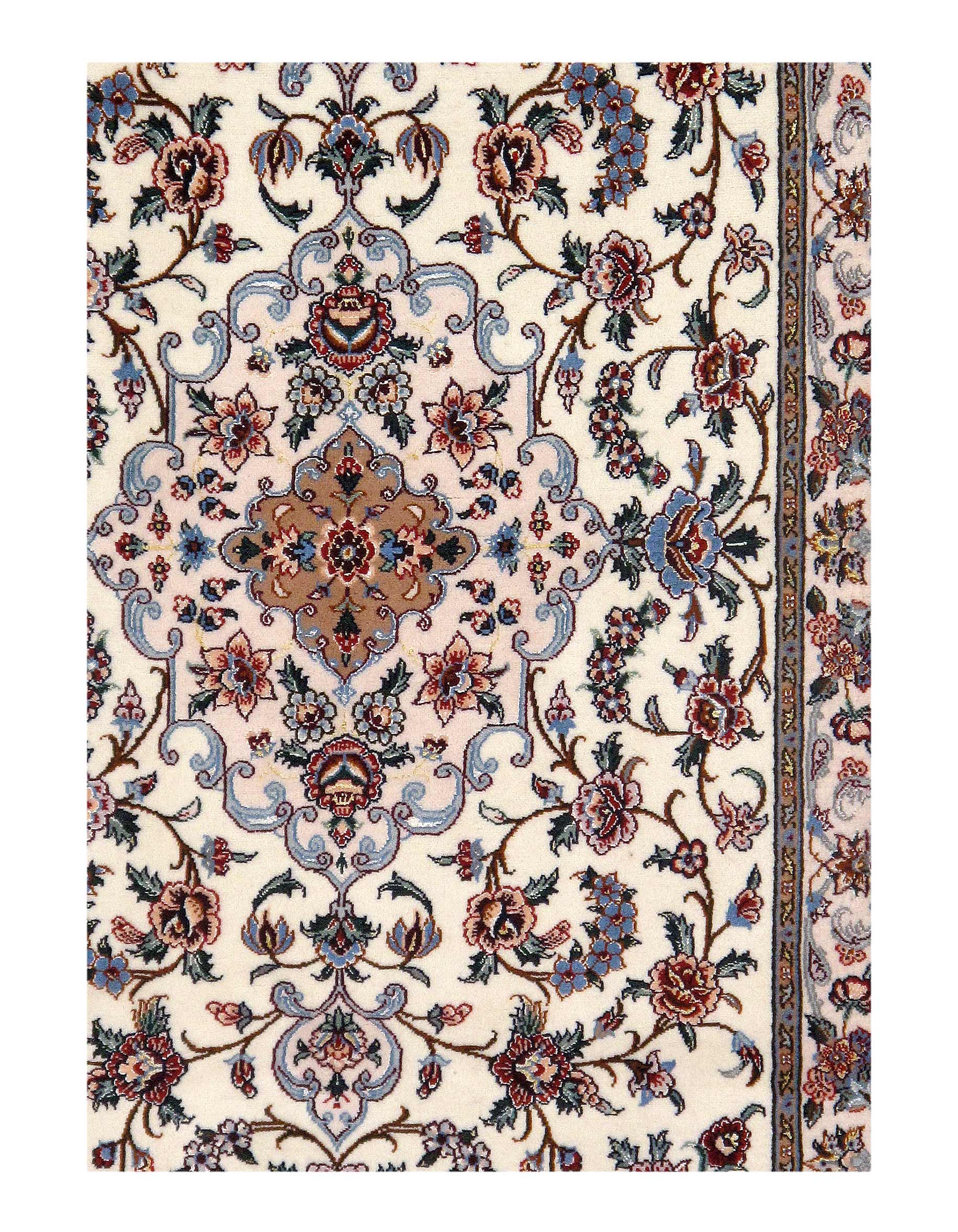The Isfahan rugs are made with exceptionally good quality of wool & silk. They use traditional motifs inspired by architectural tiles that once decorated the historical buildings from which these rugs originated in. When it comes to high class designs the composition, patterns, and materials of Isfahan meets those expectations. The motifs usually consist of medallions with palmetts and also figural motifs. Isfahan rugs have an extremely high knot density and are woven with silk and golden threads, which give them their luxurious look.