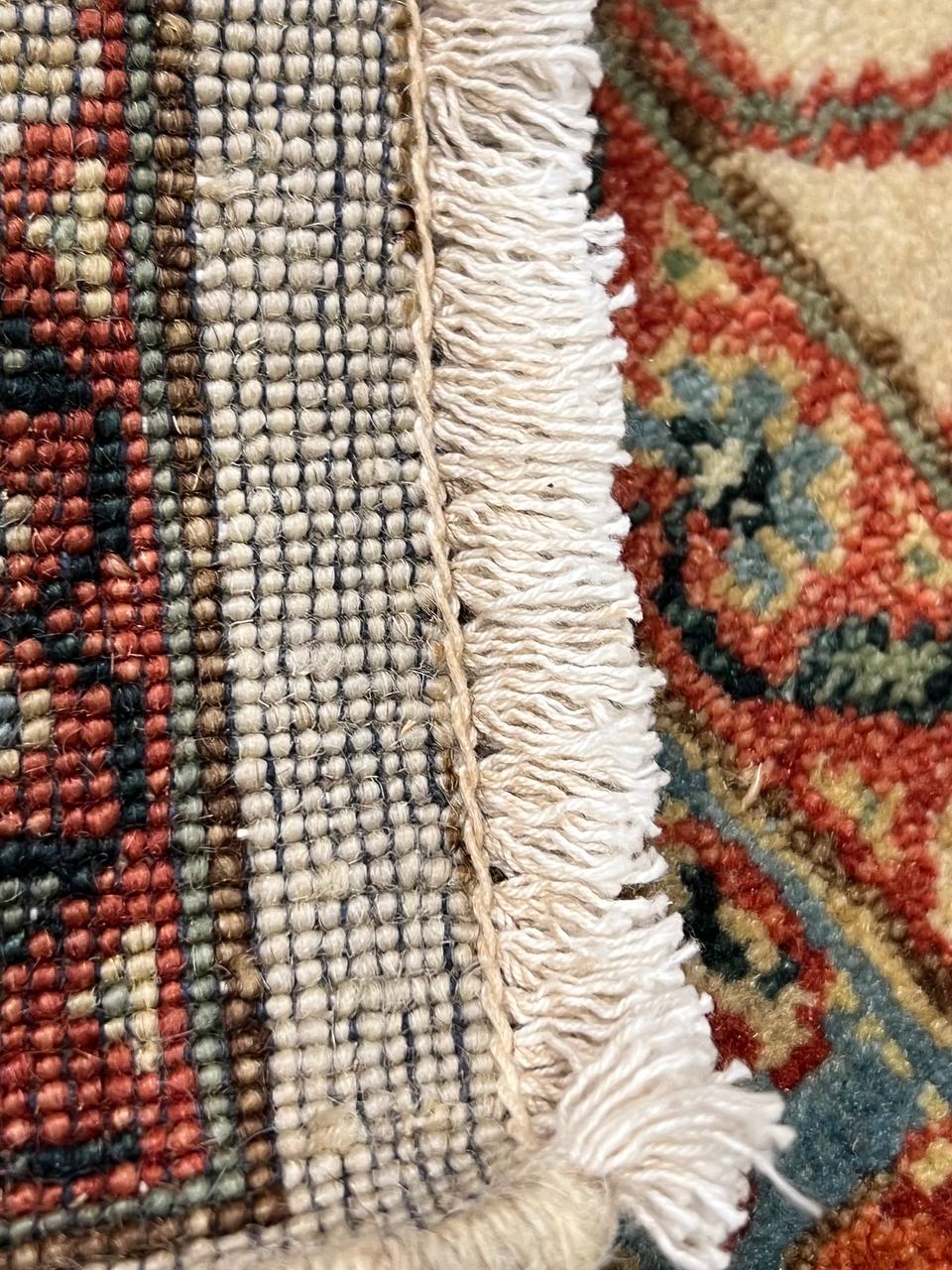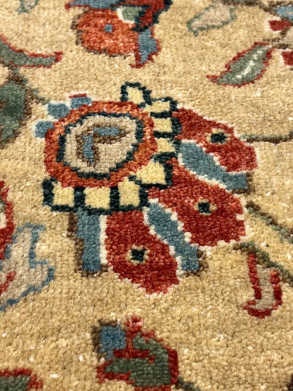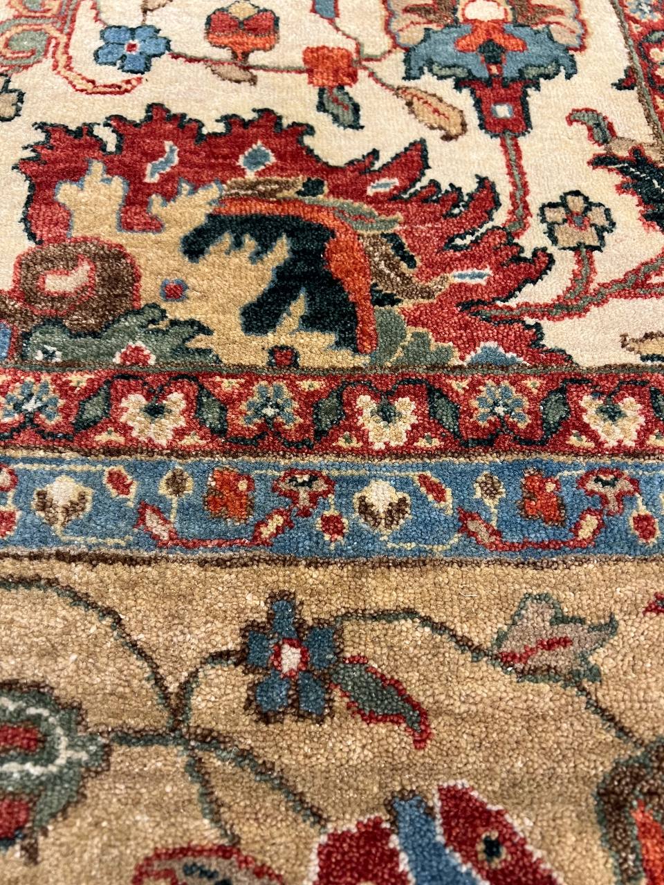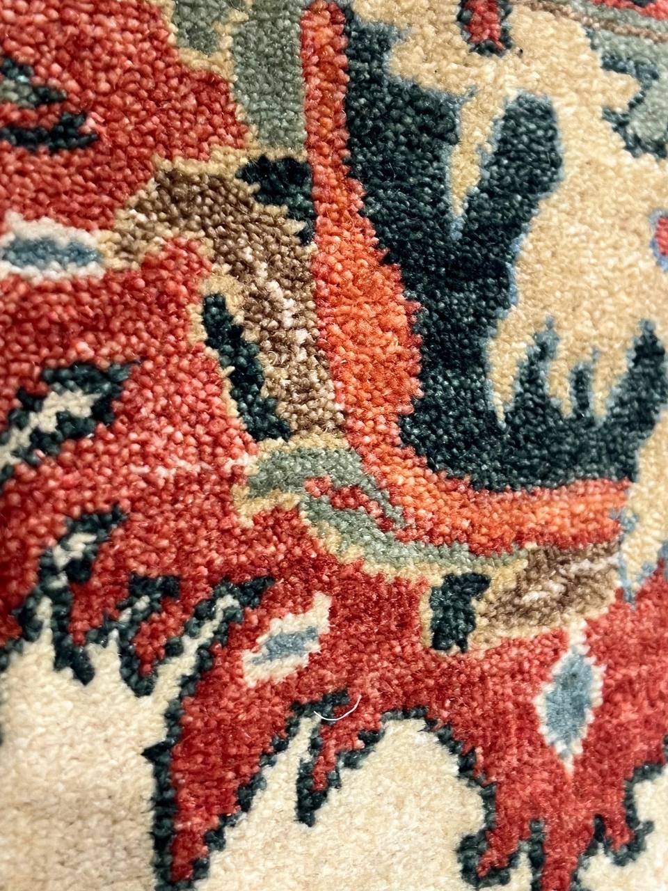 Mahal design rug. Handmade and hand-knotted in fine lambswool on a cotton foundation. Vegetable dyed hand-spun wool rug.
