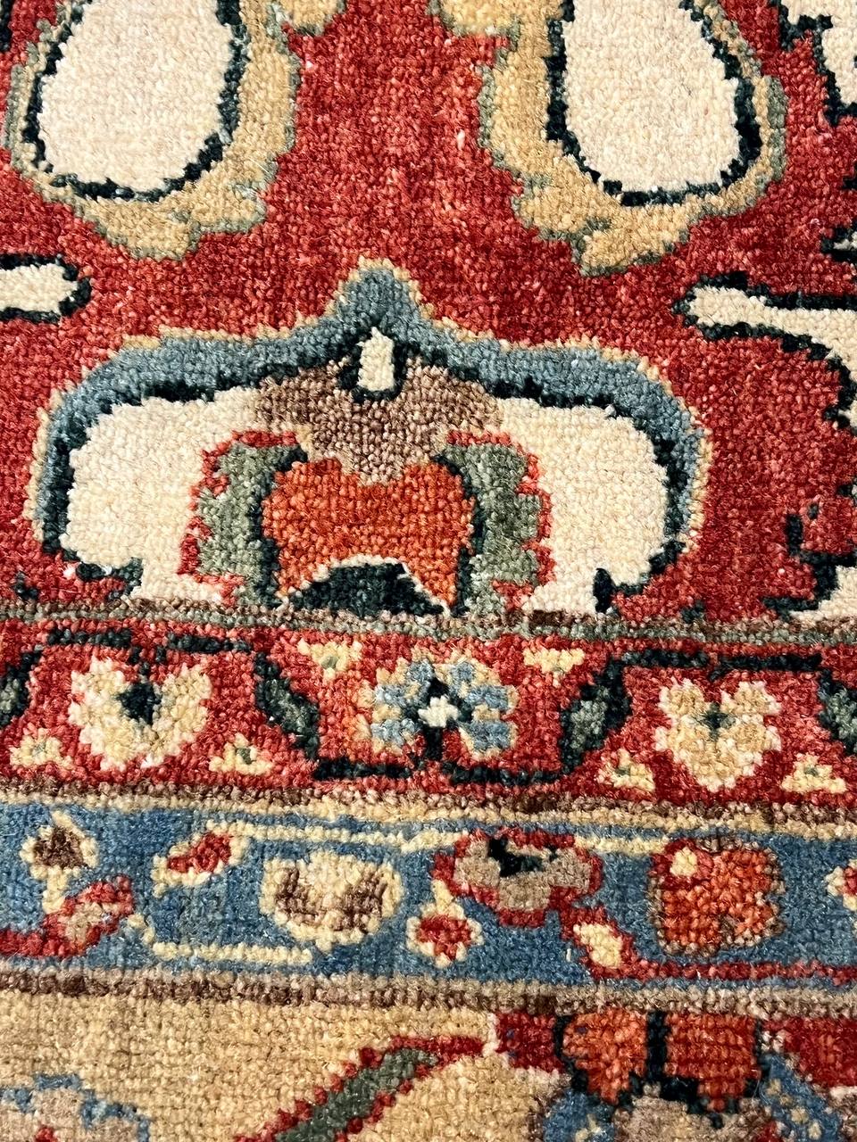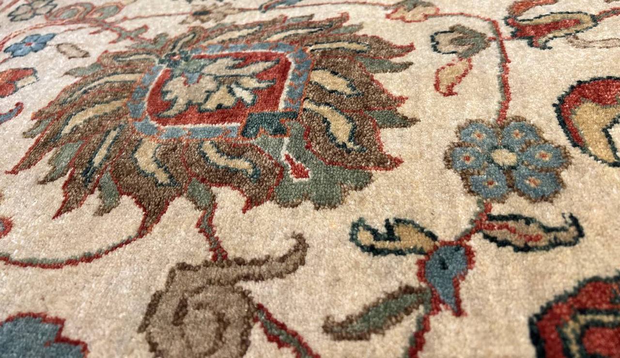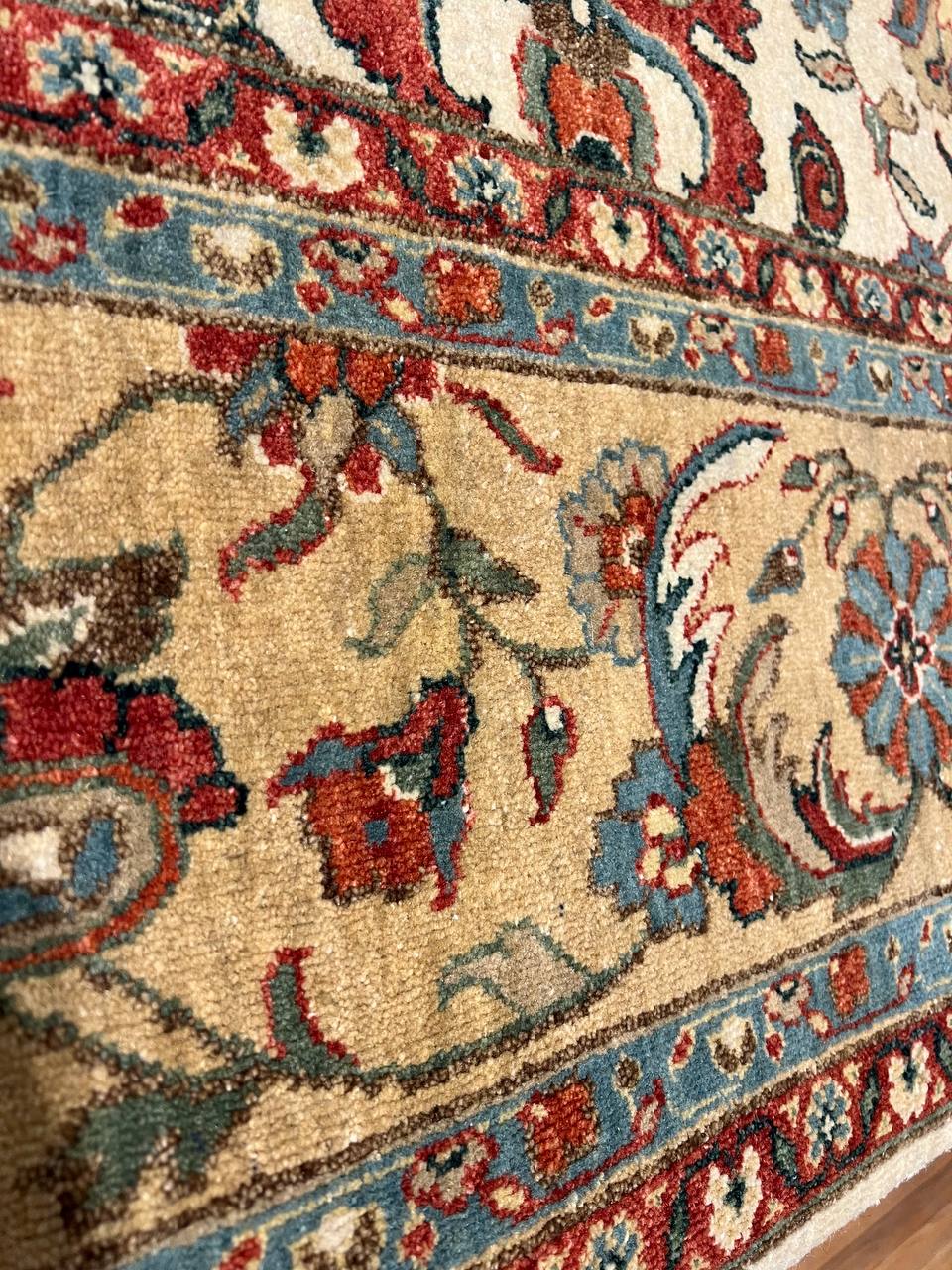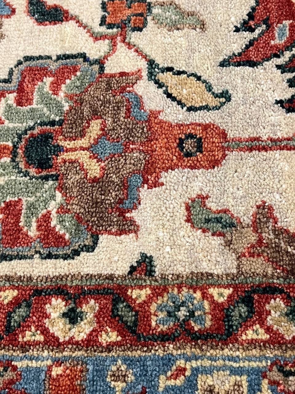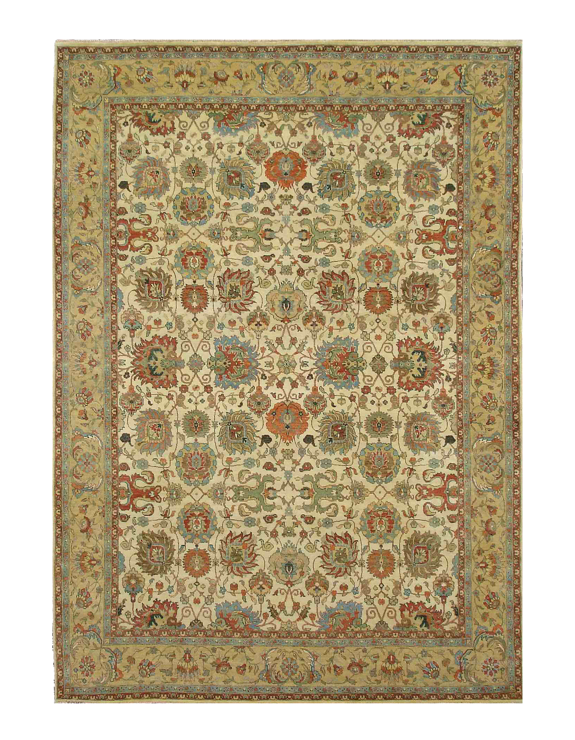Mahal design rug. Handmade and hand-knotted in fine lambswool on a cotton foundation. Vegetable dyed hand-spun wool rug.