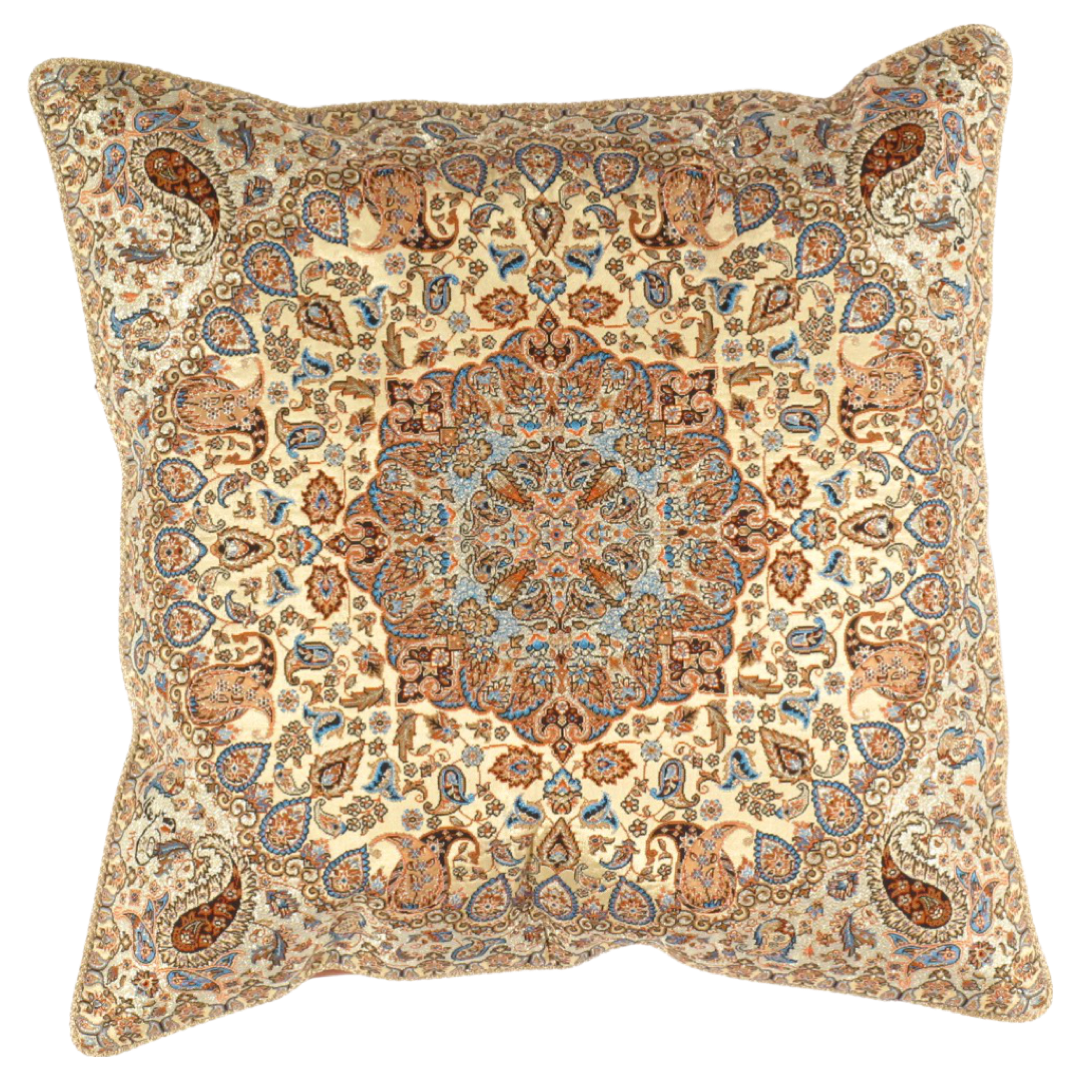Beautiful Very Rare Termeh ( Silk Made Material With Design ) With hand made Heavy beaded Pearl Gold & Silver Thread. 700 hundred years old Persian zoroastrian art only produced in the city of Yazd and demonstrates the glorious ancient Persian empire bright culture, These truly peaces of arts represents the special designs workmanship on silk waving materials and exquisite handwork on placing stones/pearls and gold and silver threads, A fine Decorective objects to be placed on tables, Furniture or Framed as art deco for your walls or a FANTASTIC GIFTSIZE: 20'' X 20''