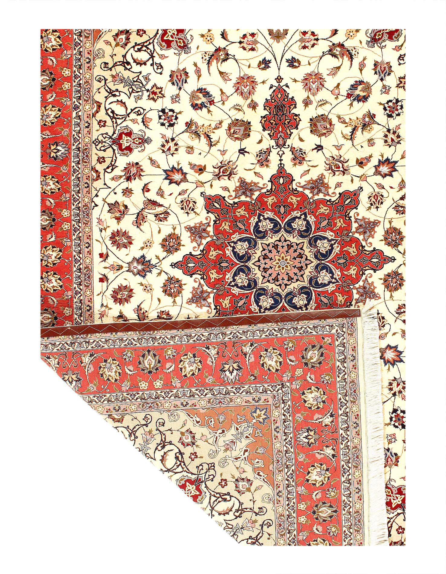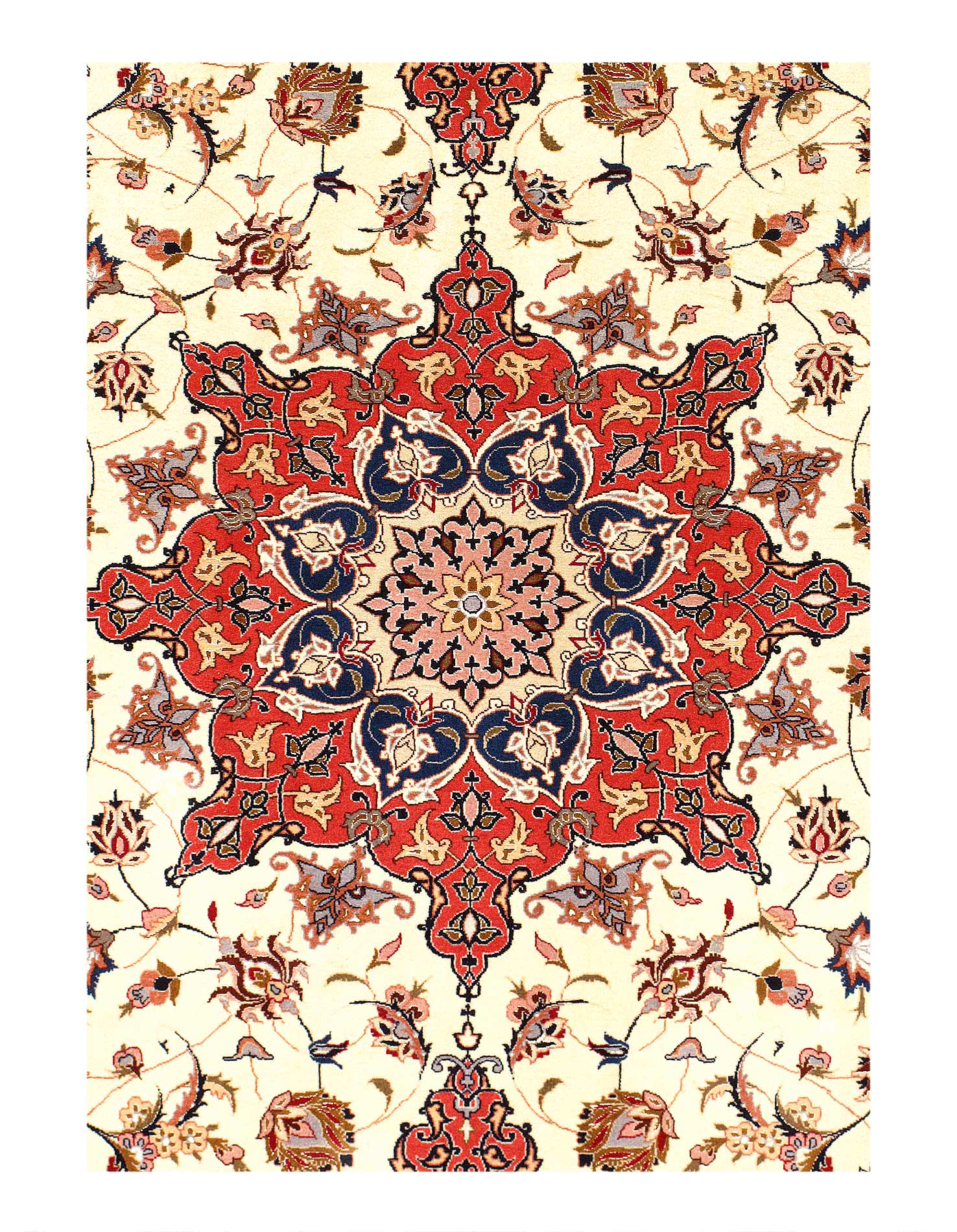 During the great revival of rug weaving in the nineteenth century Tabriz still had its master rug weavers designers like the famed Haji Jalili. Given this long and distinguished tradition, it comes as no surprise that no other Persian center of rug weaving can demonstrate such a wide range of designs or pattern types. The Tabriz design repertory is in fact so varied and extensive, that its products cannot be identified according to the rug’s design pattern or motif, but rather through the distinctive combination of refined classical Persian motifs with a preference for symmetrical knotting, extra wefts, and dyed warps.