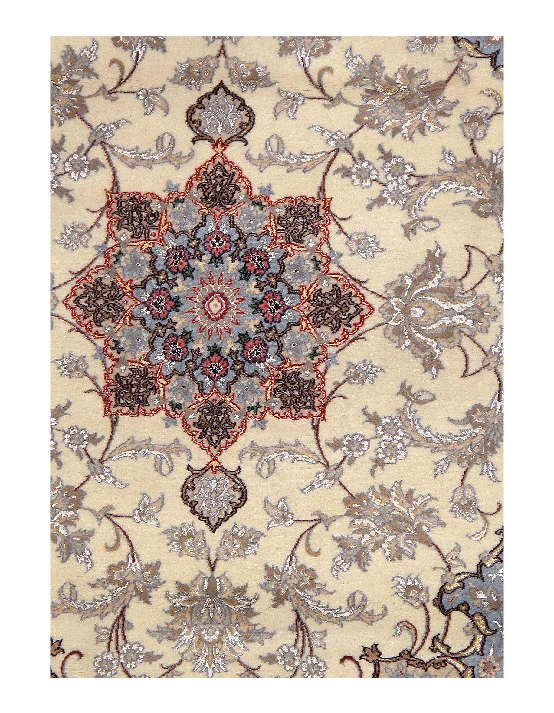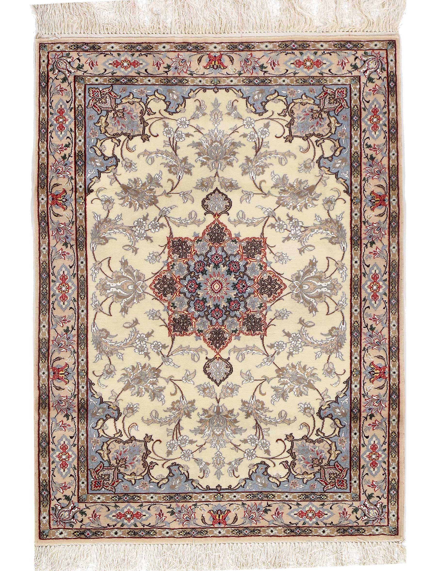 The Isfahan rugs are made with exceptionally good quality of wool & silk. They use traditional motifs inspired by architectural tiles that once decorated the historical buildings from which these rugs originated in. When it comes to high class designs the composition, patterns, and materials of Isfahan meets those expectations. The motifs usually consist of medallions with palmetts and also figural motifs. Isfahan rugs have an extremely high knot density and are woven with silk and golden threads, which give them their luxurious look.