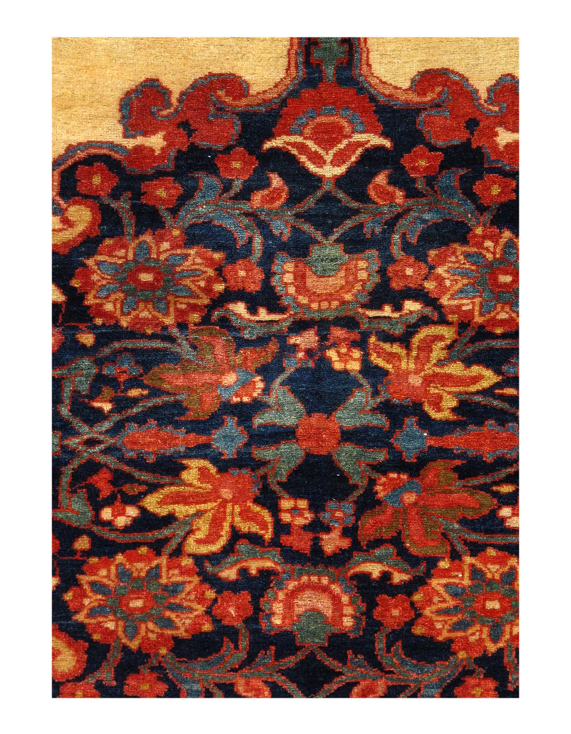 So much attention to even the smallest of details went into creating this phenomenal small size rug. Its fine weave, crisp design, luxurious wool quality and exciting use of colors, help to elevate this antique Persian Farahan rug into a call of its own.