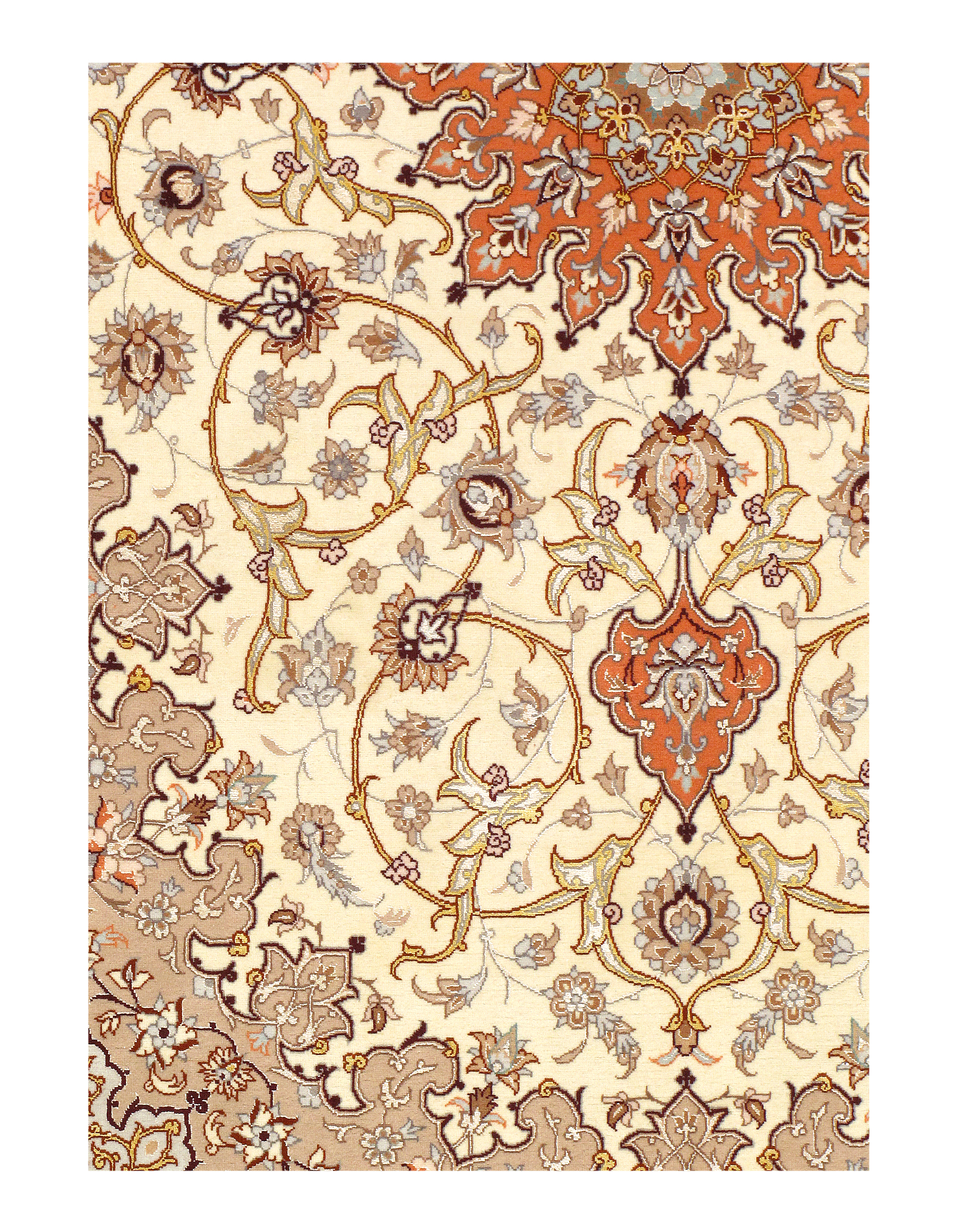 The Isfahan rugs are made with exceptionally good quality of wool & silk. They use traditional motifs inspired by architectural tiles that once decorated the historical buildings from which these rugs originated in. When it comes to high class designs the composition, patterns, and materials of Isfahan meets those expectations. The motifs usually consist of medallions with palmetts and also figural motifs. Isfahan rugs have an extremely high knot density and are woven with silk and golden threads, which give them their luxurious look.