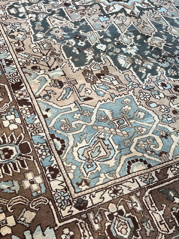 Bakhtiari oriental rugs woven before 1950 were examples of tribal rugs, which are traditionally smaller rugs, with wool yarns hand knotted onto a wool foundation. The nomadic lifestyle of these sheep herding tribes, moving their stock from winter to summer pasture, dictated the necessity of smaller and easily movable looms, using the wool from their sheep for the foundation and pile of their rugs.