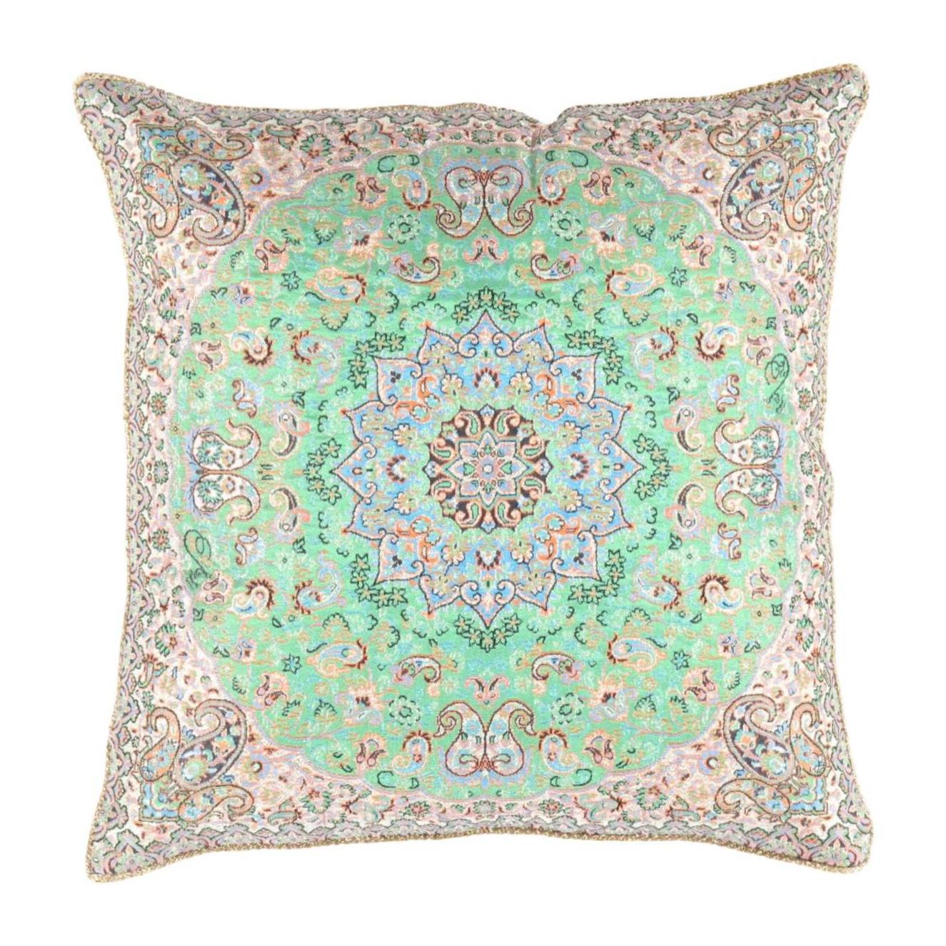 Beautiful reproduce Very Rare Termeh ( Silk Made Material With Design ) With hand made . 700 hundred years old Zoroastrian art only produced in demonstrates the glorious ancient empire bright culture, These truly peaces of arts represents the special designs workmanship on silk waving materials and exquisite handwork on placing L green and silver threads, A fine Decorative objects to be placed on tables, Furniture or Framed as art decor for your walls or a FANTASTIC GIFT SIZE: 16'' X 16''