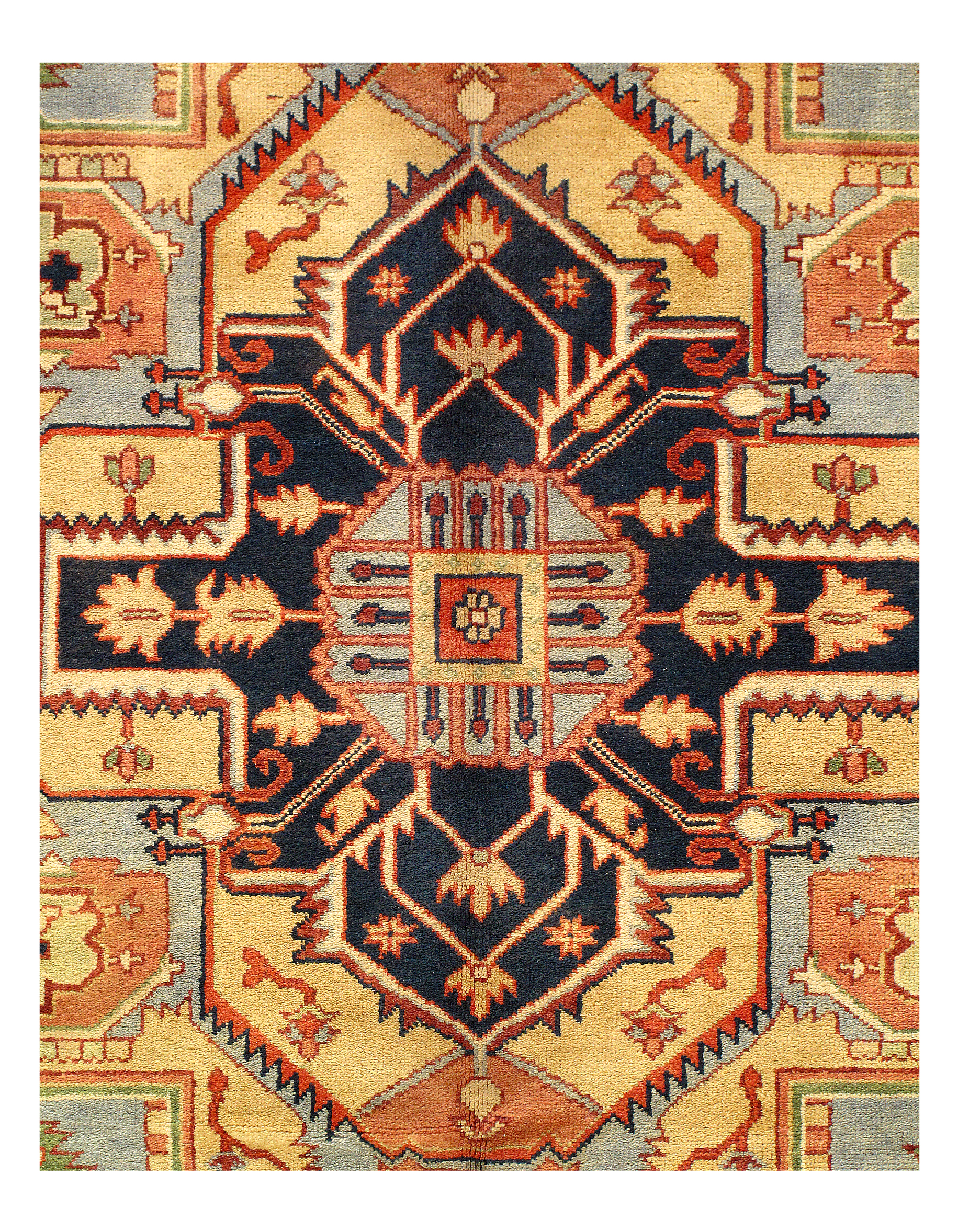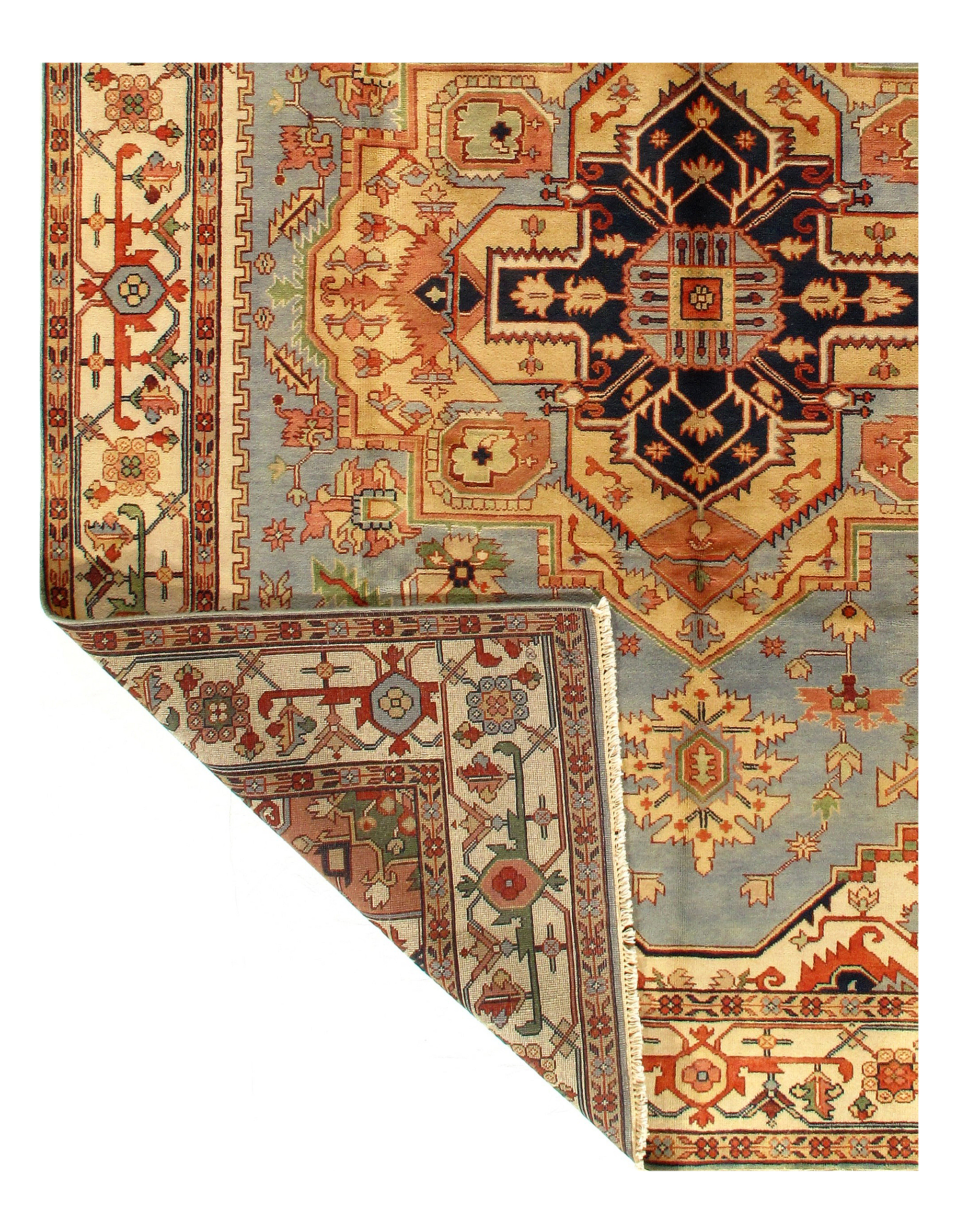 Persian Serapi design rug. Handmade and hand-knotted in fine lambswool on a cotton foundation. Vegetable dyed hand-spun wool rug.