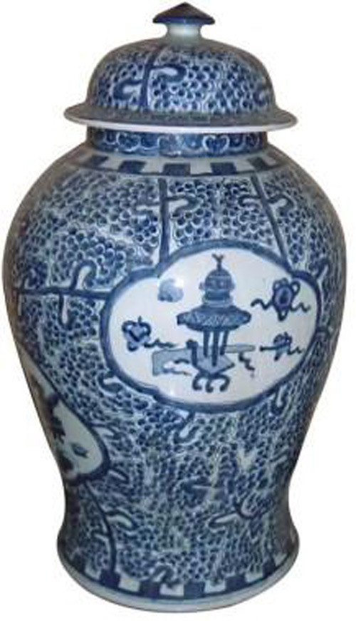 Chinese porcelain jars. Chinese temple shape with a removable lid. 10.6" X 10.6" X 18.8"