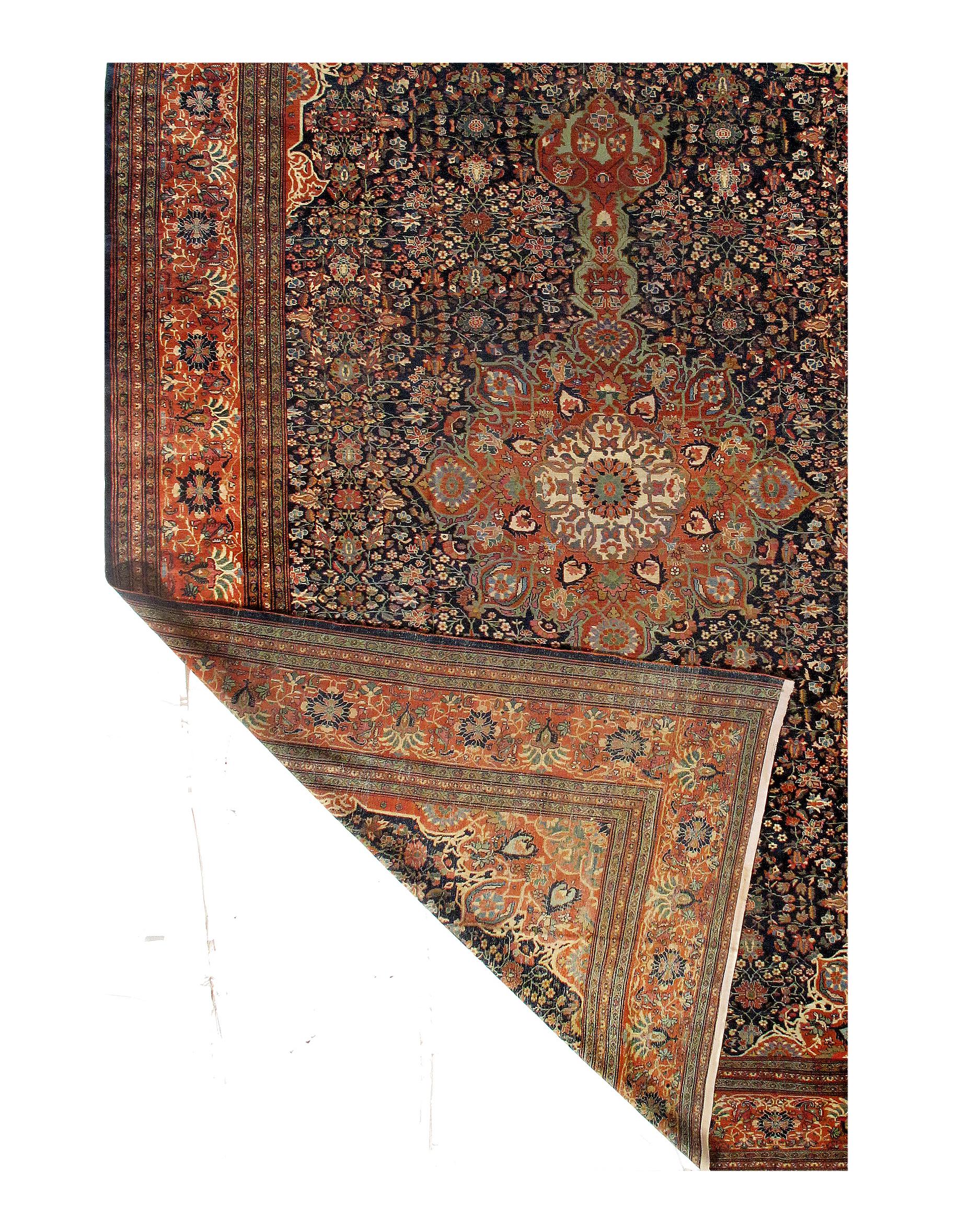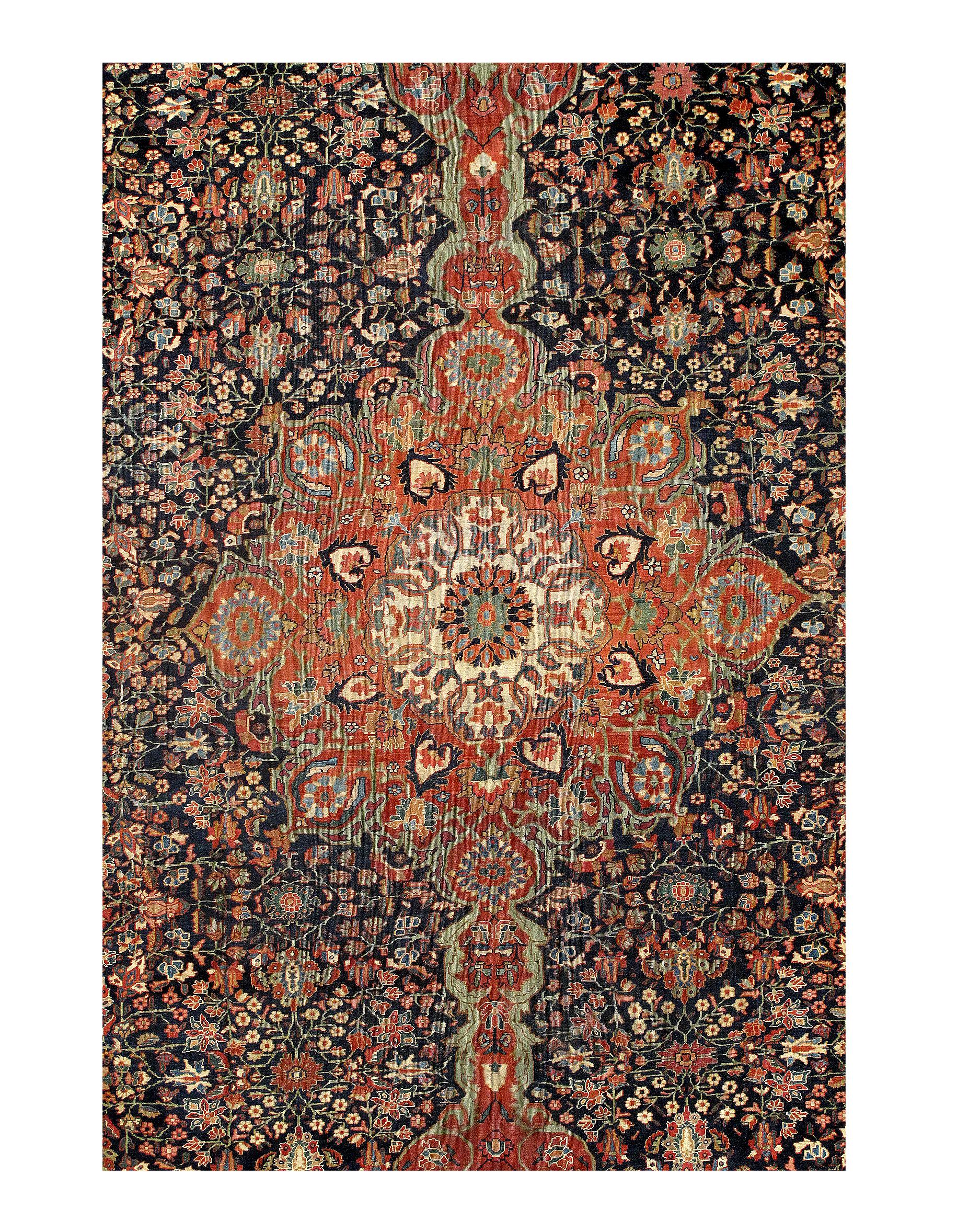 Hand-knotted antique Sarouk Farahan rug. The piece was made from hand-spun lamb's wool and all-natural dyes.
