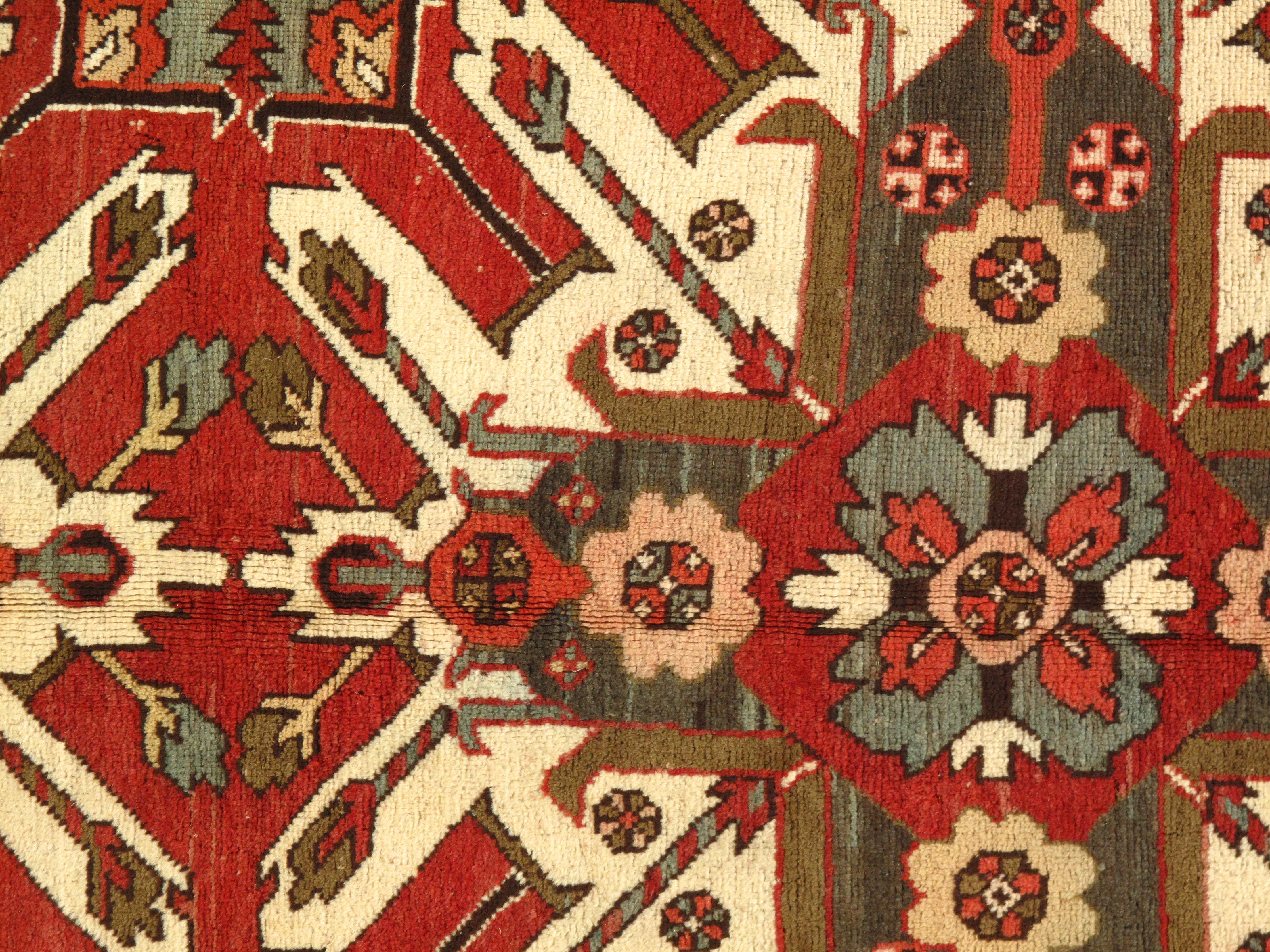 Hand knotted 100% hand-spun lamb's wool rug on a wool foundation. All natural dyes .From Russia. This rug has a dense, soft pile, and excellent quality, to ensure that you will enjoy it for years to come. 12224