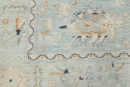 This Oushak Hand-Knotted Wool Teal Area Rug celebrated for its understated elegance, is greatly influenced by original antique Turkish Oushaks. Every Oushak reproduction is hand-knotted by master weavers capturing the look and spirit of the original Oushaks. Artfully made from hand spun New Zealand wool, each rug allows a texture that is soft and luxurious. This rug set a standard of excellence that will outlast the whims of fashion and without a doubt become tomorrow’s antiques!