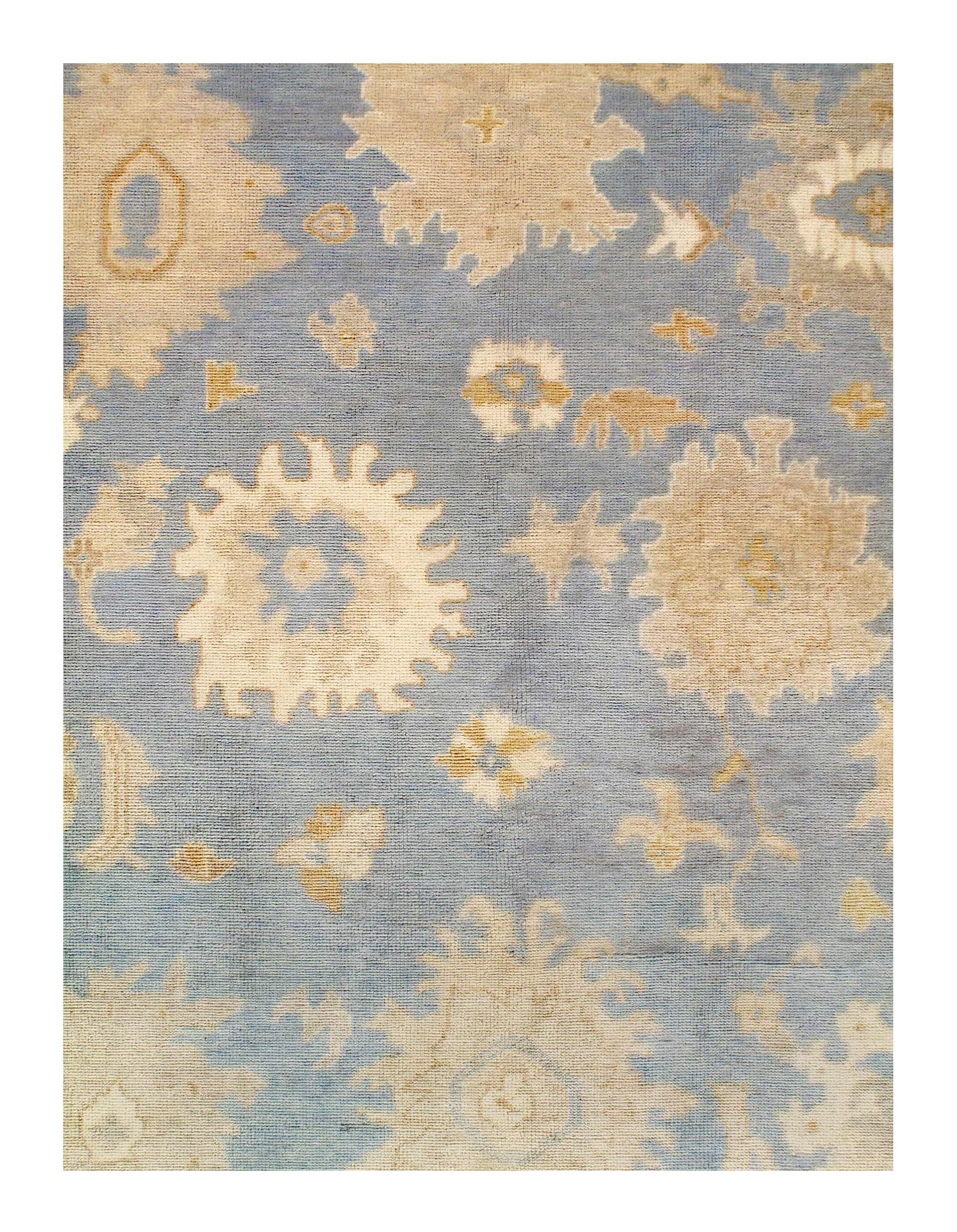 This Oushak Hand-Knotted Wool Light Blue Area Rug celebrated for its understated elegance, is greatly influenced by original antique Turkish Oushaks. Every Oushak reproduction is hand-knotted by master weavers capturing the look and spirit of the original Oushaks. Artfully made from hand spun New Zealand wool, each rug allows a texture that is soft and luxurious. This rug set a standard of excellence that will outlast the whims of fashion and without a doubt become tomorrow’s antiques!
