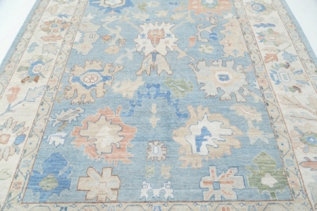 This Oushak Hand-Knotted Wool Teal Area Rug celebrated for its understated elegance, is greatly influenced by original antique Turkish Oushaks. Every Oushak reproduction is hand-knotted by master weavers capturing the look and spirit of the original Oushaks. Artfully made from hand spun New Zealand wool, each rug allows a texture that is soft and luxurious. This rug set a standard of excellence that will outlast the whims of fashion and without a doubt become tomorrow’s antiques!