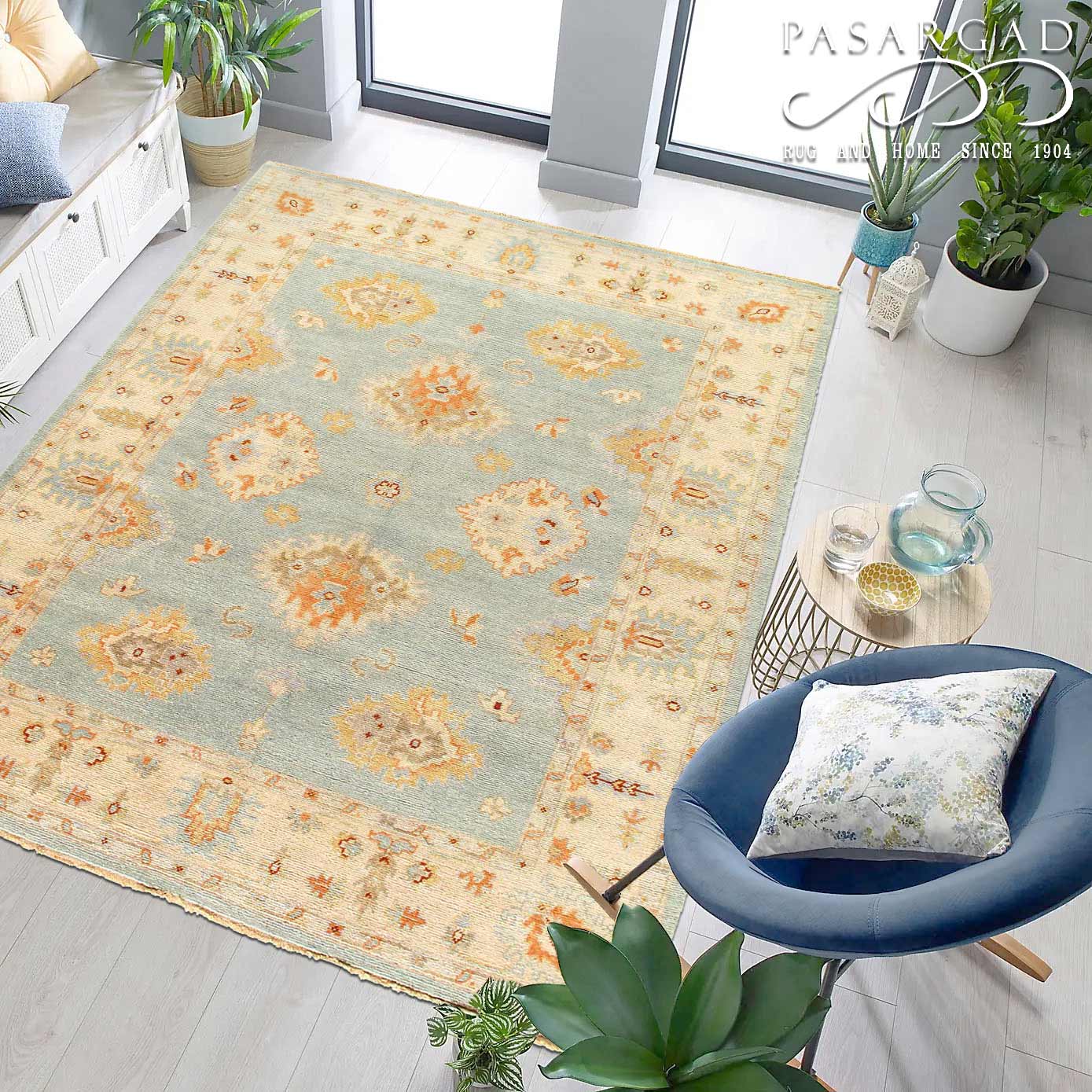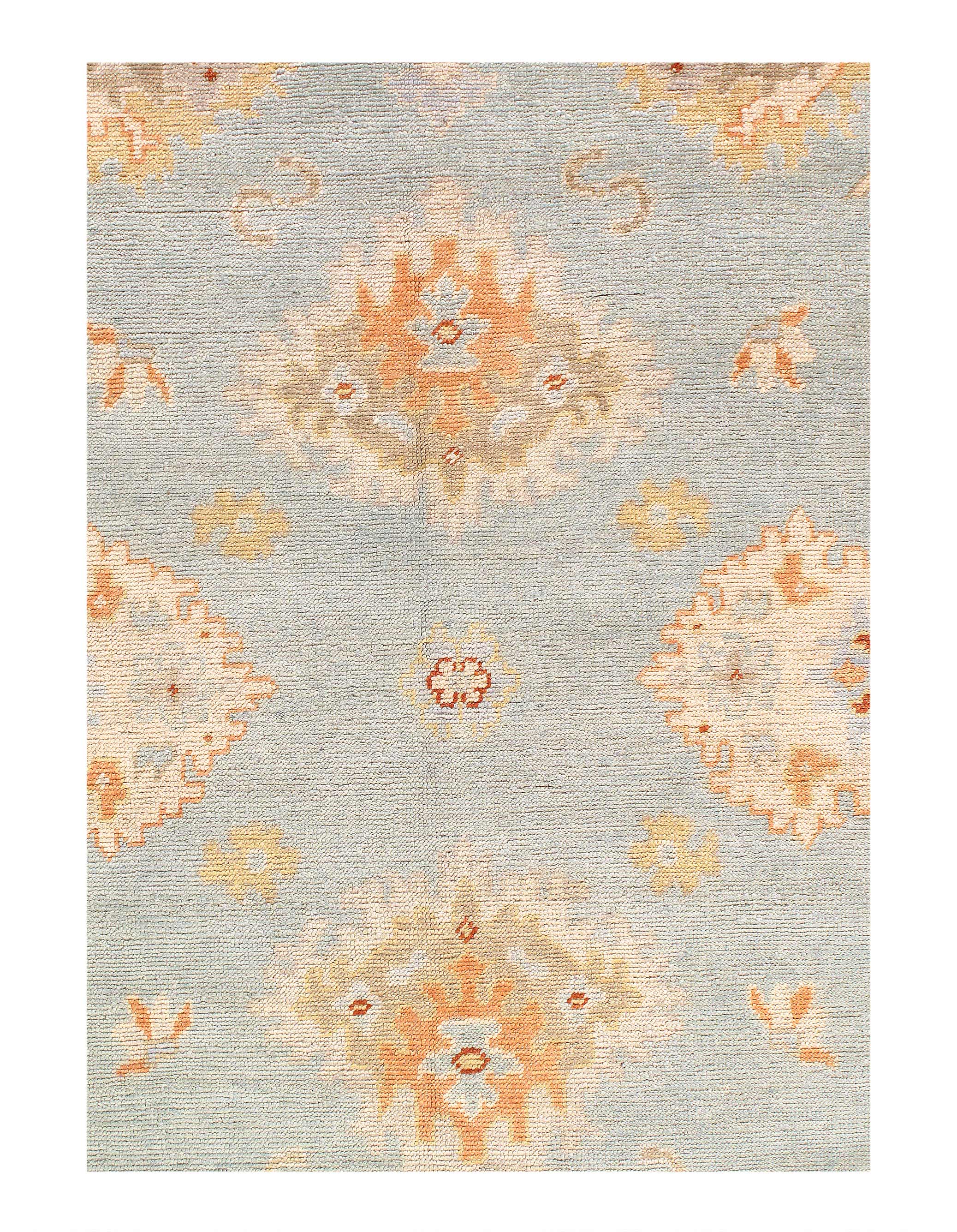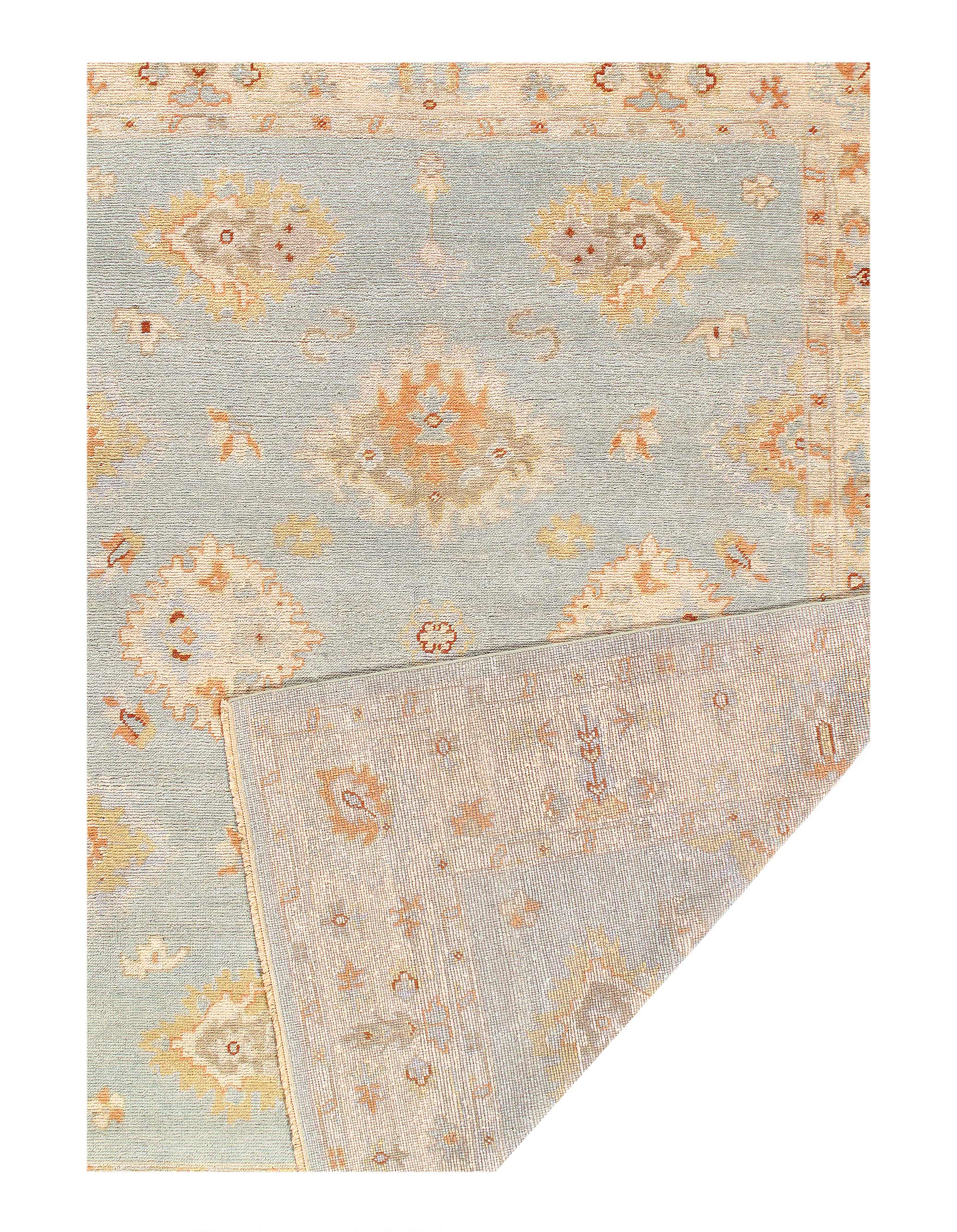 This Oushak Hand-Knotted Wool Teal Area Rug celebrated for its understated elegance, is greatly influenced by original antique Turkish Oushaks. Every Oushak reproduction is hand-knotted by master weavers capturing the look and spirit of the original Oushaks. Artfully made from hand spun New Zealand wool, each rug allows a texture that is soft and luxurious. This rug set a standard of excellence that will outlast the whims of fashion and without a doubt become tomorrow’s antiques!