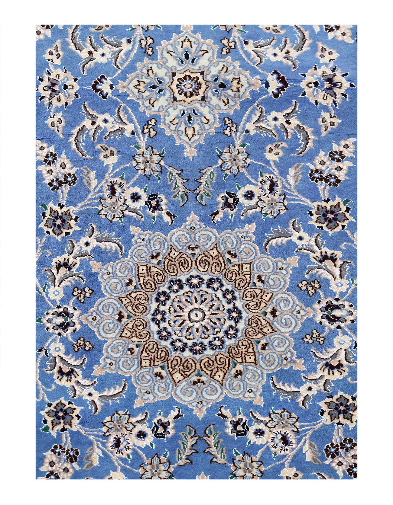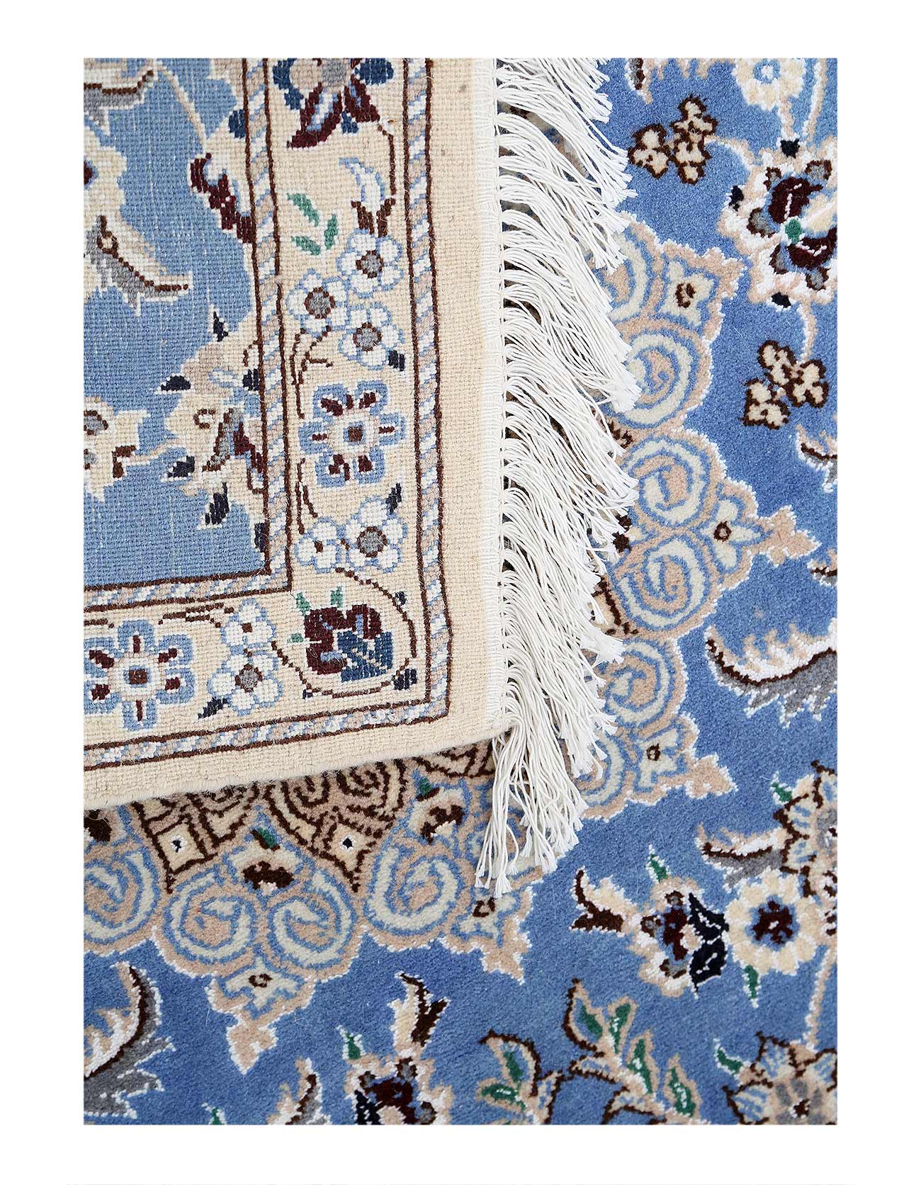 Persian Nain rugs are renowned for their detail and fine use of outlining along the central motifs. Breaking from the classical style of many vintage rugs produced around central Iran, Persian Nain rugs became renowned for their modern appeal and personal style, establishing the classical motifs of many other regional rugs, only through a more precise lens. In this striking piece, the precision is particularly visible along the heart of the vintage Persian rug, where the attention to detail allows each individual color to stand out as a unique part of the whole. The surrounding borders help ground the masterpiece and add horizontal intrigue to the natural elements within, which are arranged vertically to establish a cascading effect.
