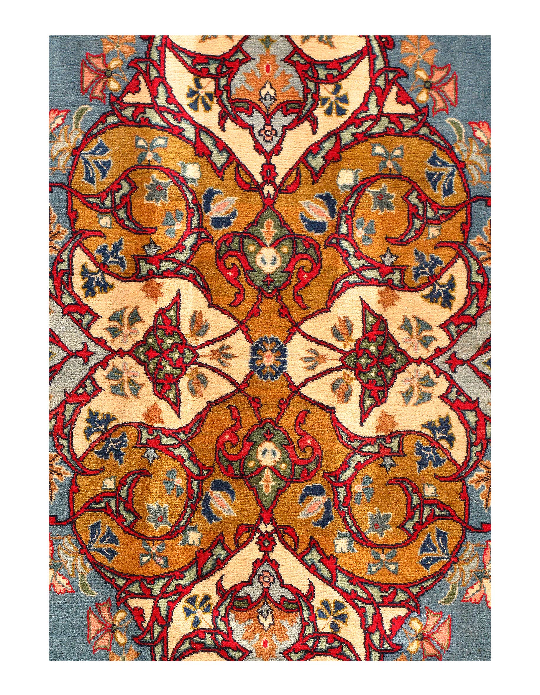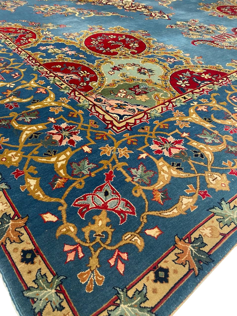 Most Persian Tehran rugs were mid-sized rugs, and they were woven with asymmetrical knots in a variety of grades ranging in knot density from the low one-hundreds to over eight hundred. The Tehran production may claim at least one famous master weaver, Seyd Abolfat-Rasam Arabzadeh. From the outset Tehran rugs established a reputation for good quality, but in the last sixty years their quality has actually improved under the direction of new master weavers, causing them to be more and more sough after.
