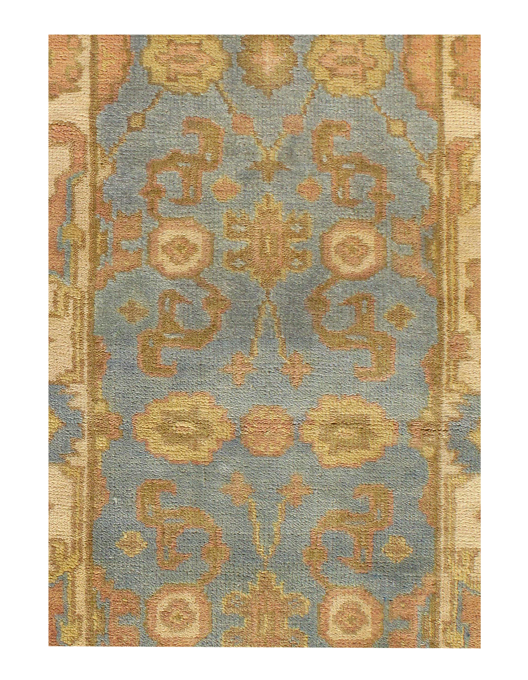 These Fine Indian Oushak carpets are extremely desirable because of their colors – which are usually much lighter and “happier” in feel than rugs from other regions. So if you are looking for an antique or vintage rug with a soft colors, theses should top your list. Fine Indian Oushak Carpets reflects the values of the time period in which they were woven. The weaving techniques, dyes used, and patterns incorporated all have their own time stamp attributed to them. These lighter colors will bring vibrancy and life to your home.