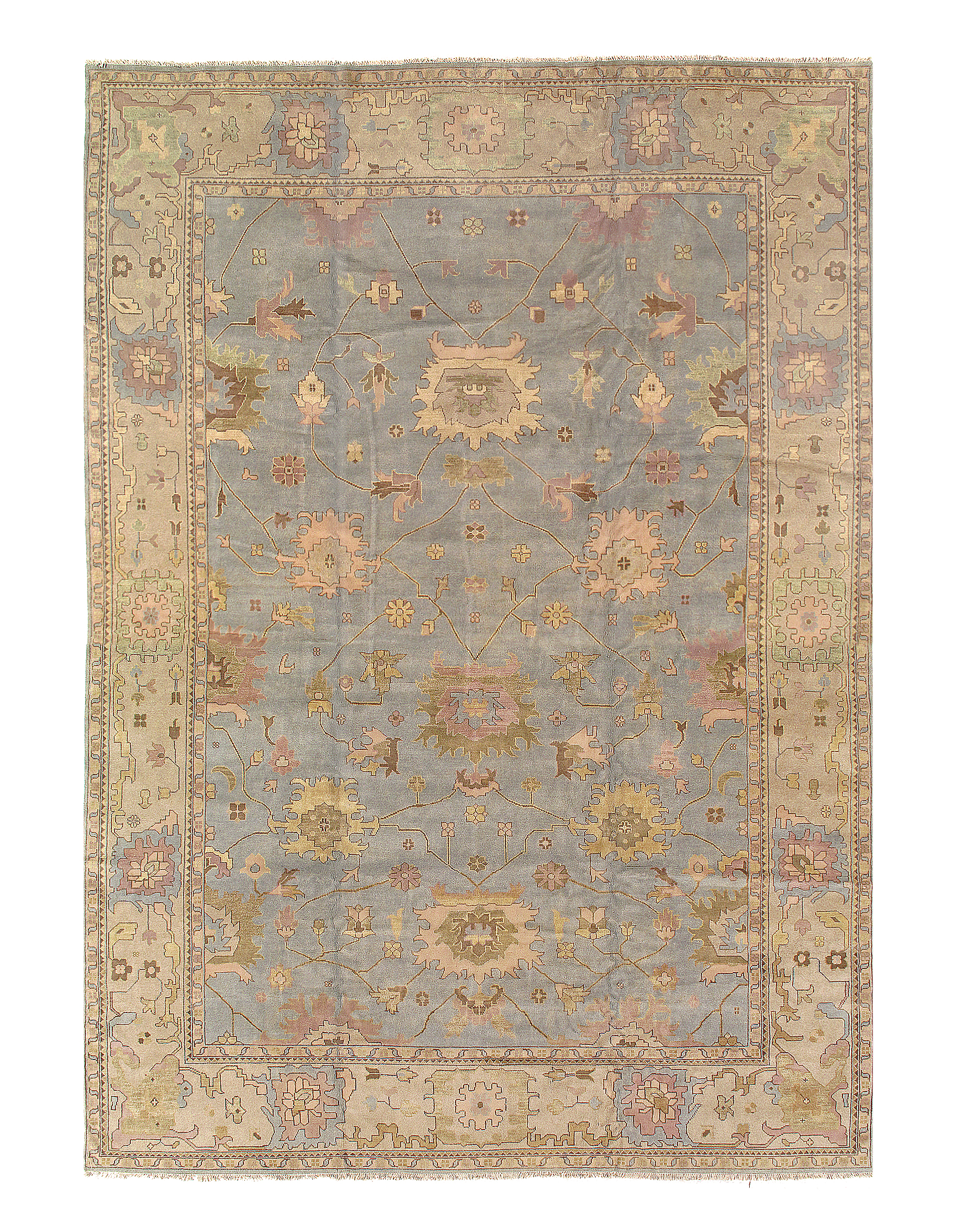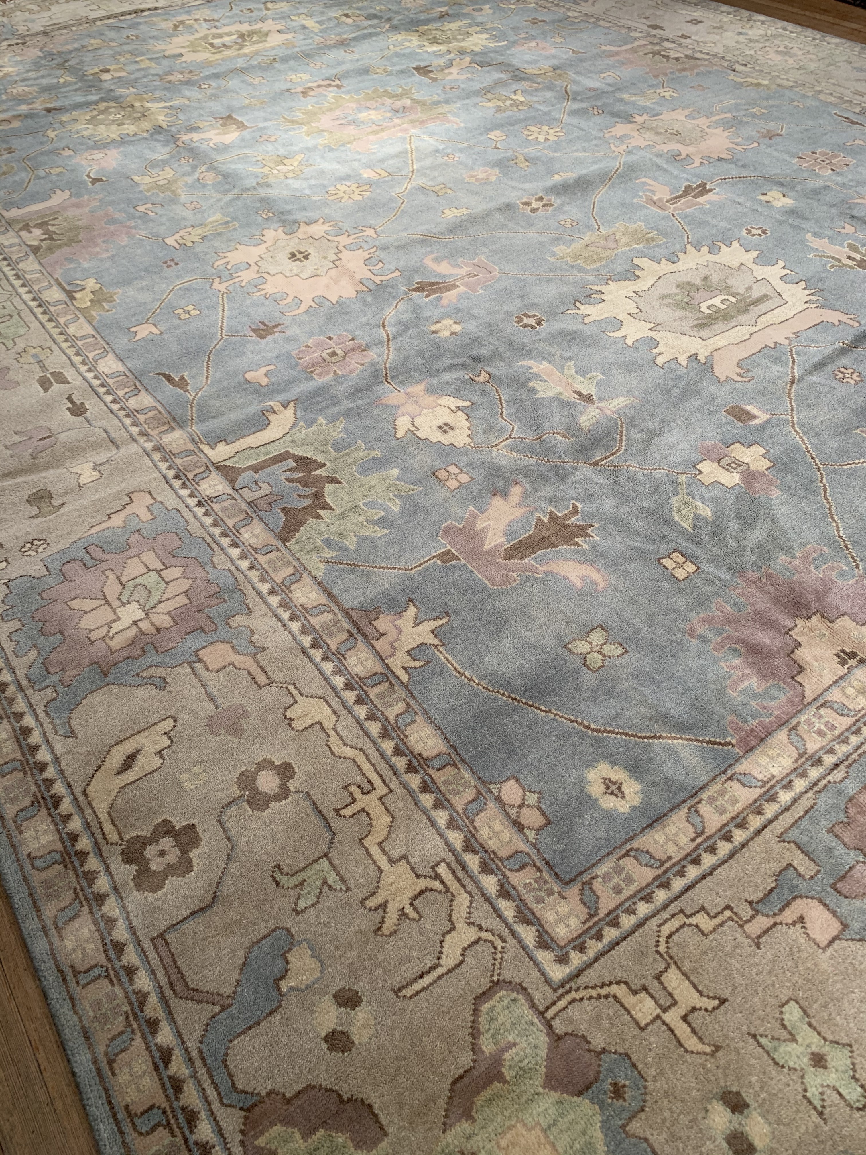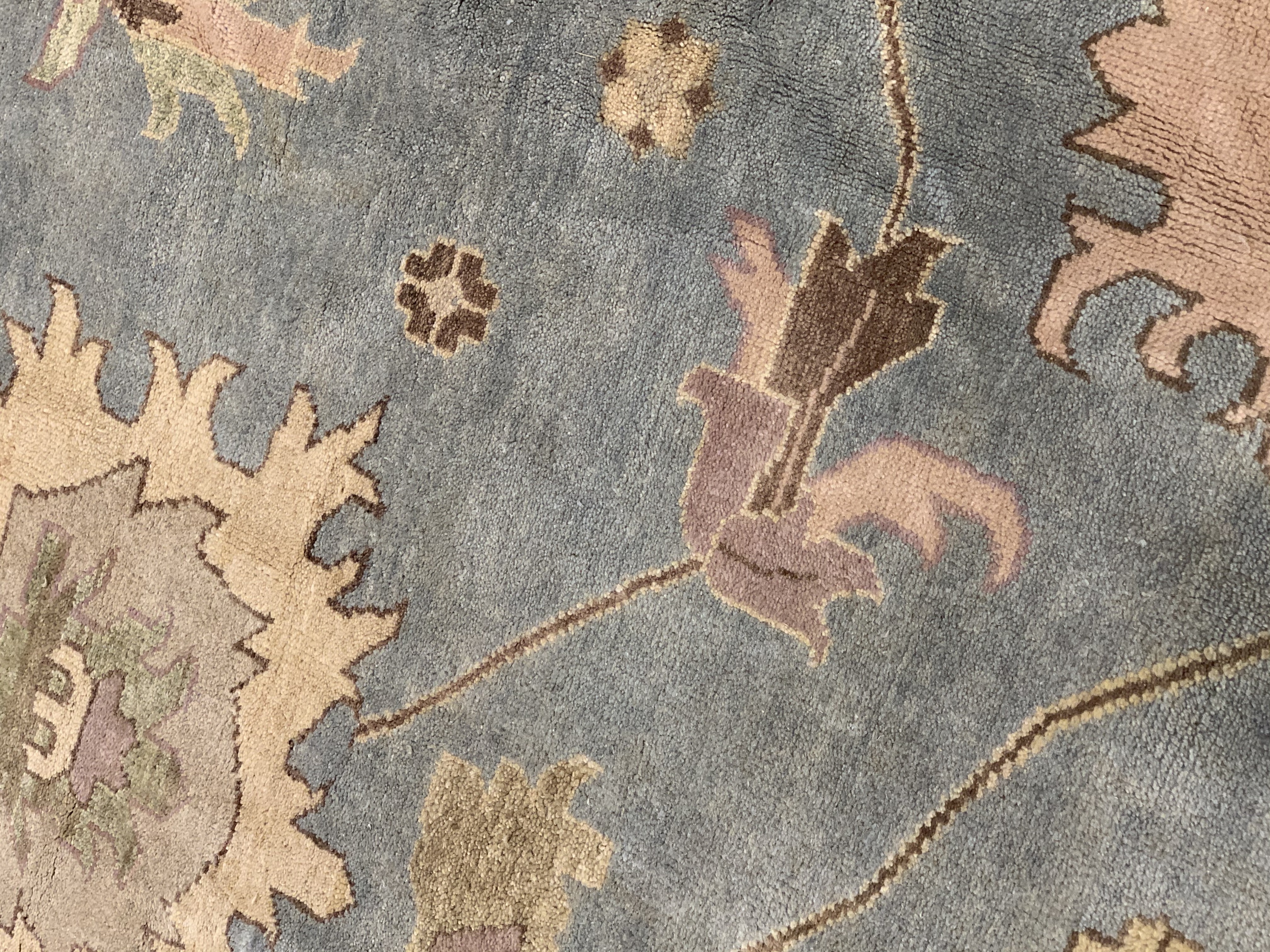 These Fine Indian Oushak carpets are extremely desirable because of their colors – which are usually much lighter and “happier” in feel than rugs from other regions. So if you are looking for an antique or vintage rug with a soft colors, theses should top your list. Fine Indian Oushak Carpets reflects the values of the time period in which they were woven. The weaving techniques, dyes used, and patterns incorporated all have their own time stamp attributed to them. These lighter colors will bring vibrancy and life to your home.