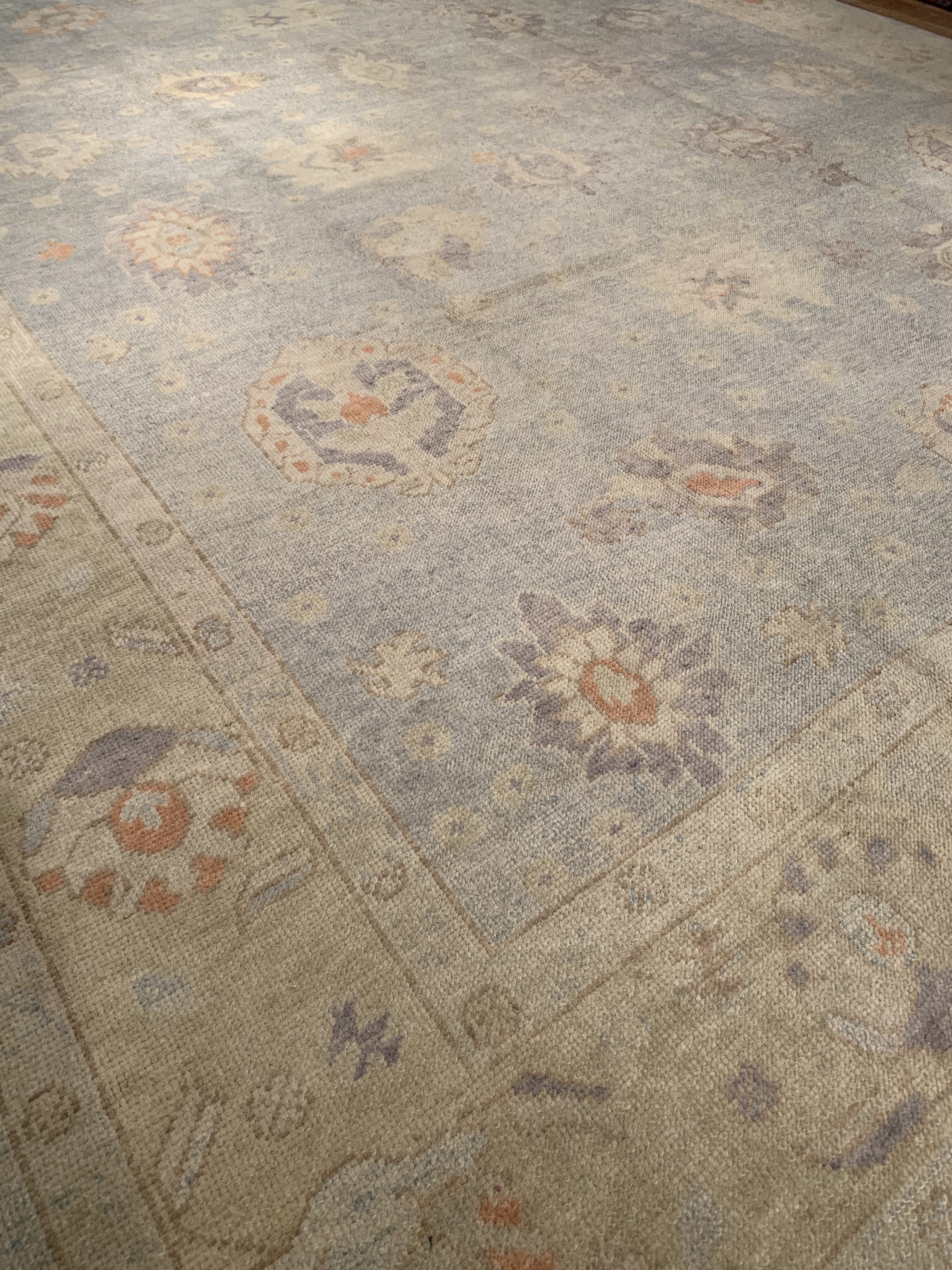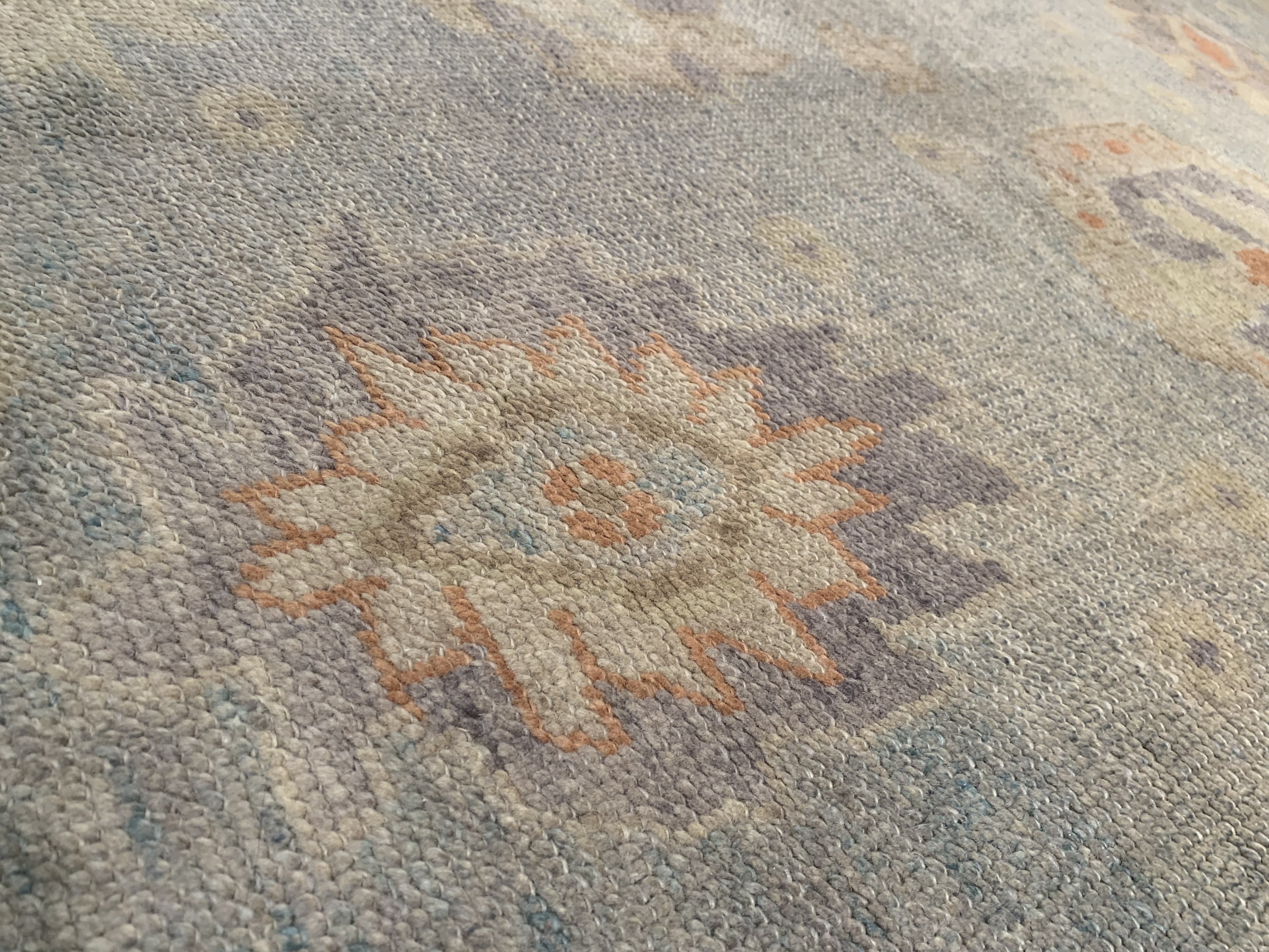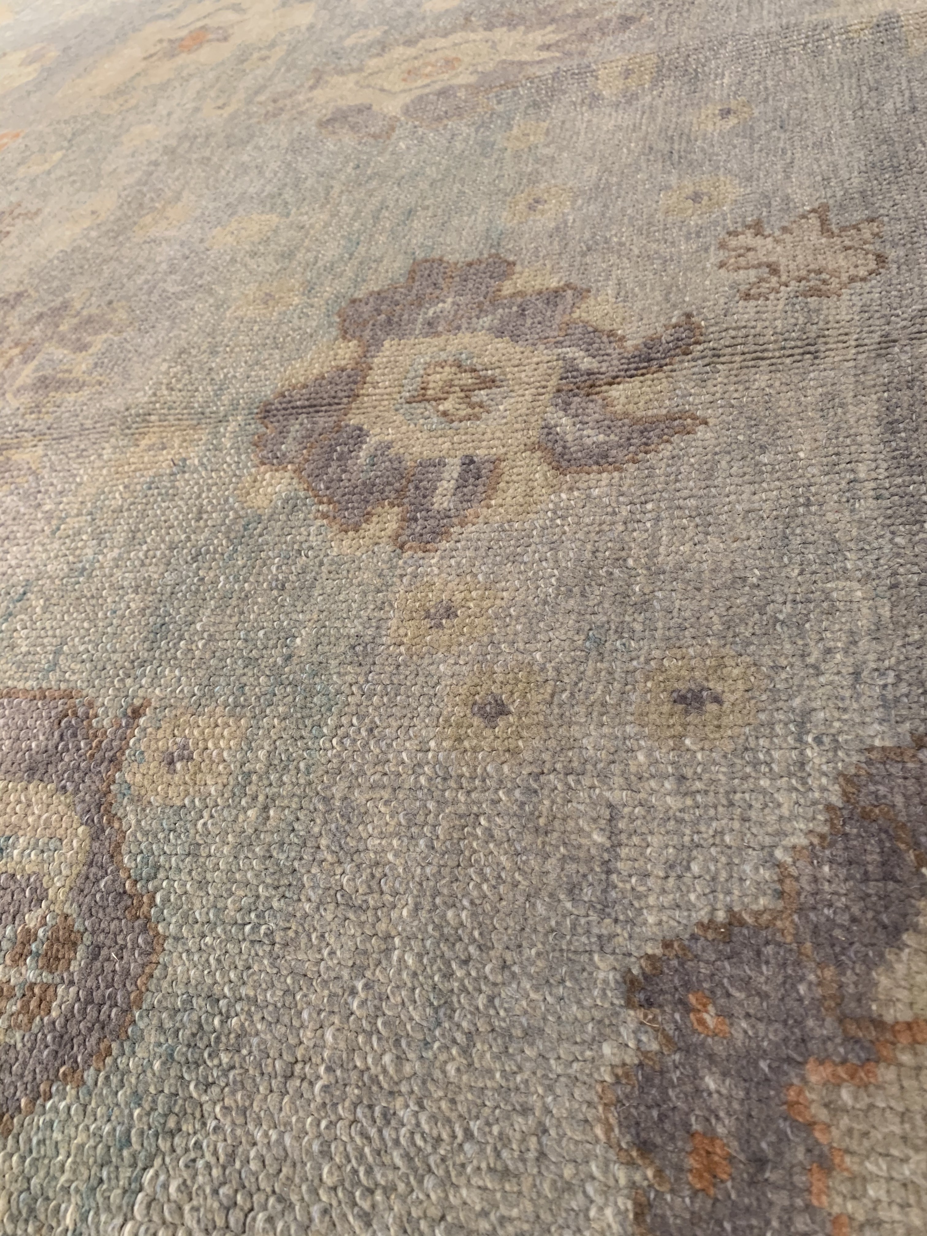 The carpet weaving art has been continuously practiced in Oushak since at least the mid-15th century. Oushak is situated on the Gediz River about 100 miles inland from the Turkish west coast. Smyrna is its port city. Oushak rugs were among the first oriental pile carpets to reach Europe, and for centuries they have appeared in Old Master paintings in both religious and secular scenes. Oushak carpets have always been purely commercial and no Ottoman court workshop was ever established in that town. Sultans, Vizirs and Pashas did, however, employ Oushaks, usually of the grandest scale, in their household decor. Large Oushaks, mostly from the 18th century, with rows of prayer niches (saphs) were employed in great numbers in mosques in Istanbul and other Turkish cities. Today they have mostly been cut up to provide collector items.