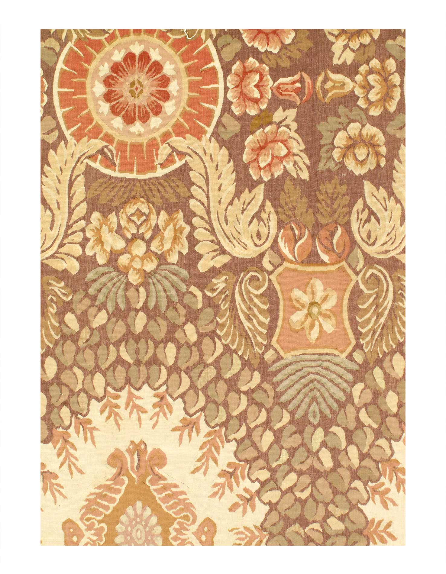 In 1600’s, in a small town called Aubusson in France, weavers had begun to create carpets and tapestries for royal palaces. In the mid 1700’s when the French crown lent support to Aubusson artisans, the industry flourished. The king commissioned the most famous architects and designers to create works of art which would be interpreted in woven form. As each new monarch came to power, new designs reflected the styles and pastimes of the era. Named after the town of their birth, these hand-woven flat weave carpets became known as Aubusson. Nowadays Aubussons are reproduced in China, done exactly as they were centuries ago in France