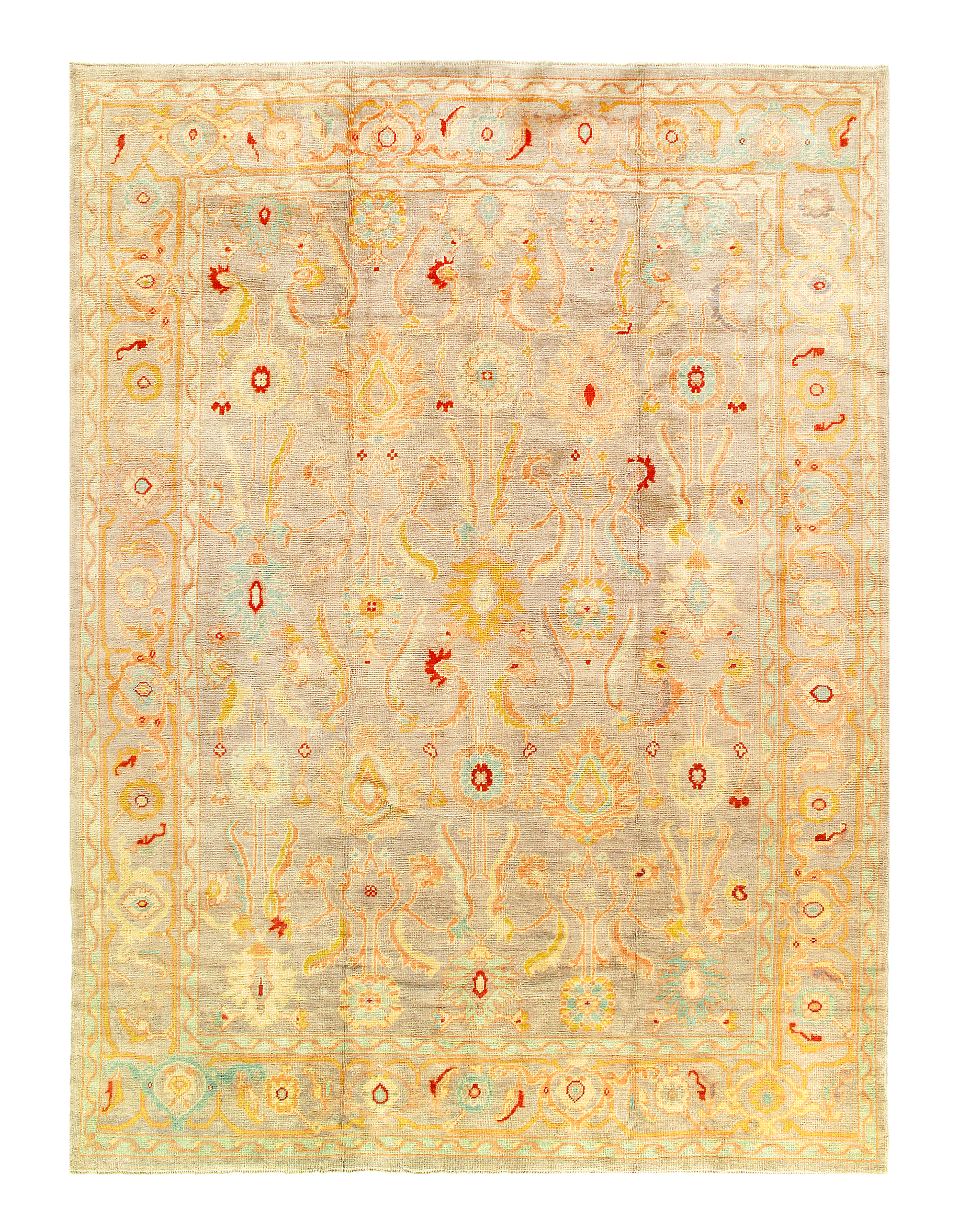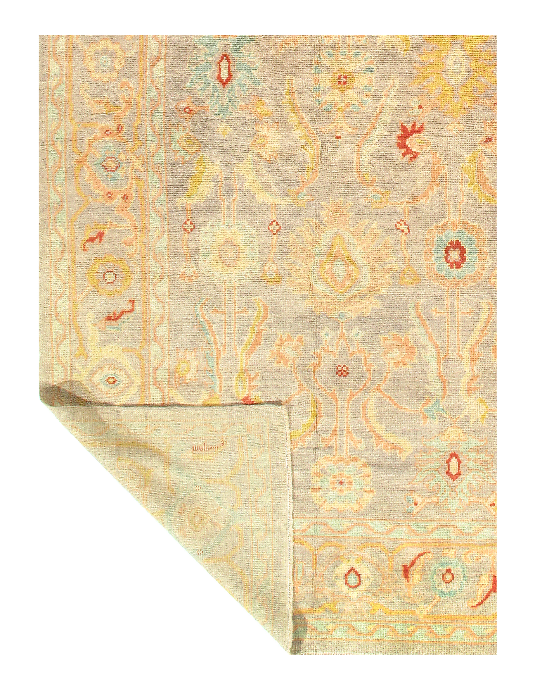 Ashkin Collection. Upholding a timeless, elegant style of design that has been the centerpiece of divine decor for generations, this exquisite rug will surely fashion an ideal addition to your space. With a striking oriental design and smooth coloring, this flawless piece will radiate both opulence and classic charm from room to room within any home. These rugs are handmade from 100-percent premium, hand-Knotted Lamb's wool, and employ ancient pot-dying techniques to give them their authentic look. The soft palettes and open fields make these rugs easy to match to any decor. Each rug has a dense, soft pile, and excellent quality, to ensure that you will enjoy the look and feel of your rug for years to come.