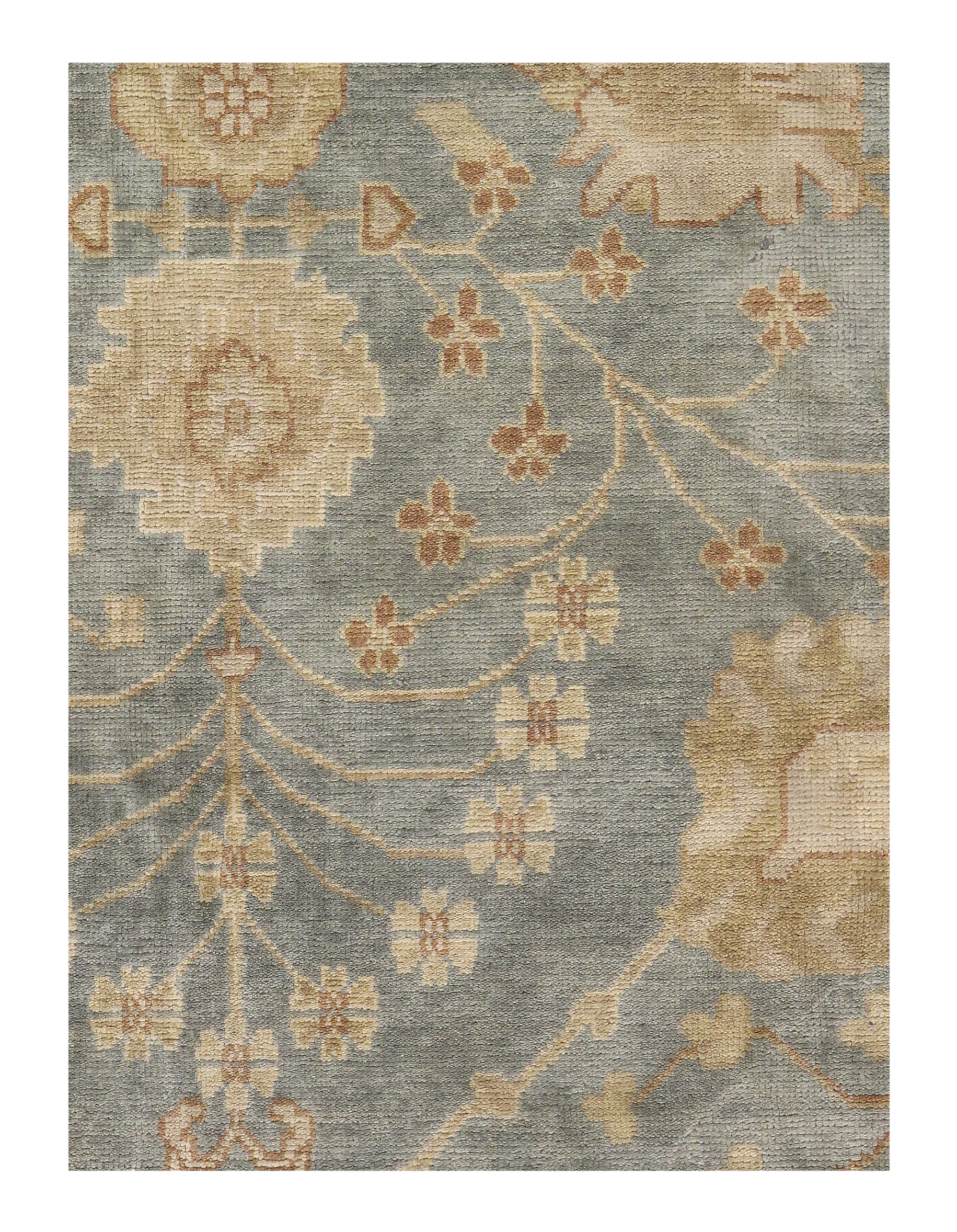 Oushak features the subtle elegance of classic Anatolian designs in tradition and styling of the finest Turkish carpets. These rugs provide a union of pattern, color, and the finest yarns and finishing. Each rug is finished with an antique wash that gives these rugs an authentic Oushak look. These rugs are hand knotted using the finest 100% New Zealand wool. The beauty of these rugs will enhance any interior decor.