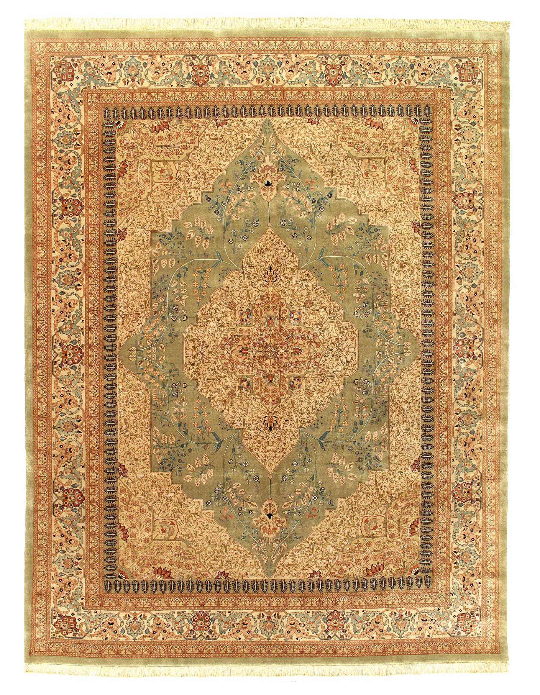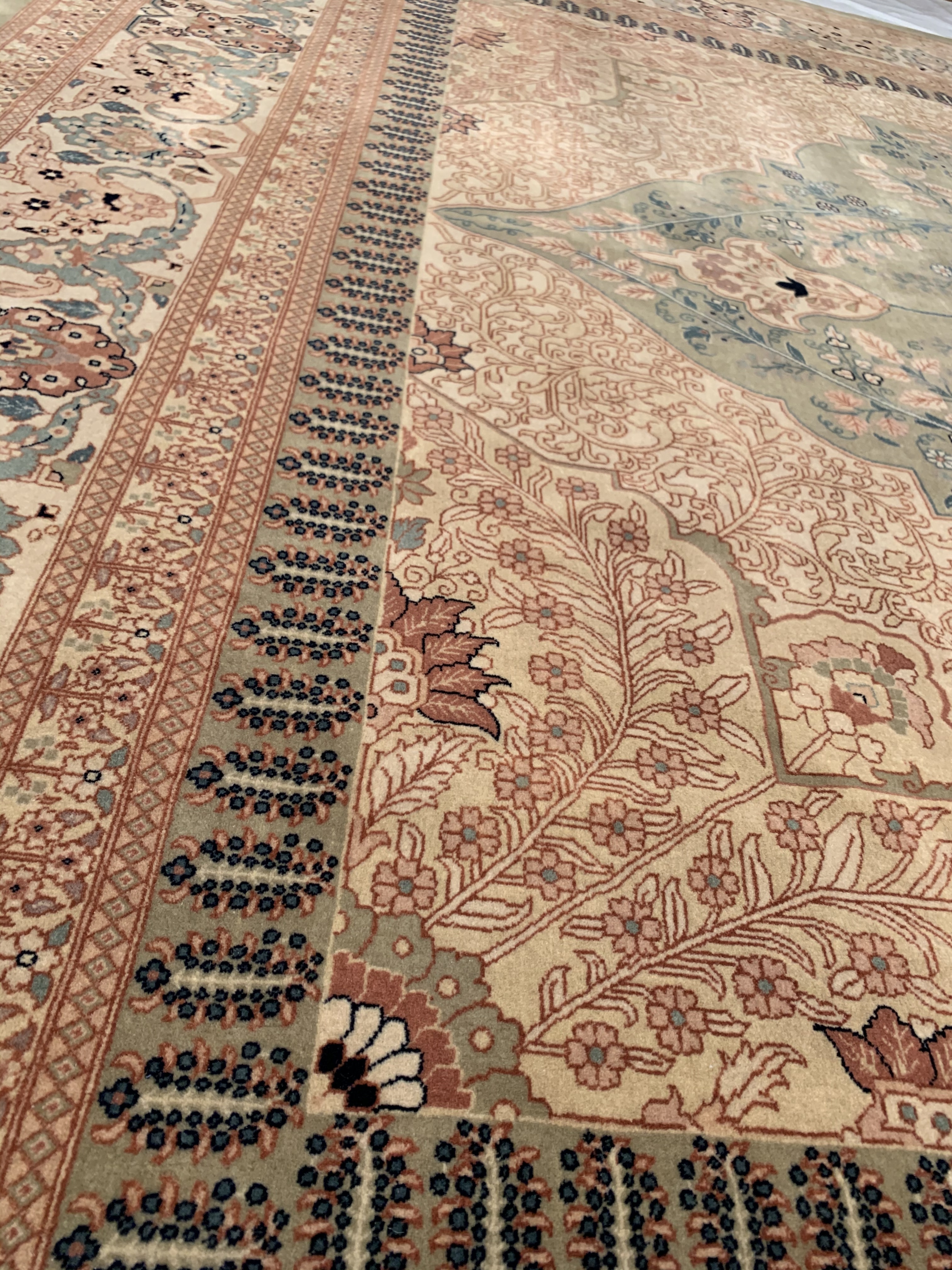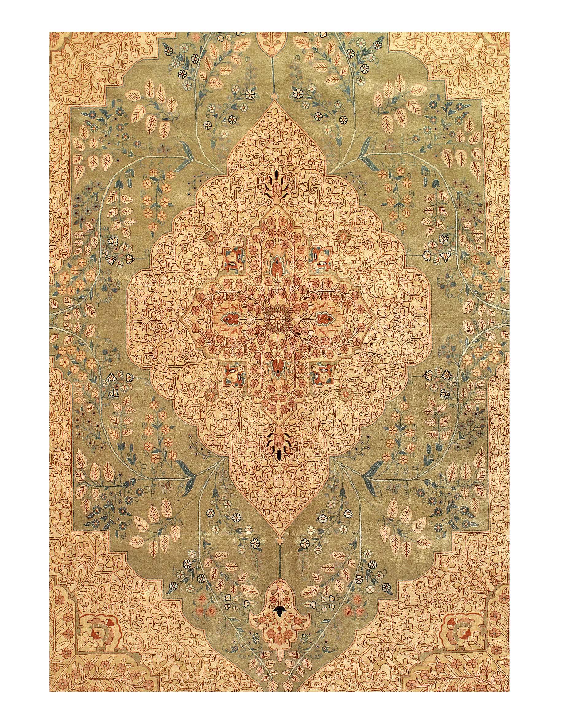 Tabriz collection is hand knotted in 100% New Zealand wool and is sure to bring elegance to any room setting. It has a pile making it soft under foot. The Tabriz design tradition dates back centuries and is a fine example of a culture capturing its history in the woven rug.