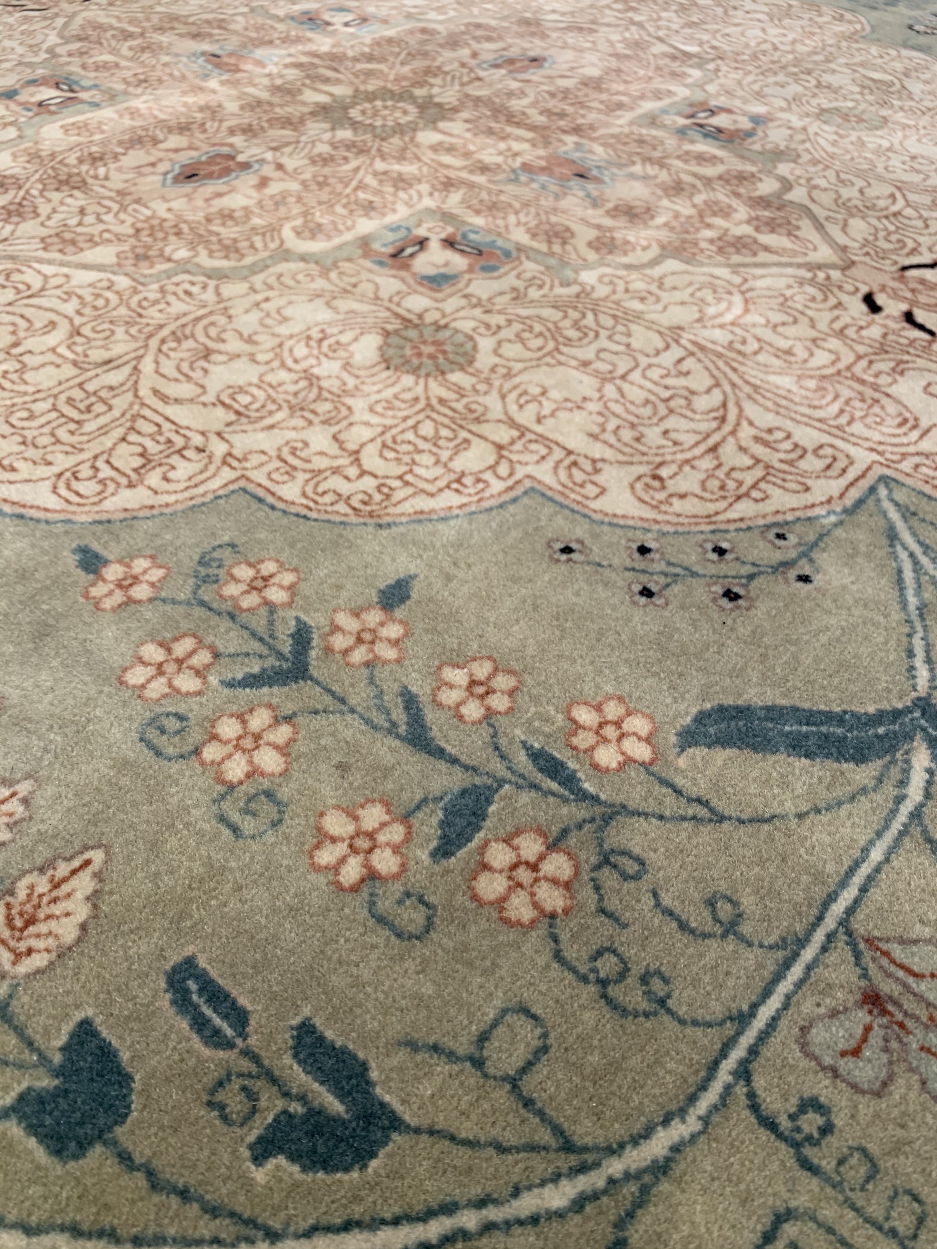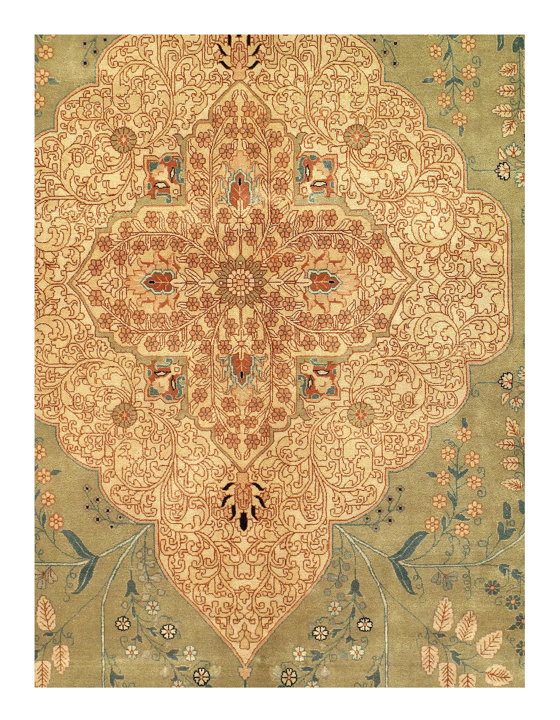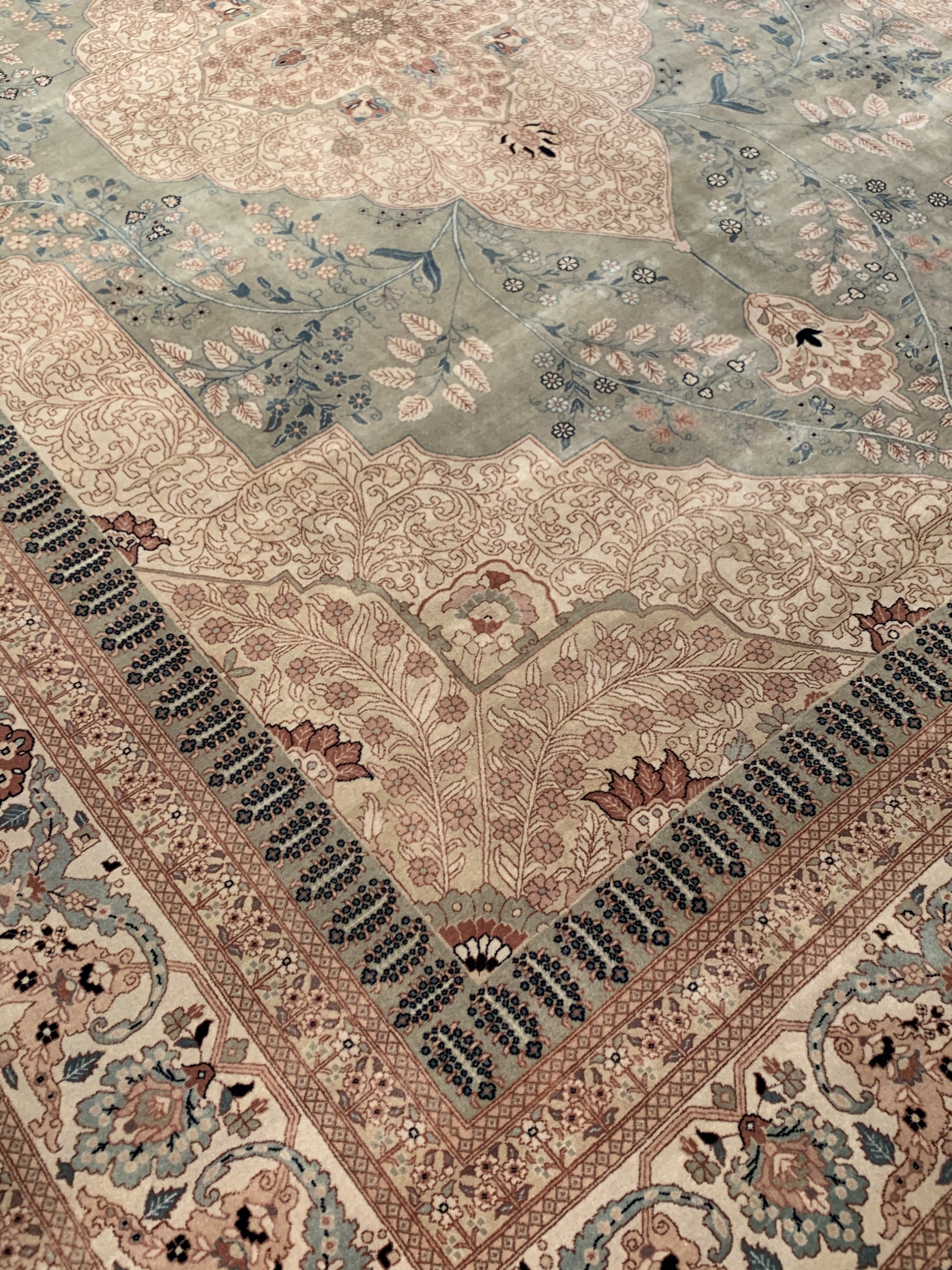 Tabriz collection is hand knotted in 100% New Zealand wool and is sure to bring elegance to any room setting. It has a pile making it soft under foot. The Tabriz design tradition dates back centuries and is a fine example of a culture capturing its history in the woven rug.