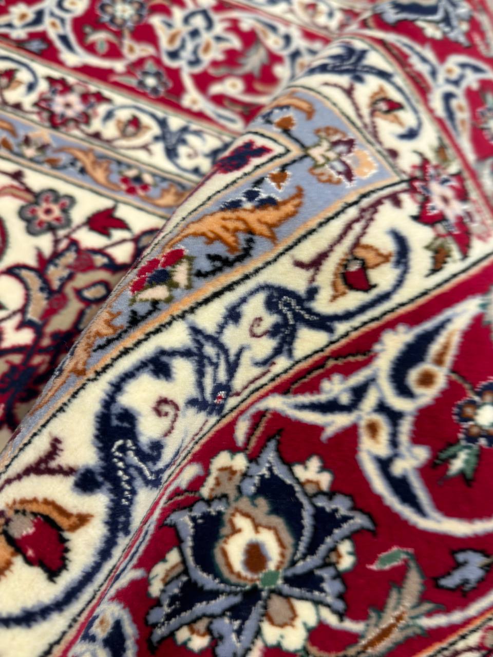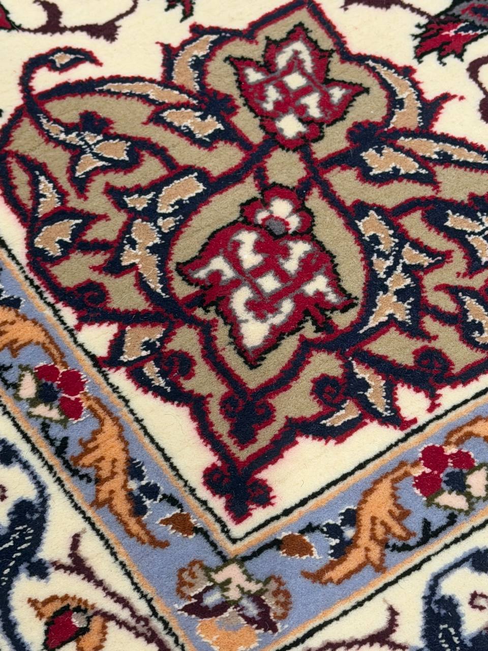 The Isfahan rugs are made with exceptionally good quality of wool & silk. They use traditional motifs inspired by architectural tiles that once decorated the historical buildings from which these rugs originated in. When it comes to high class designs the composition, patterns, and materials of Isfahan meets those expectations. The motifs usually consist of medallions with palmetts and also figural motifs. Isfahan rugs have an extremely high knot density and are woven with silk and golden threads, which give them their luxurious look.