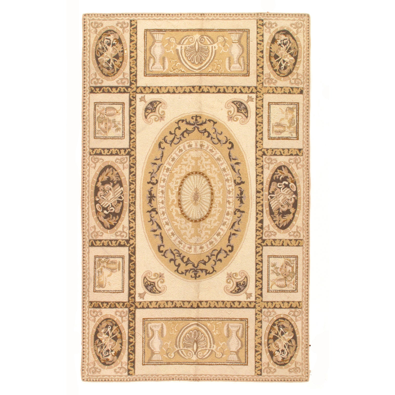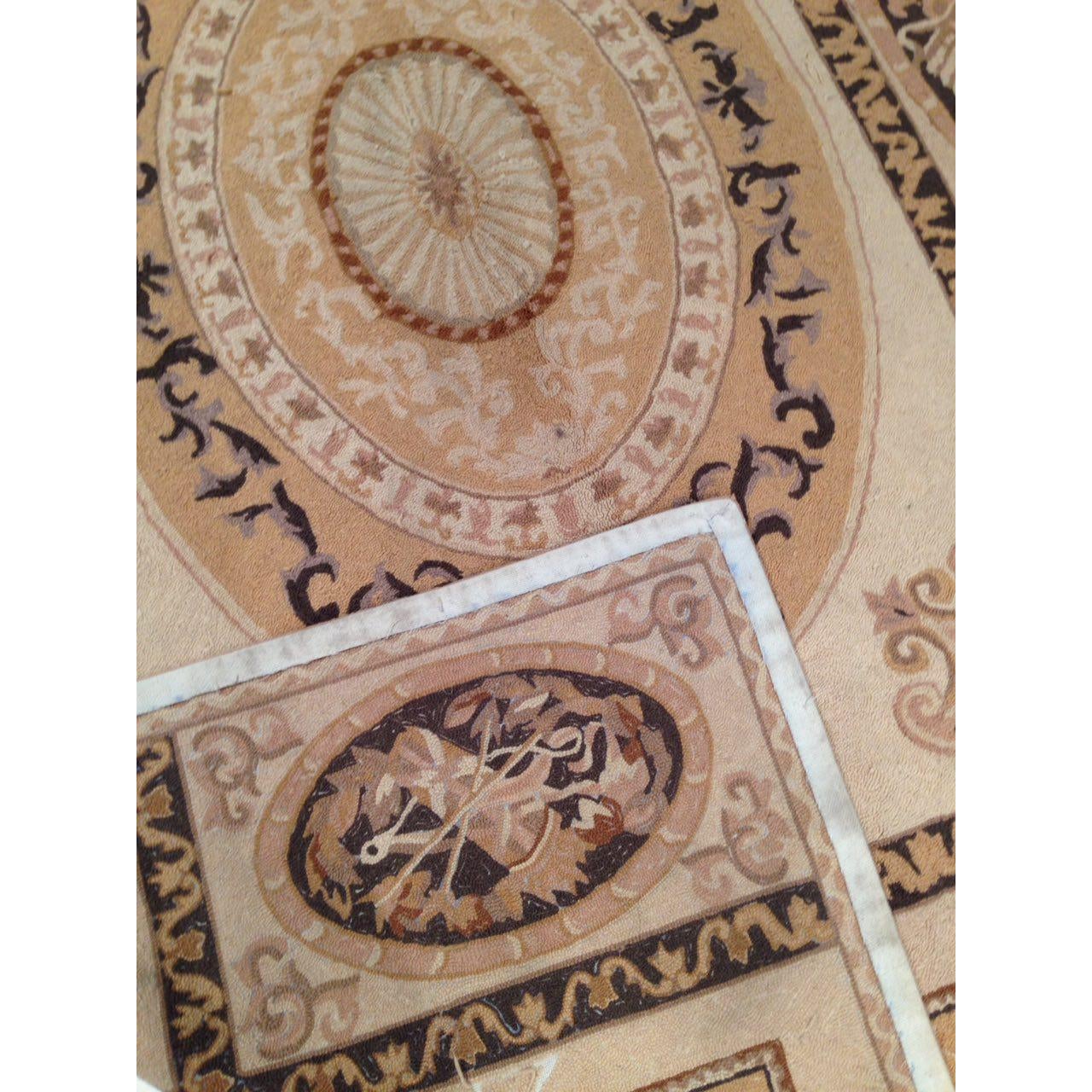 Modern Aubusson Rug. Lamb's wool on cotton. From China. Aubusson is a town on the Creuse River in central France. It has been famed for its carpets as well as Tapestries since the 15th century.