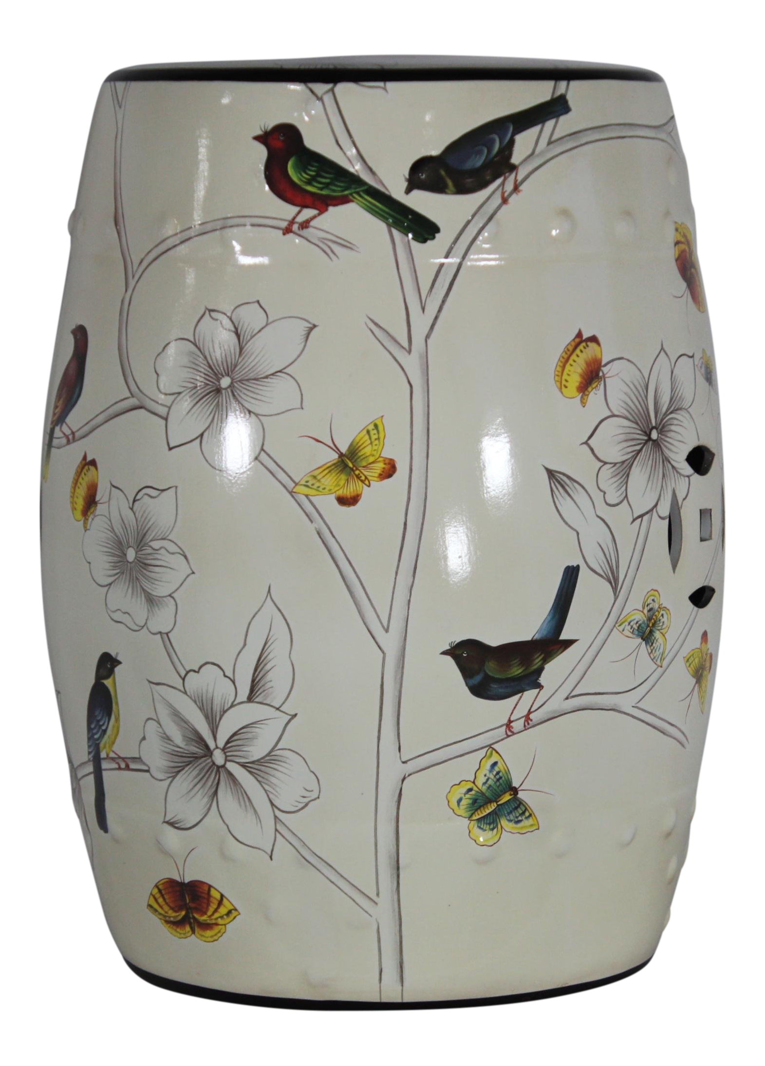 This listing is for a classic blue and white garden stool. This piece features a floral motif.