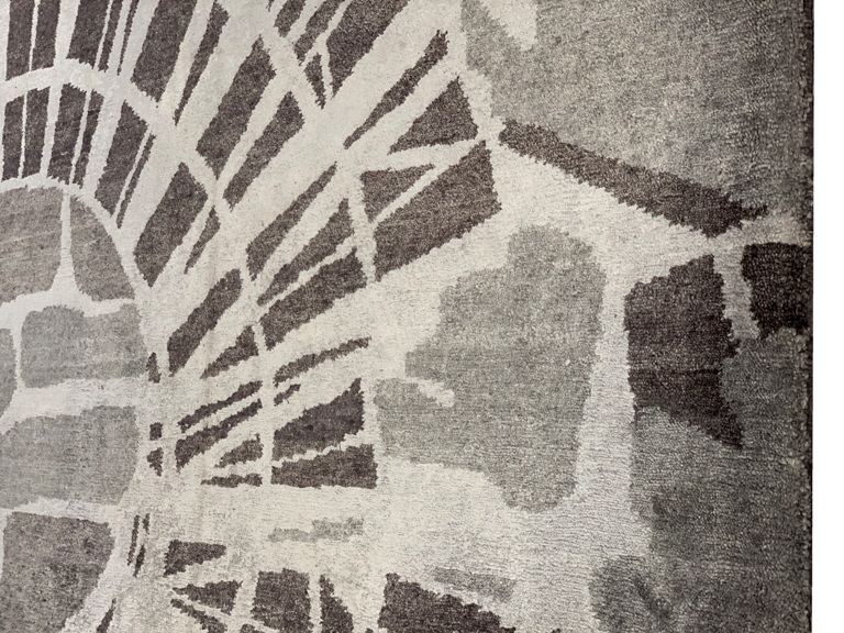 This modern rug features a border tan pattern. These rugs bring modern sophistication to your home featuring 100% fine pure silk, hand-knotted into elegant designs, perfect for your elegant decor.