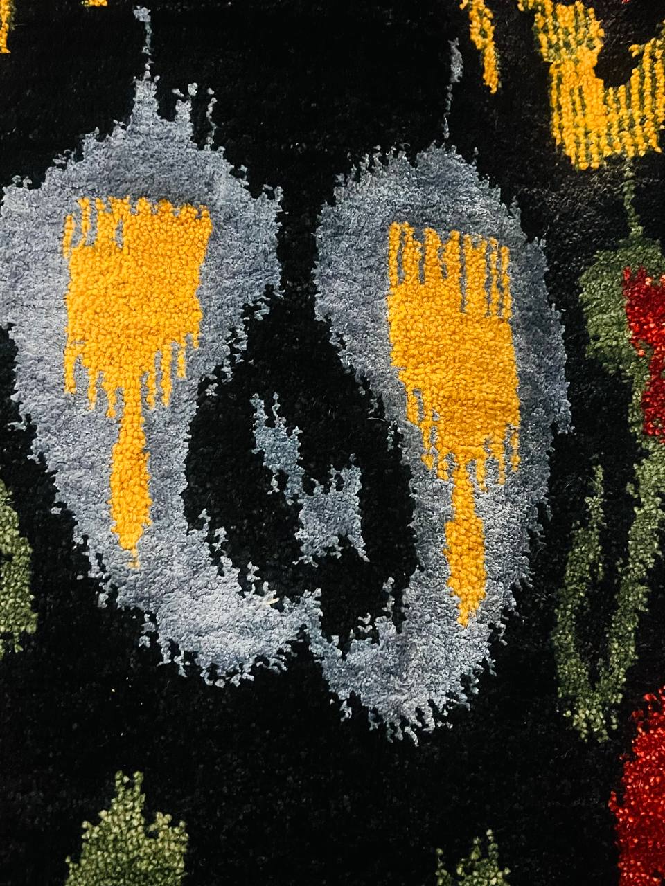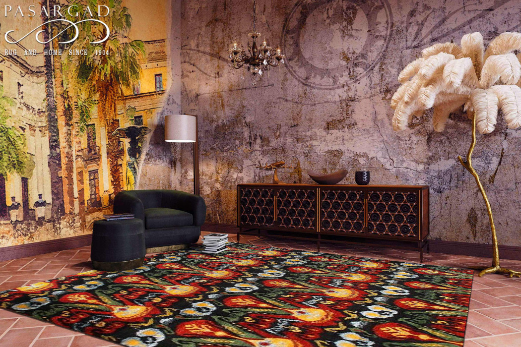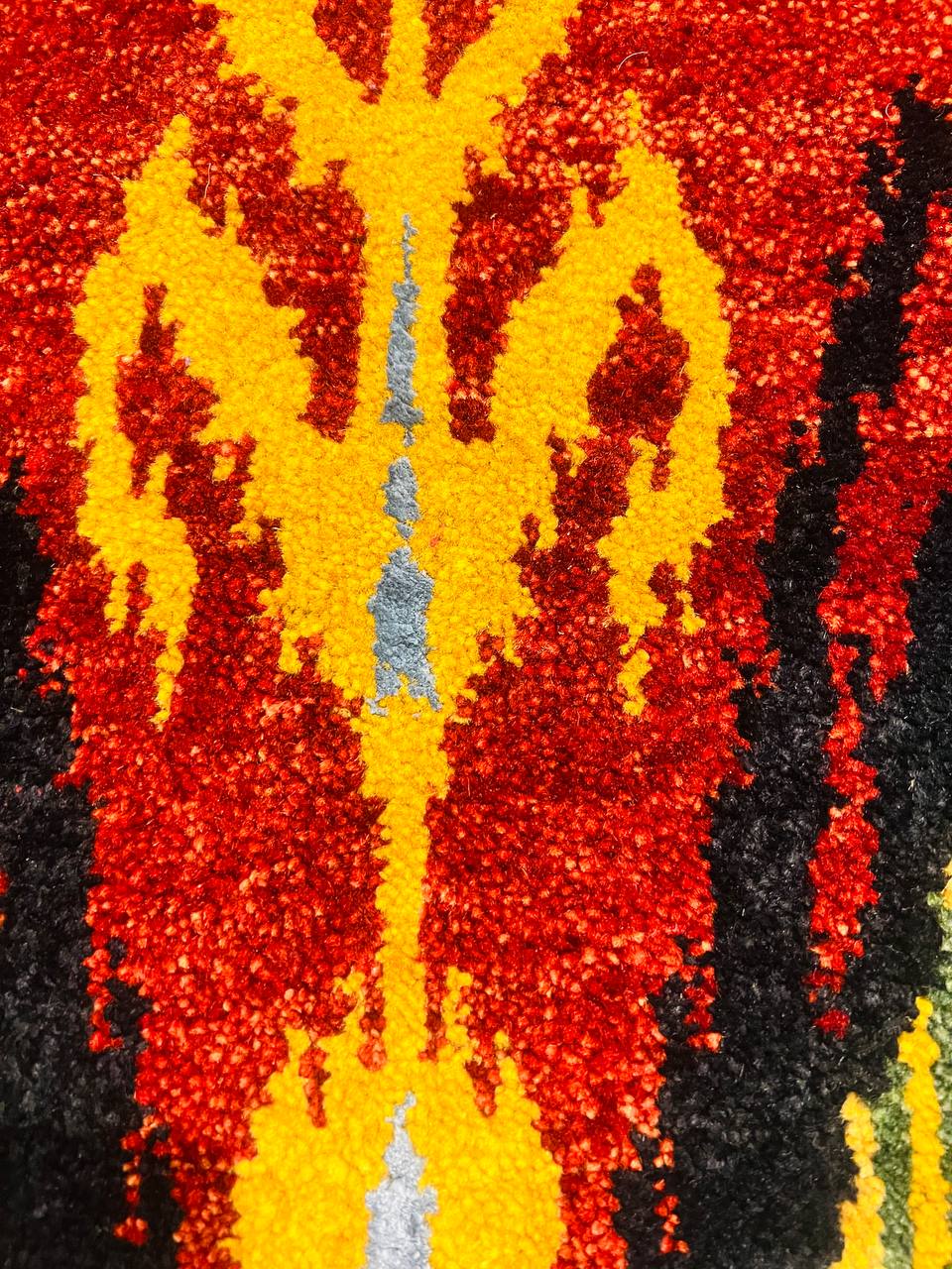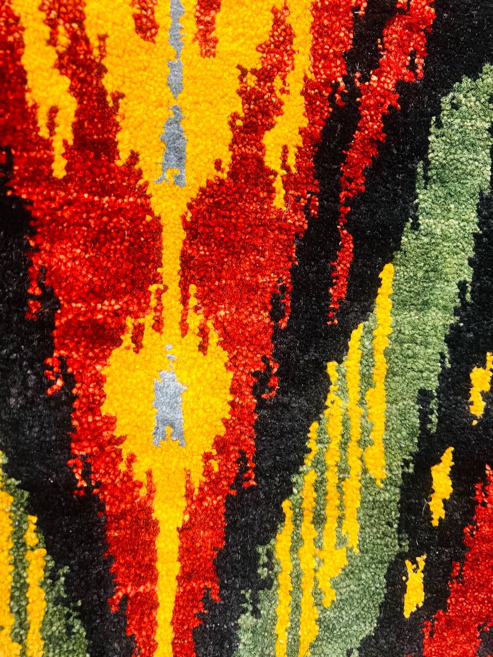 Modern Ikat Design rug. Handmade Hand-knotted Very Practical for High Traffic Hand-Spun Lamb's Wool and Silk on a Cotton Foundation Vegetable Dyed This rug is handmade from 100-percent premium, hand-spun wool, and employ ancient pot-dying techniques to give them their authentic look.