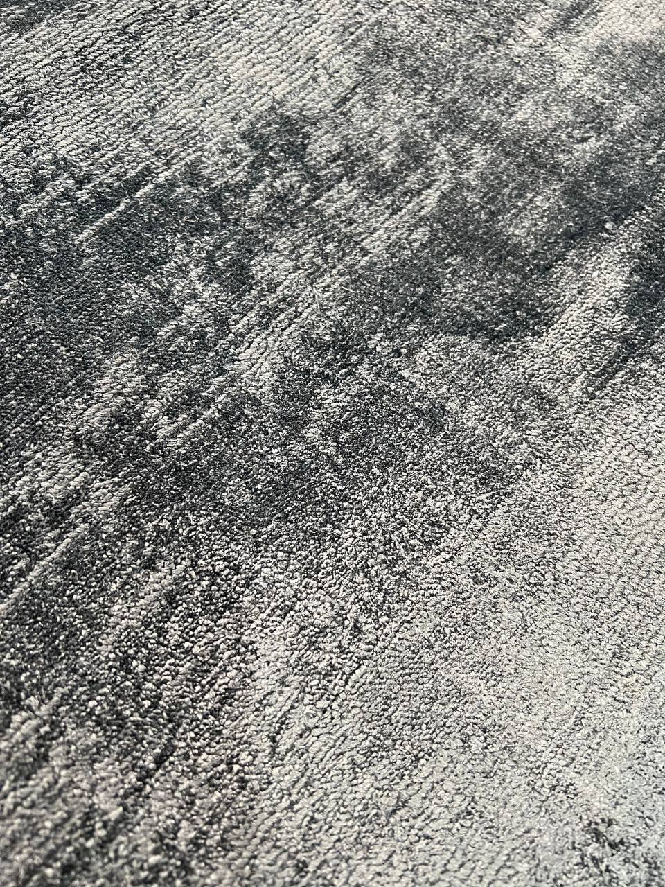 Enjoy the rich and luxurious feeling of bamboo silk underfoot with this area rug. The hand-Tufted construction withstands high traffic use, while the muted blue pattern subtly projects a traditional sentiment.