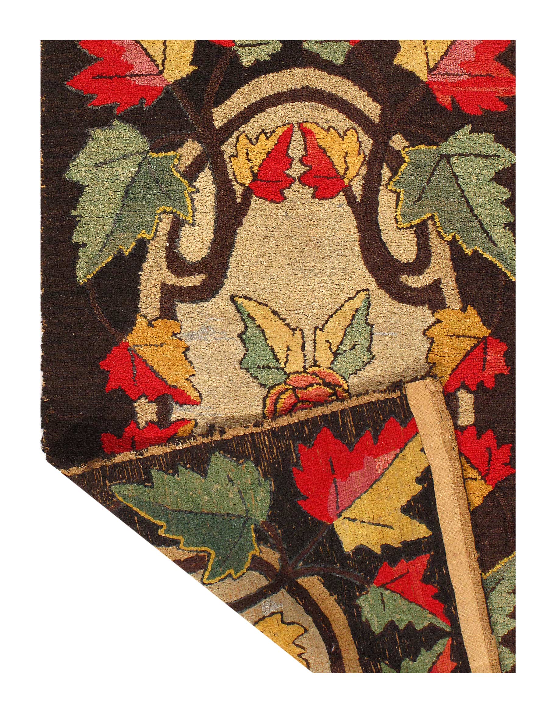 Woven design of stylized leaves and tendrils, this rare American hooked Rug has the added bonus of being very narrow, making it ideal for contemporary spaces.