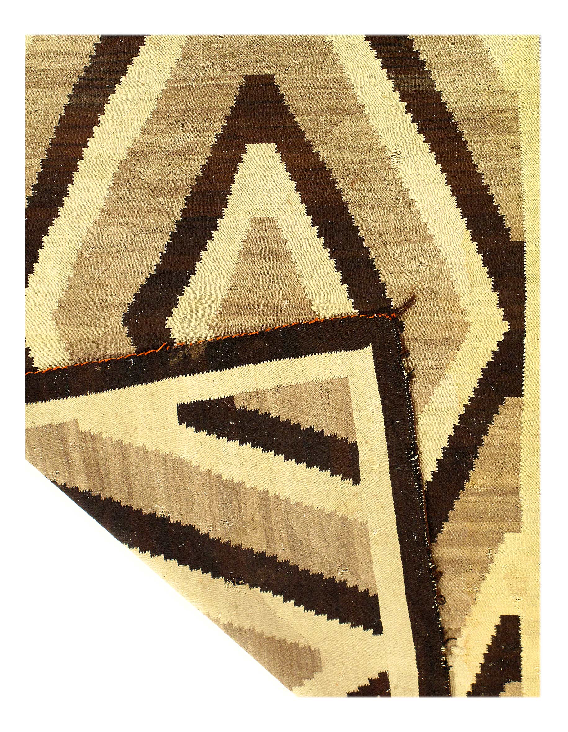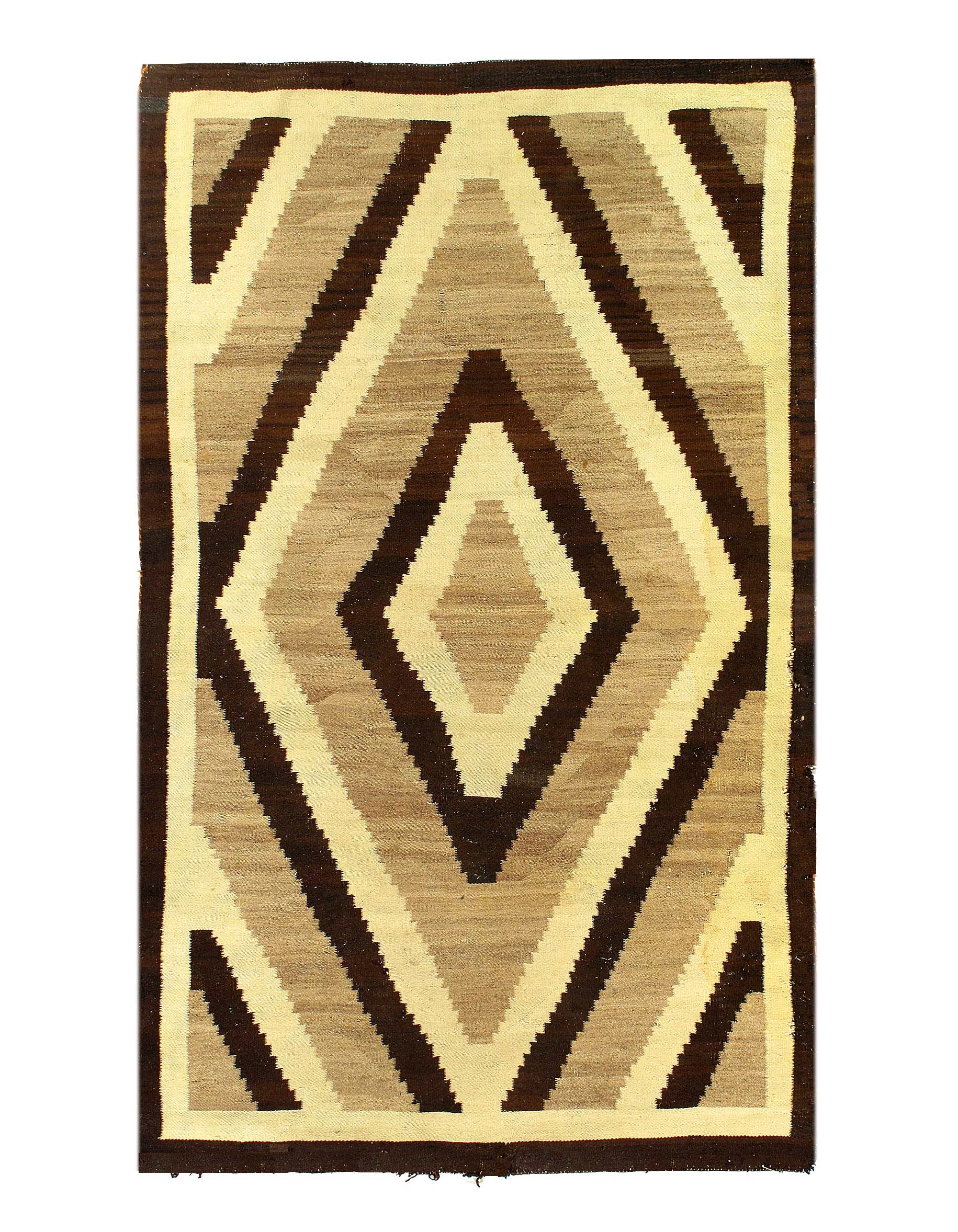 Antique textiles have been a documented part of Native American culture for over two thousand years. For the Navajo, weaving was a gift of Spider Woman who taught the craft to the first Diné, or people. The loom was brought to The People by Spider Boy who taught them its meaning; the frame composed of the Sky and the Earth, the lashing of lightning, the warp of rain; the whole representing the weaver and her relationship between the Sky and the Earth. The first weaving of The People were made for personal use and as valuable trade items. Antique Navajo rug were renowned throughout North America for their beauty and utility, being soft and warm.