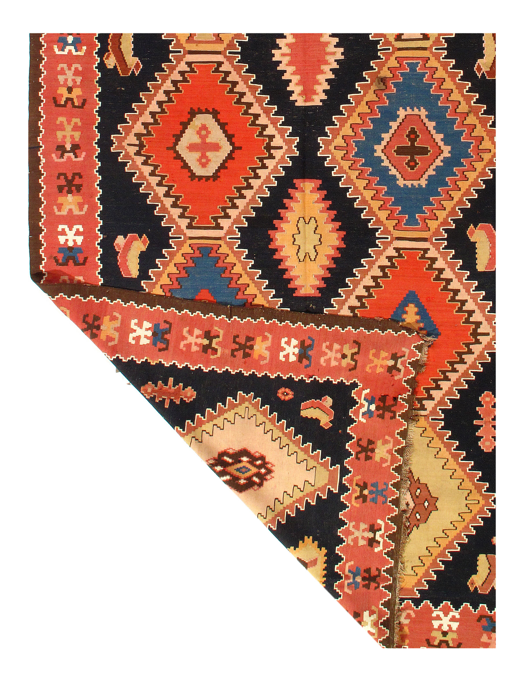 Enjoy the uniqueness of this authentic one-of-a-kind geometric 5'11'' X 11'8'' Flat weave Russian oriental area rug hand-woven by skillful weavers in Russia. Made of pure wool this rug is in excellent condition. The primary color is Red Black. The Hand-Woven area rugs (also called Flatwoven rugs) are produced in a similar manner, as the hand-knotted rug but using a different kind of loom. Hand-woven carpets are known for their amazing beauty and lastingness but require a lot of time and skill. Here the weaver uses the loom to weave the rug fibers into the warp. These flatweave rugs are authentic handmade. The weaving technique allows the use of many colors and weave-variations, producing almost unlimited variety of patterns and colors to Rust / Red from. Due to the precise construction techniques, a hand woven rug will provide you with years of consolation and satisfaction.