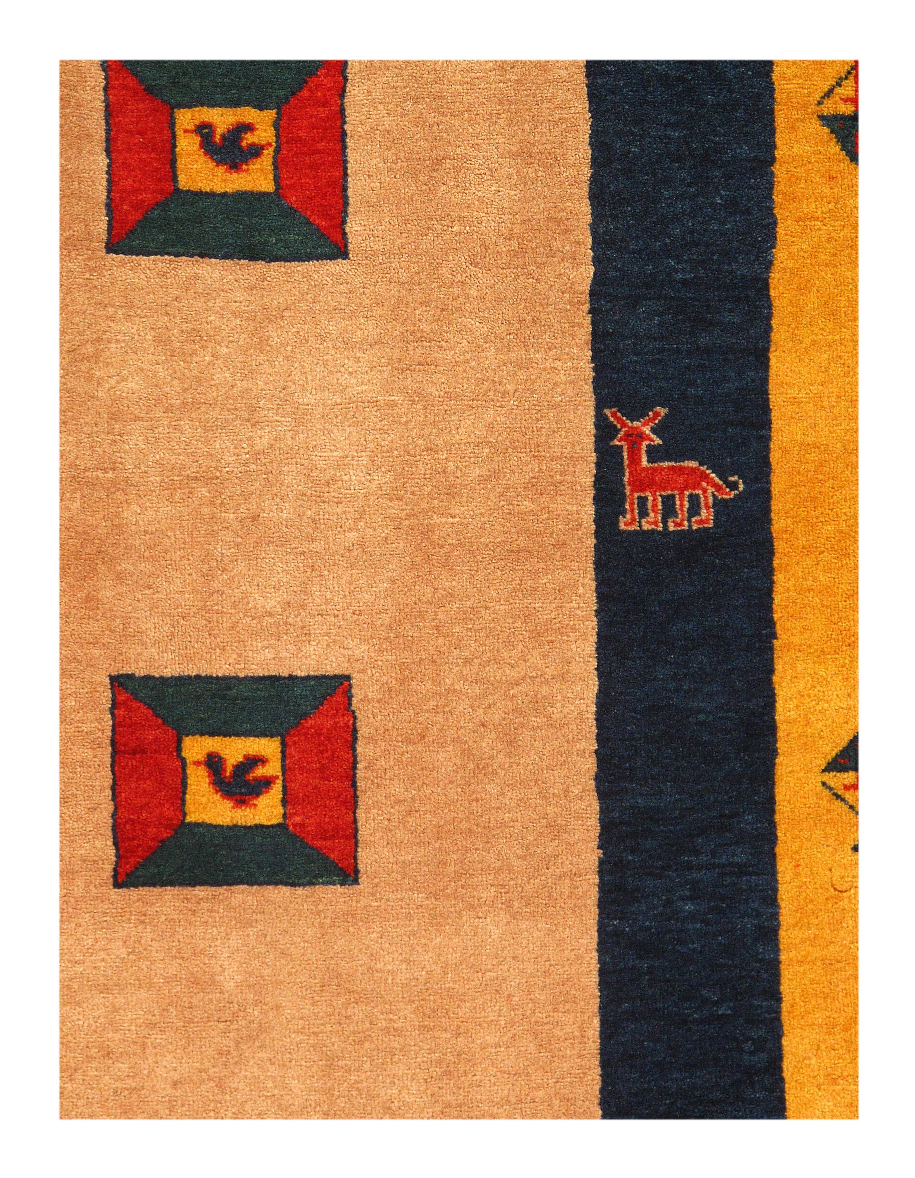 Gabbeh rugs are made by the nomadic Qashqai tribes of southern Iran. They are rough cut and long piled rugs of rich color and best quality wool. They are sometimes referred to by the heritage of the specific tribe by which they are woven, such as “a Lori rug,” or by the name of the city in which they are most often traded, such as “a Shiraz rug” or “a Shiraz Gabbeh.”