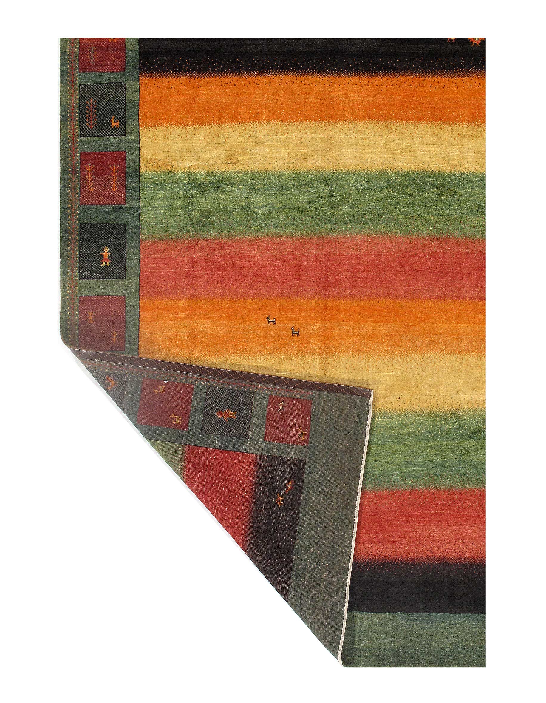 Gabbeh rugs are made by the nomadic Qashqai tribes of southern Iran. They are rough cut and long piled rugs of rich color and best quality wool. They are sometimes referred to by the heritage of the specific tribe by which they are woven, such as “a Lori rug,” or by the name of the city in which they are most often traded, such as “a Shiraz rug” or “a Shiraz Gabbeh.”